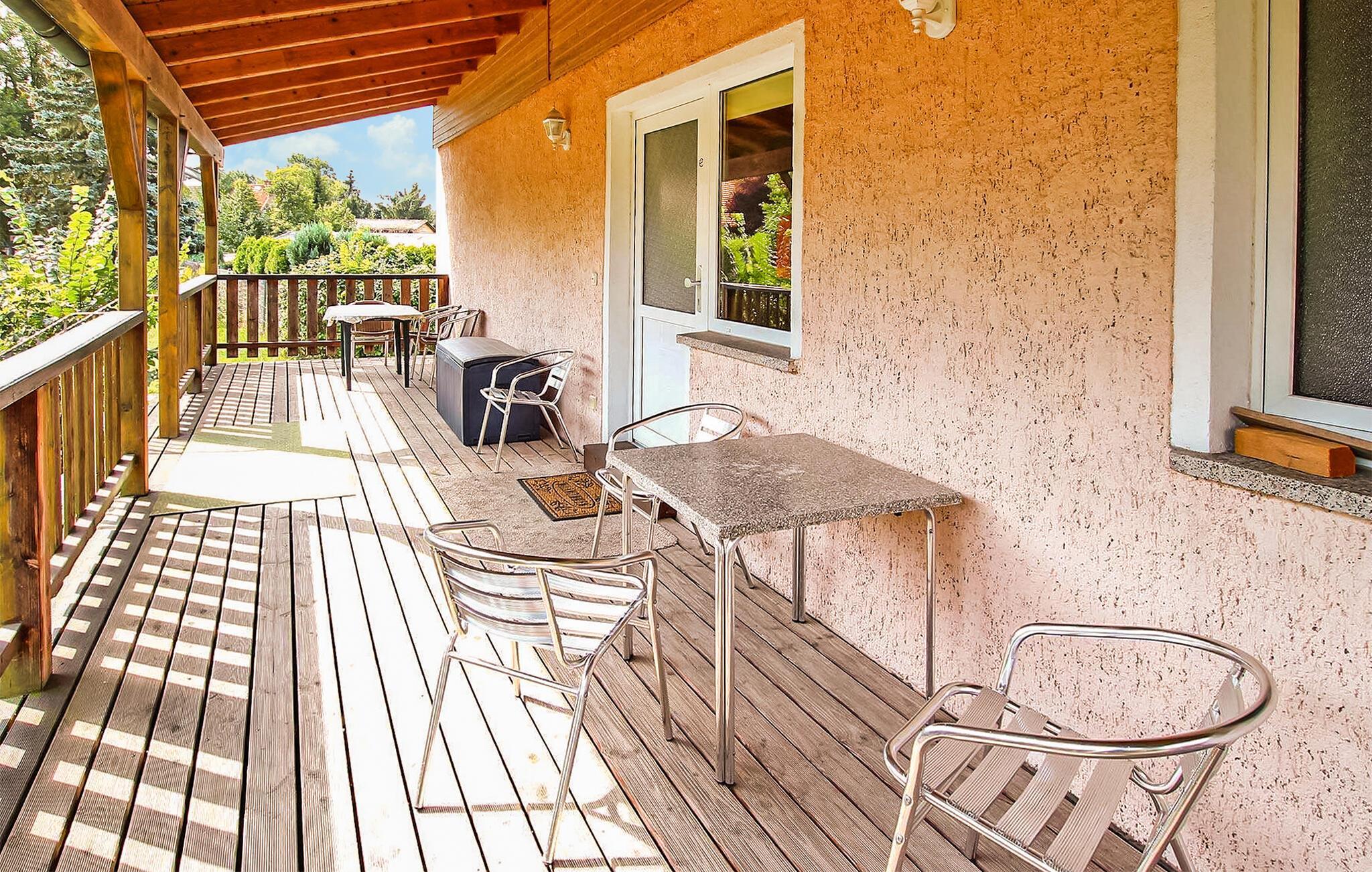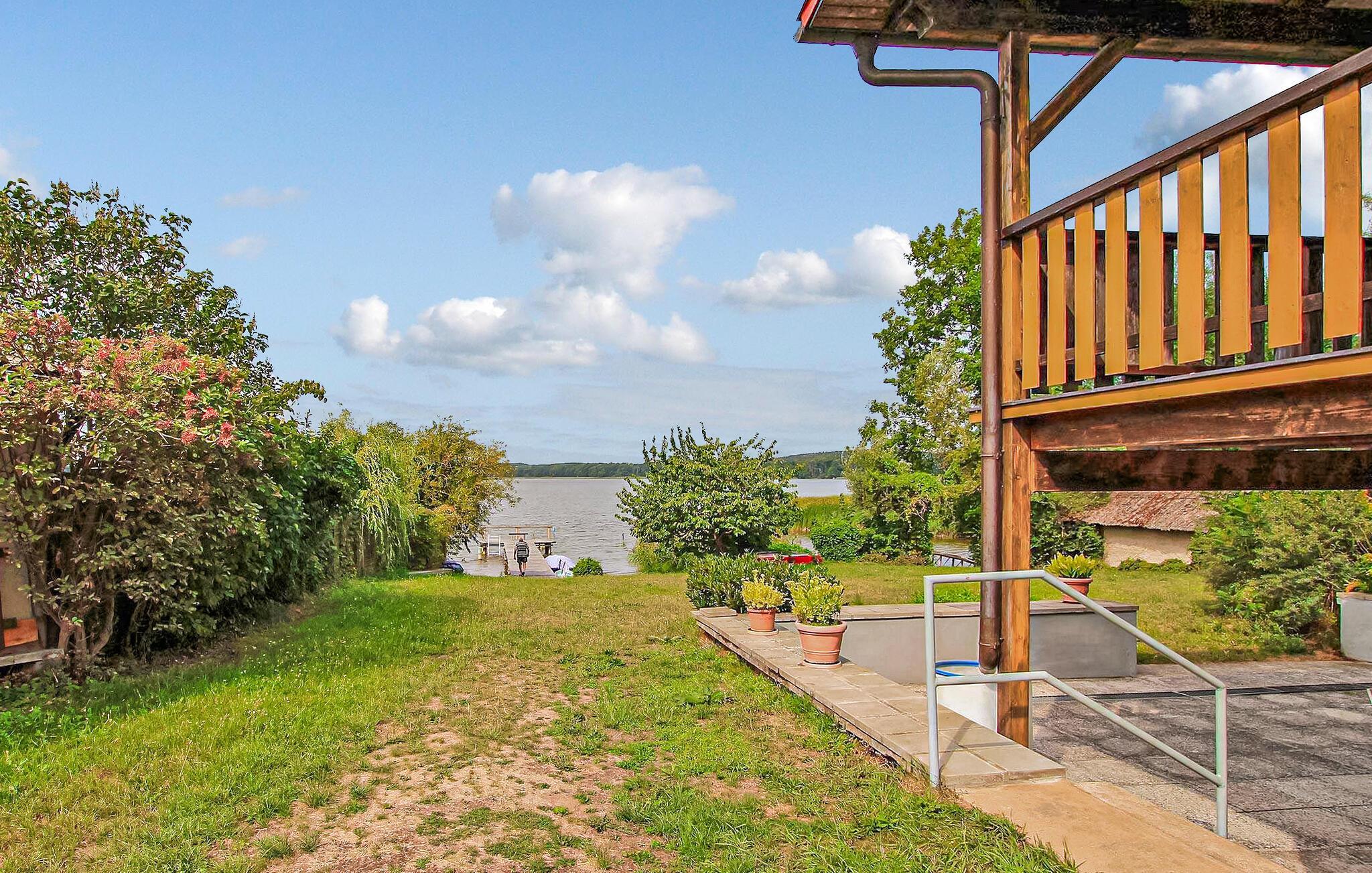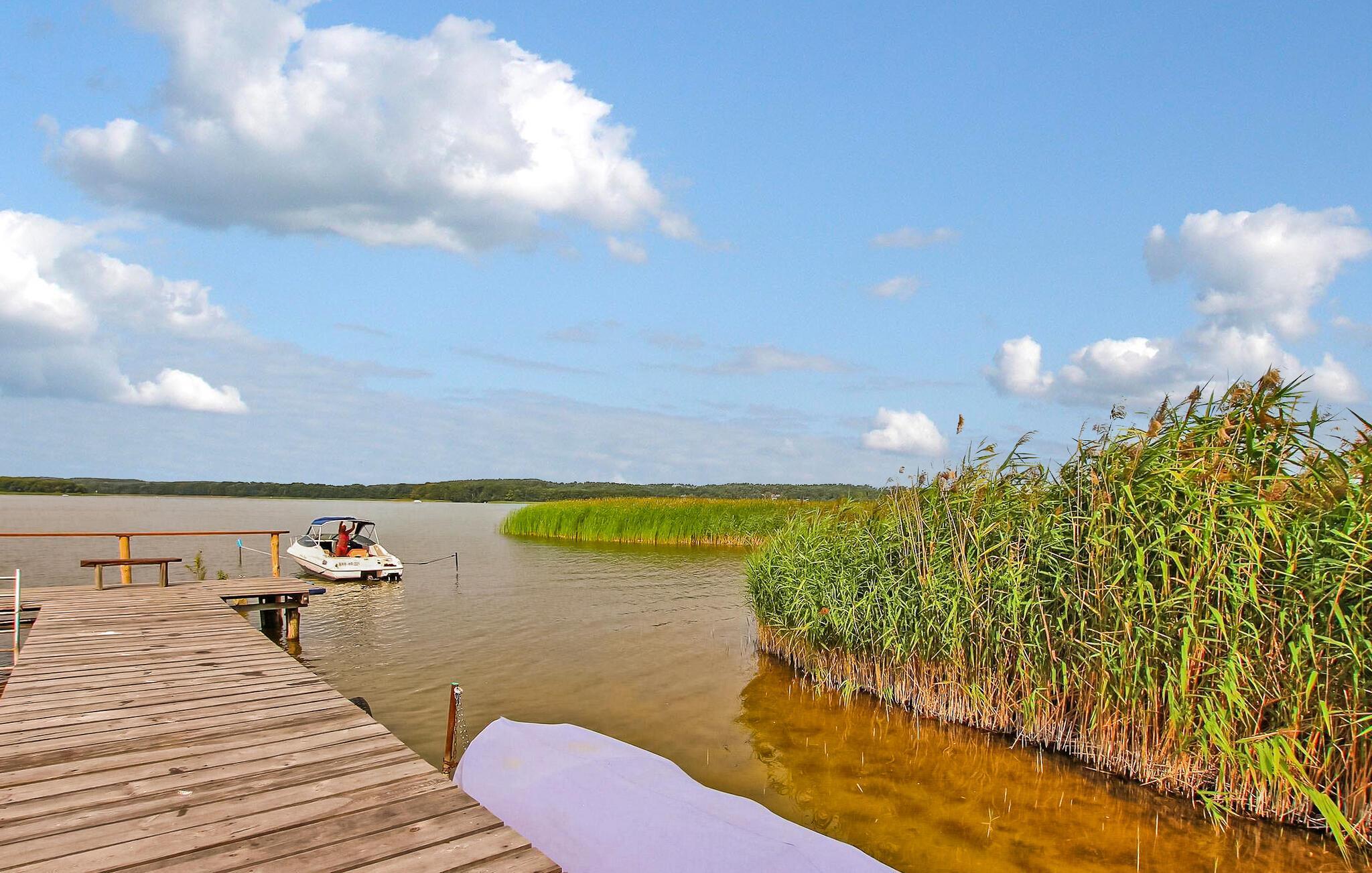 Direkte ved Woblitz-søen, på en cirka 1.000 kvadratmeter stor ejendom ved vandet med egen badebro, er der to ferielejligheder med søudsigt for op til 3 eller 4 personer i et sommerhus. Du kan fiske fra anløbsbroen, du kan medbringe dine egne både, eller du kan leje en eksisterende robåd mod betaling (45 EUR/uge). En stor græsplæne på søen er til rådighed for alle gæster, samt parkeringspladser, elvarme, grill og cykelrum. Der er butikker og restauranter i Wesenberg, cirka 6 km væk. Denne lejlighed på øverste etage er udstyret med en stor stue (polstret opholdsområde, satellit-tv, spisebord) og et åbent, komplet køkken (ovn, køleskab med fryser mulighed, forskellige små køkkenmaskiner), to soveværelser (hver med en dobbeltseng) og badeværelse med brus/toilet og gulvvarme. Der er søudsigt fra hele stuen, et soveværelse og køkkenet, en stor, overdækket terrasse strækker sig over hele fronten, og en anden - også overdækket - er på modsatte side af lejligheden (mod øst). Slutrengøring er inkluderet i den samlede pris. Medbring venligst eget sengelinned og håndklæder. Betales på stedet: spa skat, el og vand efter forbrug, båd (hvis det ønskes) 45 EUR/uge Kæledyr er ikke tilladt i denne ejendom. Nedenfor - en bydel af det anerkendte feriested Wesenberg - er stille og roligt beliggende på en lille halvø direkte ved Woblitz-søen, en del af den populære "Upper Havel Waterway", midt i Mecklenburg Small Lake District naturoplevelsesregion. Wesenberg er præget af utallige søer, som er forbundet af små kanaler og er et populært feriemål for alle vandsportsentusiaster. Som den sydøstlige port til Müritz Nationalpark er regionen også et ideelt udgangspunkt for omfattende ture på cykel eller til fods. Byens vartegn er slottet bygget i 1200-tallet med den såkaldte Fangelturm, som i dag huser turistinformationen. Indkøbsmuligheder, restauranter, udendørs swimmingpool, bådture, kano-, båd- og cykeludlejningsstationer findes direkte i Wesenberg eller den omkring 11 km væk, boligbyen Neustrelitz.
