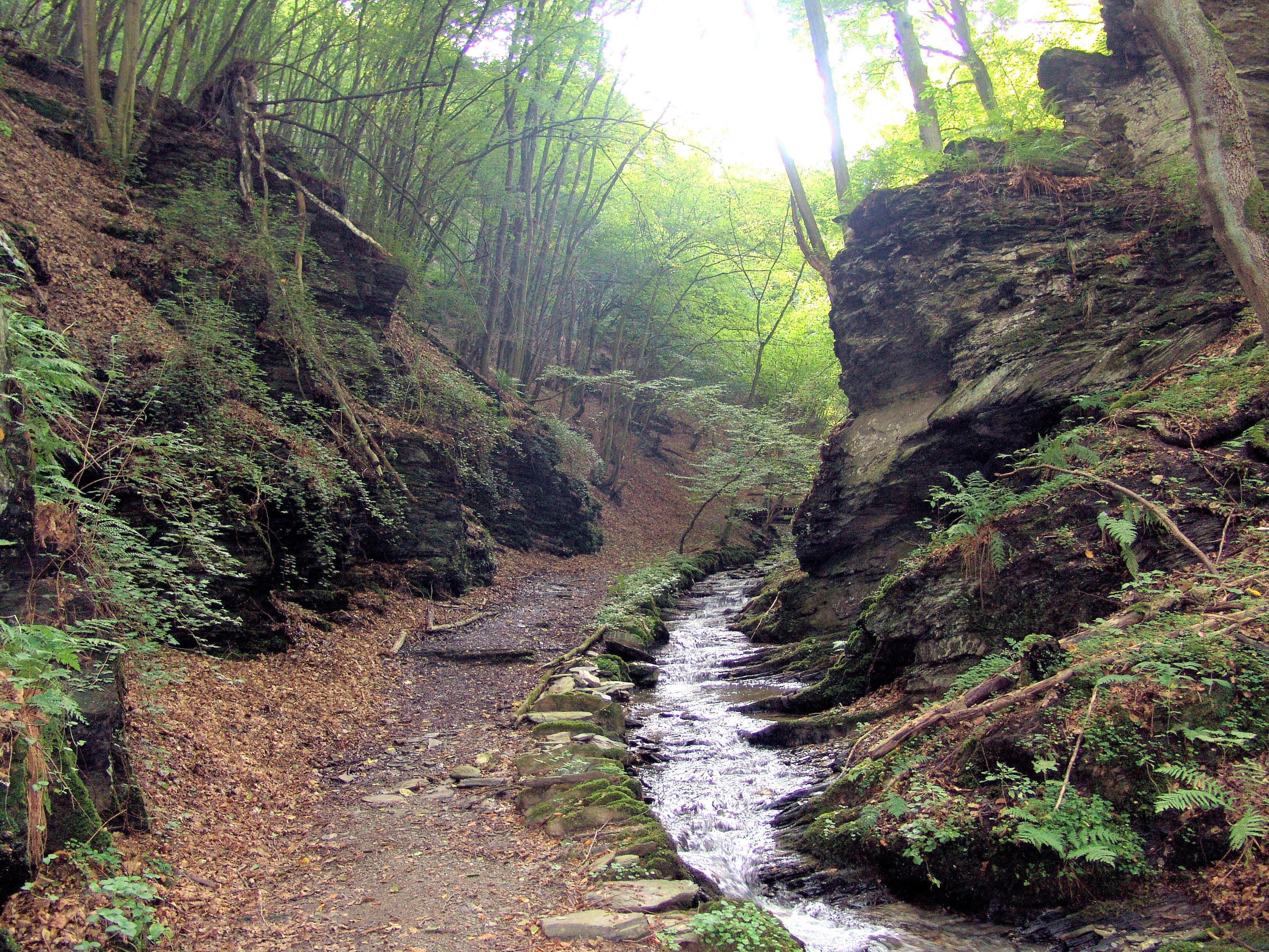 Erleben Sie einen Traumpfad durch den Canyon des Hunsrücks mit mächtigen Felswänden, sprudelndem Wildwasser und erdigen Wanderpfaden und zahlreichen Klettereinlagen. Ein Umweg über den Steffenshof zur Burgruine Waldeck ist ebenfalls sehr lohnenswert. Nach grandiosen Weitblicken und jede Menge Höhenmeter Tal können Sie in der Schmausmühle eine kulinarische Rast einlegen. Der Rückweg von dort ist zwar steiler aber auch viel kürzer nach Heyweiler.