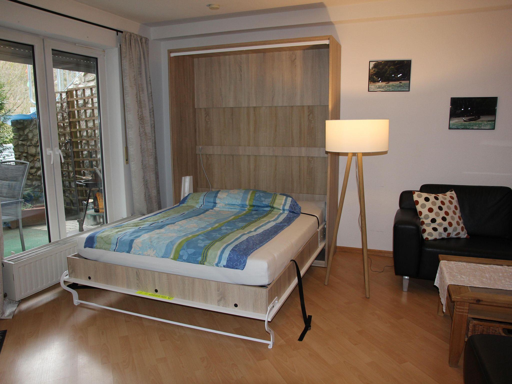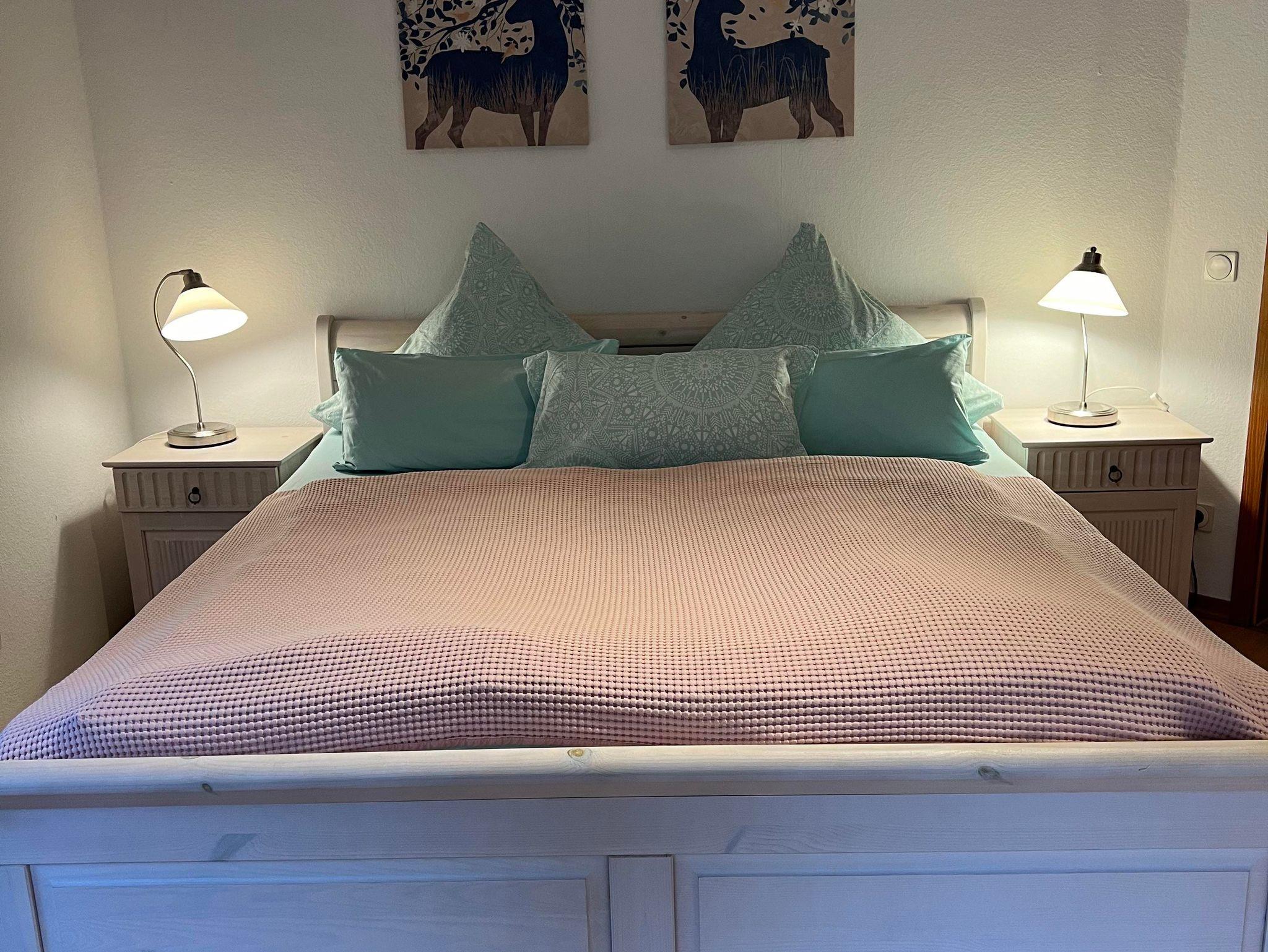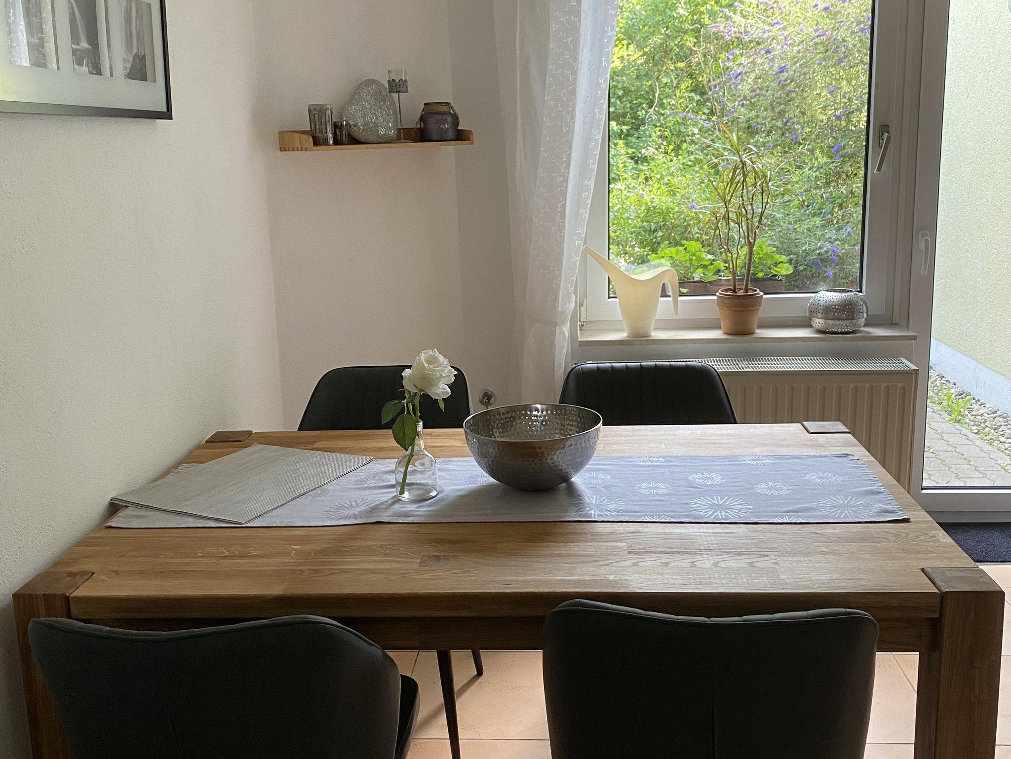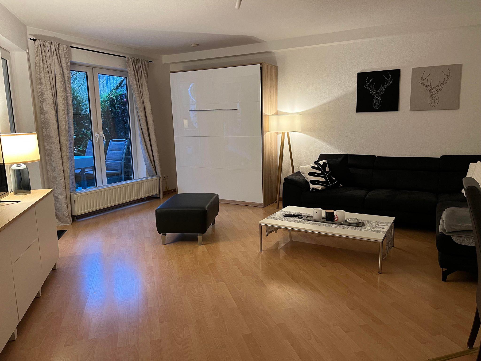 Wir vermieten seit Juli 2010 eine freundliche, schöne und ruhige 70 qm große Ferienwohnung. Die Wohnung hat 2 Zimmer, Küche-Bad und ist modern und liebevoll ausgestattet. In dem großen Wohnzimmer erwartet Sie eine gemütliche Couch, ein offener Kamin, ein LCD Fernseher und ein Glasschreibtisch, sowie eine Schrankbett mit den Maßen 1,60 x 2,00m. Unser Schlafzimmer, das schönste Zimmer der Wohnung, ist mit einem Doppelbett, einem bequemen Beistellbett und einem geräumigen Kleiderschrank ausgestattet. Die Küche ist voll eingerichtet, Kaffeemaschine, Kühlschrank, Spülmaschine, SodaStream, Backofen, Toaster, Wasserkocher sowie ein Eierkocher stehen ihnen zur Verfügung. In der Küche finden Sie noch eine gemütliche Essecke. Das Badezimmer ist mit Waschbecken, Dusche und WC ausgestattet. Ebenso finden sie einen Fön, Waschmaschine und einen Wäscheständer. Weiter Highlights sind die 2 Terrassen, eine direkt vor der Küche – für ein gemütliches Frühstück im Freien und eine Überdachte Terrasse vor dem Wohnzimmer. Hier können Sie Ihre Urlaubstage ausklingen lassen, die Ruhe, den Wald und das Rauschen des Baches genießen.