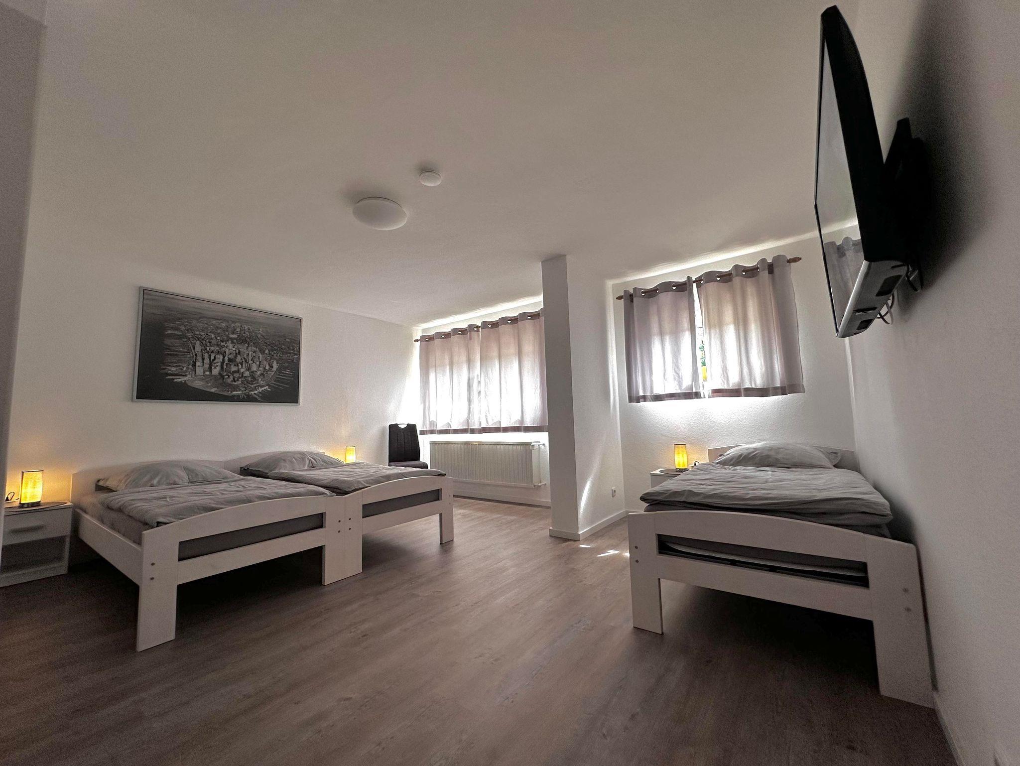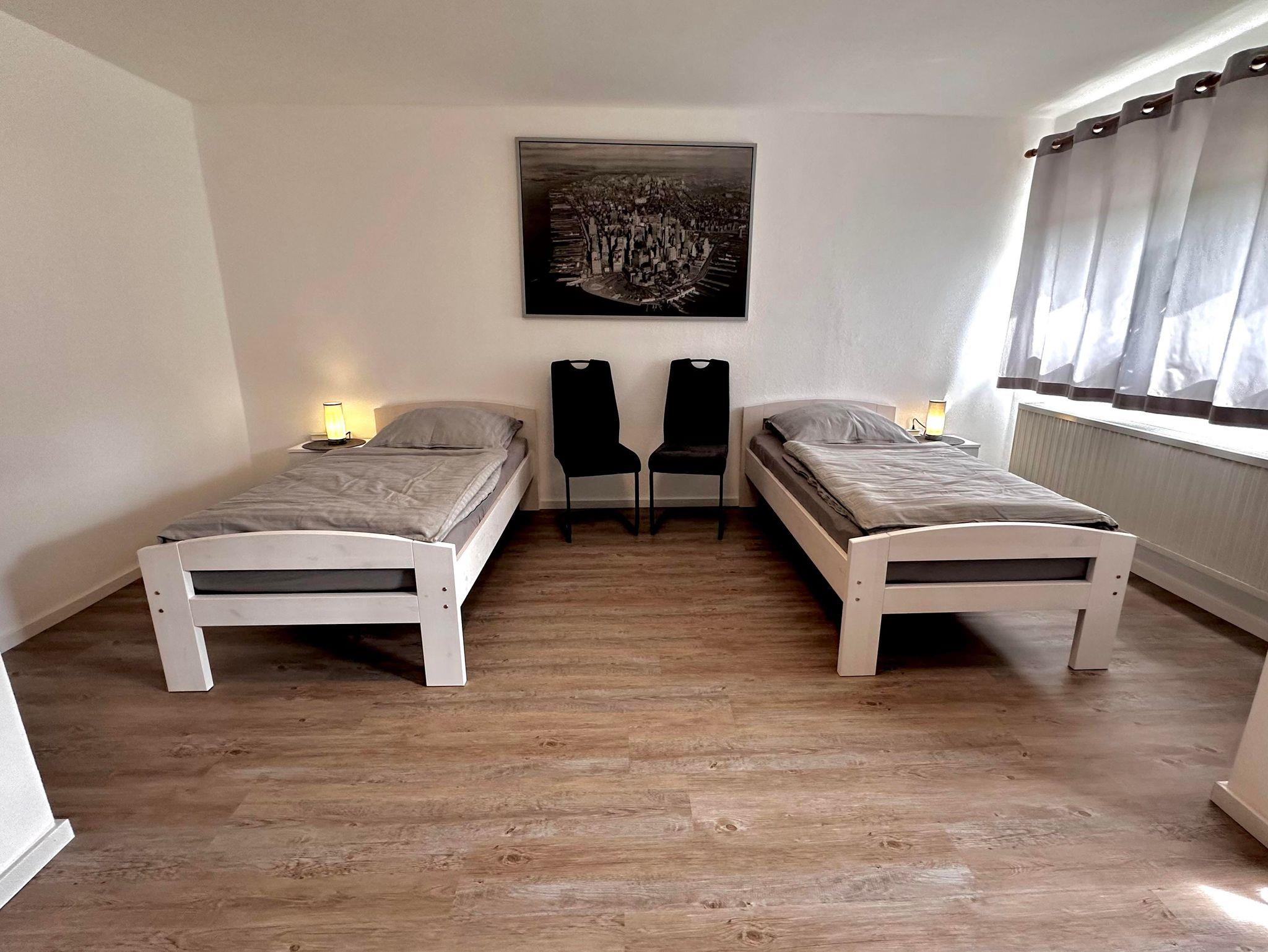 Die Wohnung verfügt über 2 Zimmer, Küche - Bad und ist modern ausgestattet. Es befinden sich zwei gemütliche Wohnschlafräume in dieser Wohnung, jeweils mit zwei Betten, Sitzgelegenheit mit Tisch und Smat-TV. In einem der Schlafräume befindet sich ein Doppelbett das auch auseinandergeschoben werden kann. In der gesamten Wohnung erhalten Sie Highspeed-WLAN.