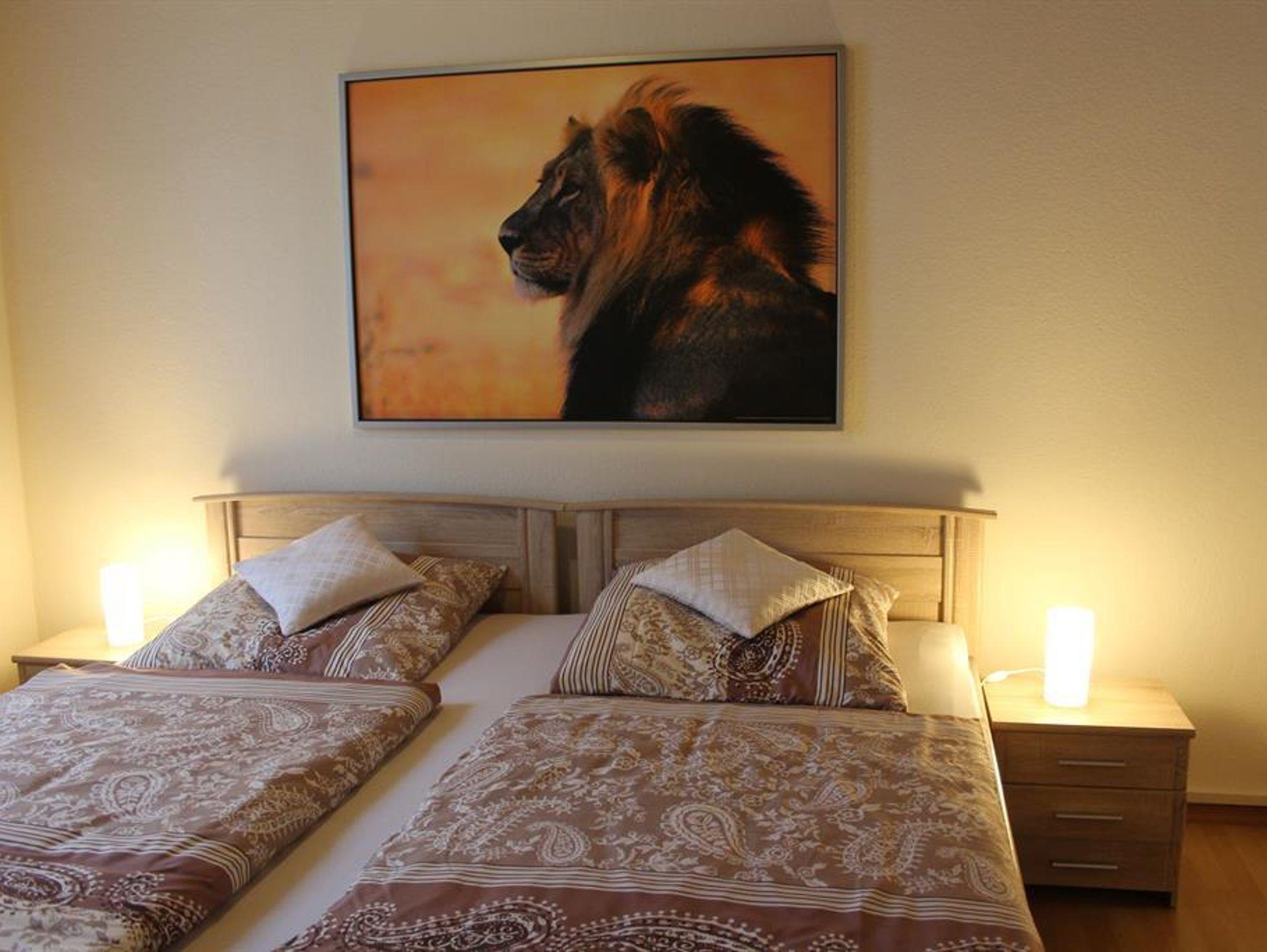 Im Schlafzimmer erwartet die Gäste einen großen Kleiderschrank und zwei Einzelbetten, welche zusammengestellt werden können. Die Bettwäsche wird ohne Aufpreis zur Verfügung gestellt werden.