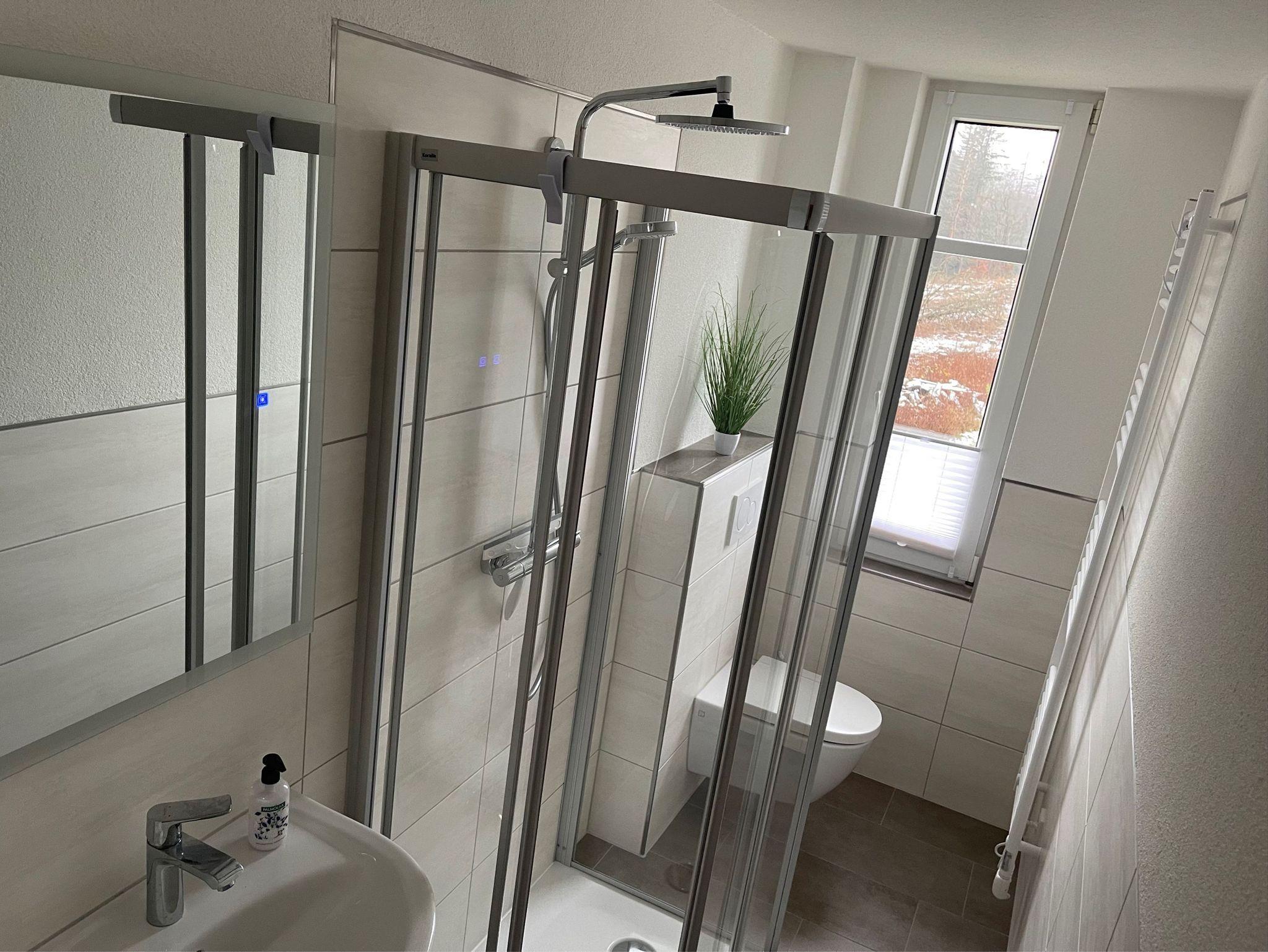 Sie bewohnen im Erdgeschoss eine Ferienwohnung für 2 Personen, eine weitere Ferienwohnung für 2-4 Personen und eine Ferienwohnung für 2-4 Personen im 1. Obergeschoss. Alle drei Wohnungen verfügen über einen Balkon und einen wundervollen, naturnahen Ausblick auf Wald und Wiesen.
