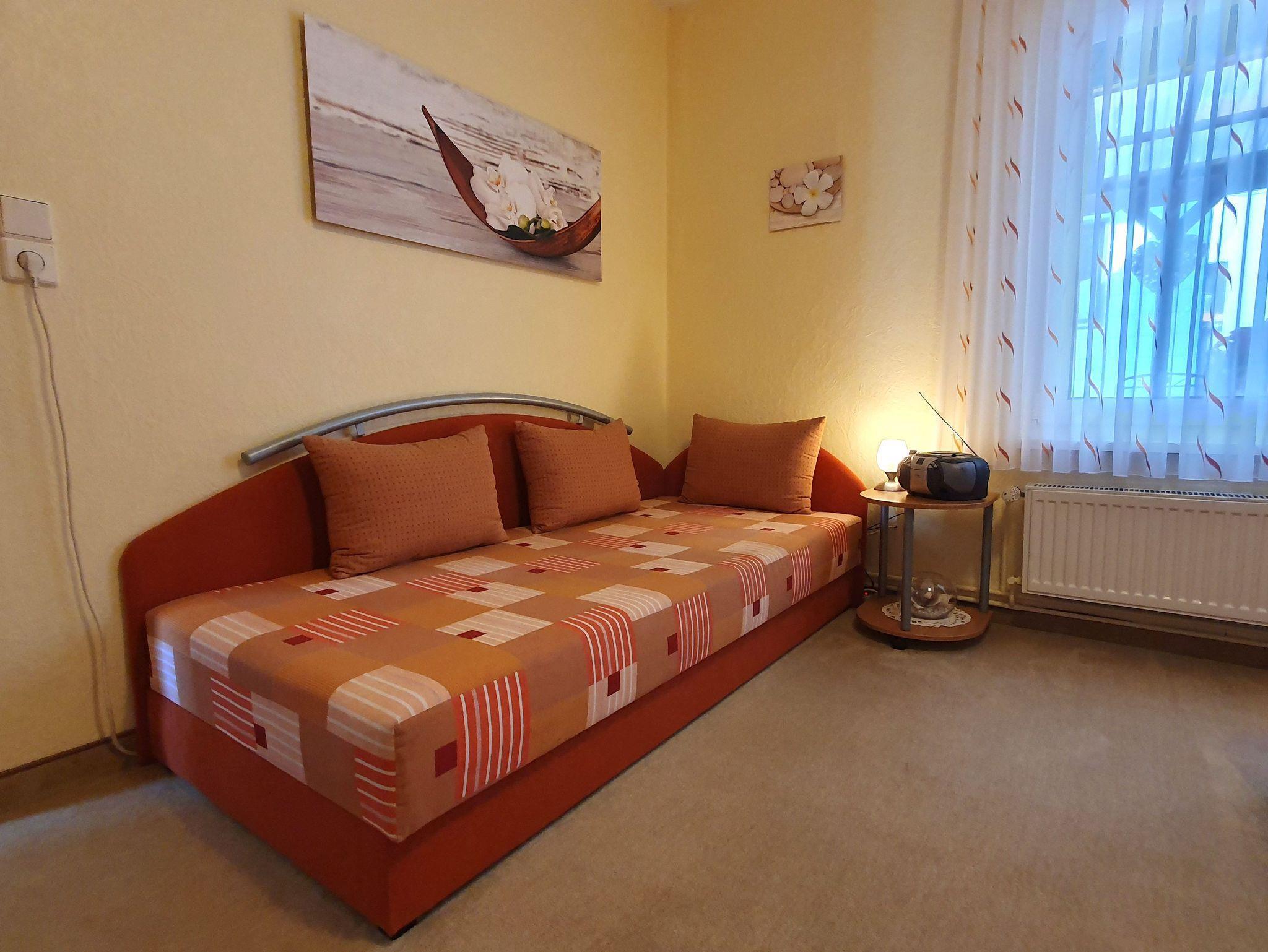 An dieser Unterkunft sind die 2 separat zugänglichen Schlafzimmer, mit Doppelbetten (2 m Länge) und einer Schlafcouch (jeweils Radio und Wecker vorhanden) das Besondere.