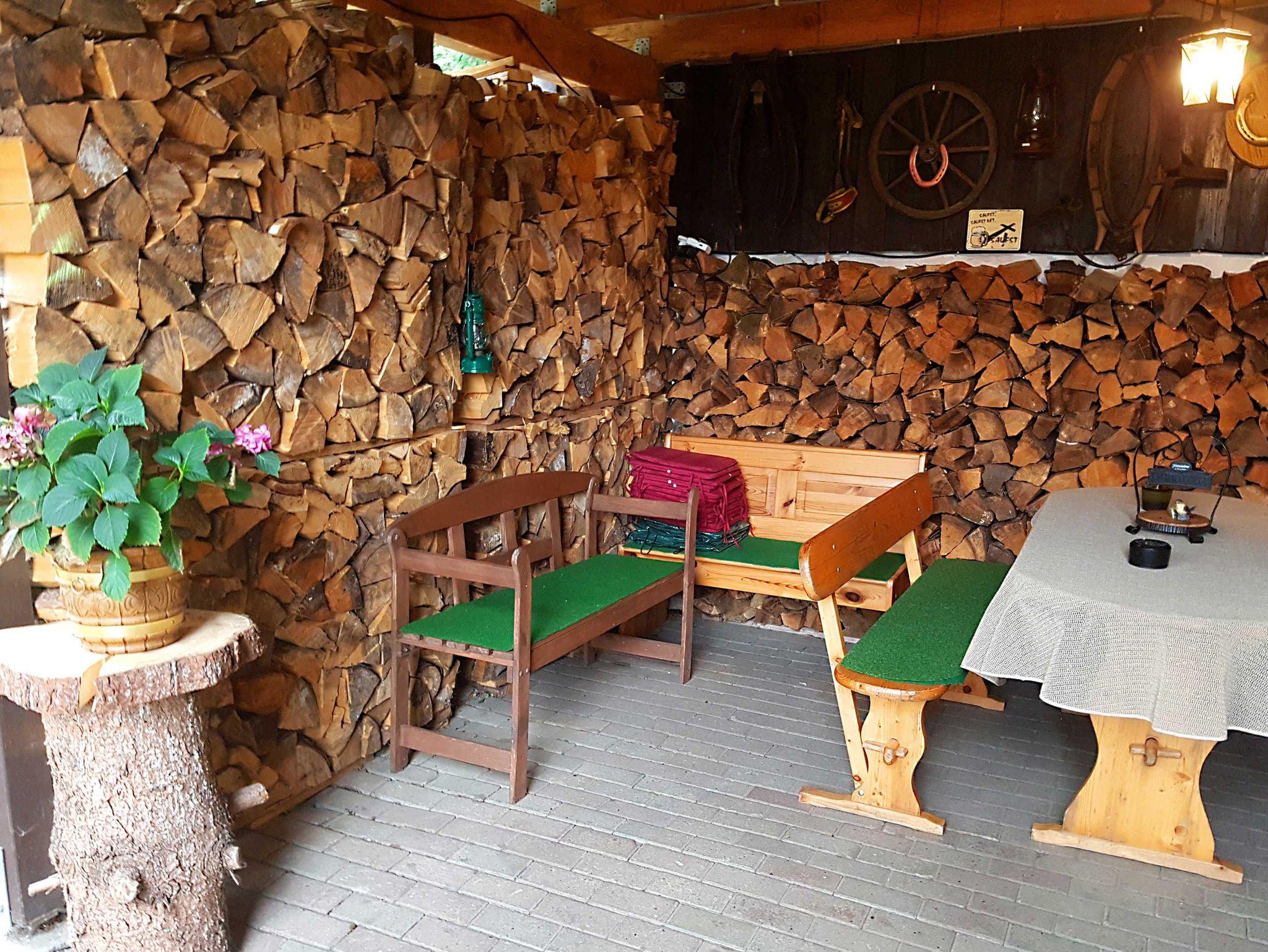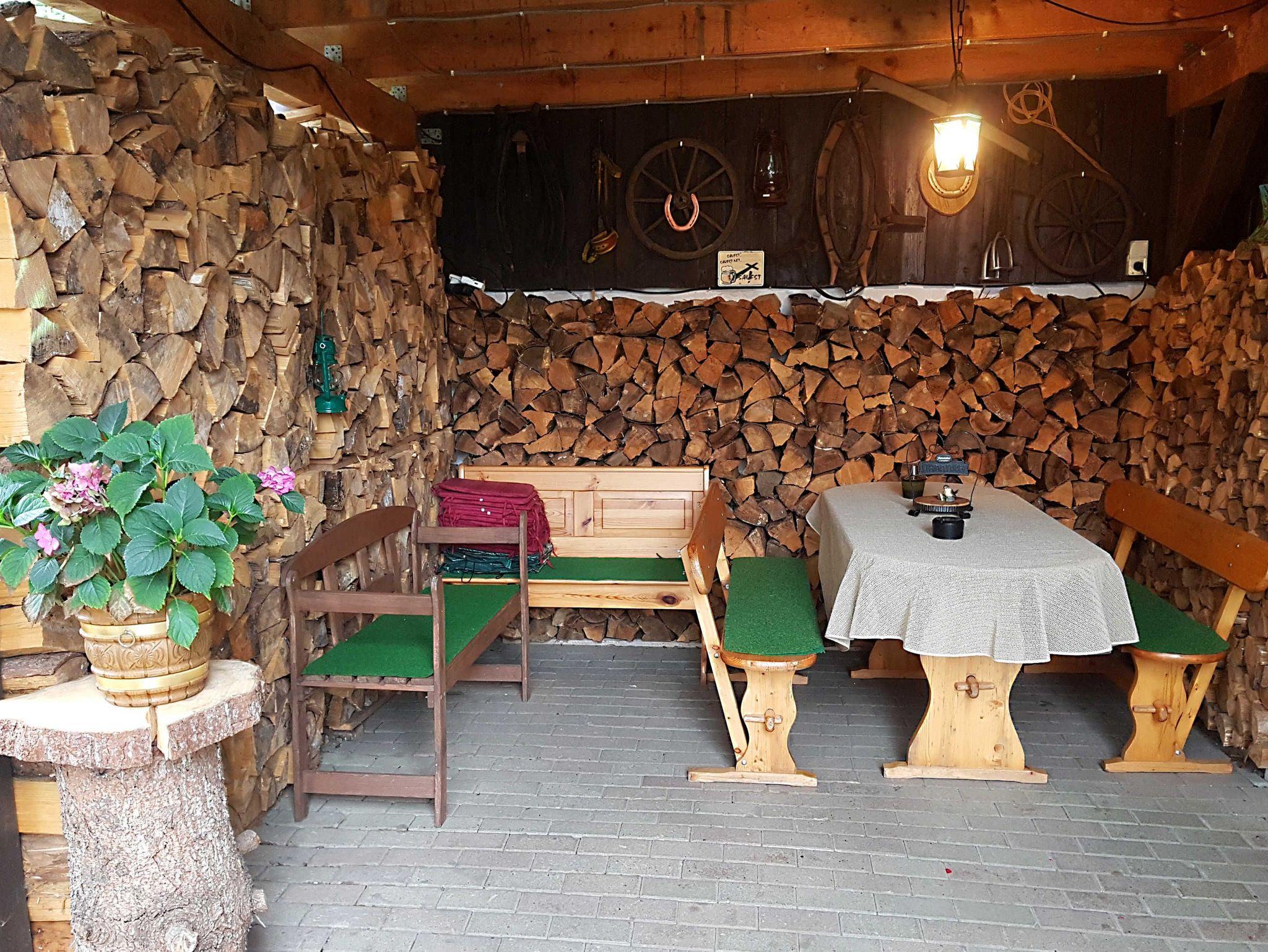 - ein überdachter Grillplatz - mit Grillkamin (Holzkohle, Grillbesteck) und Sitzgruppe