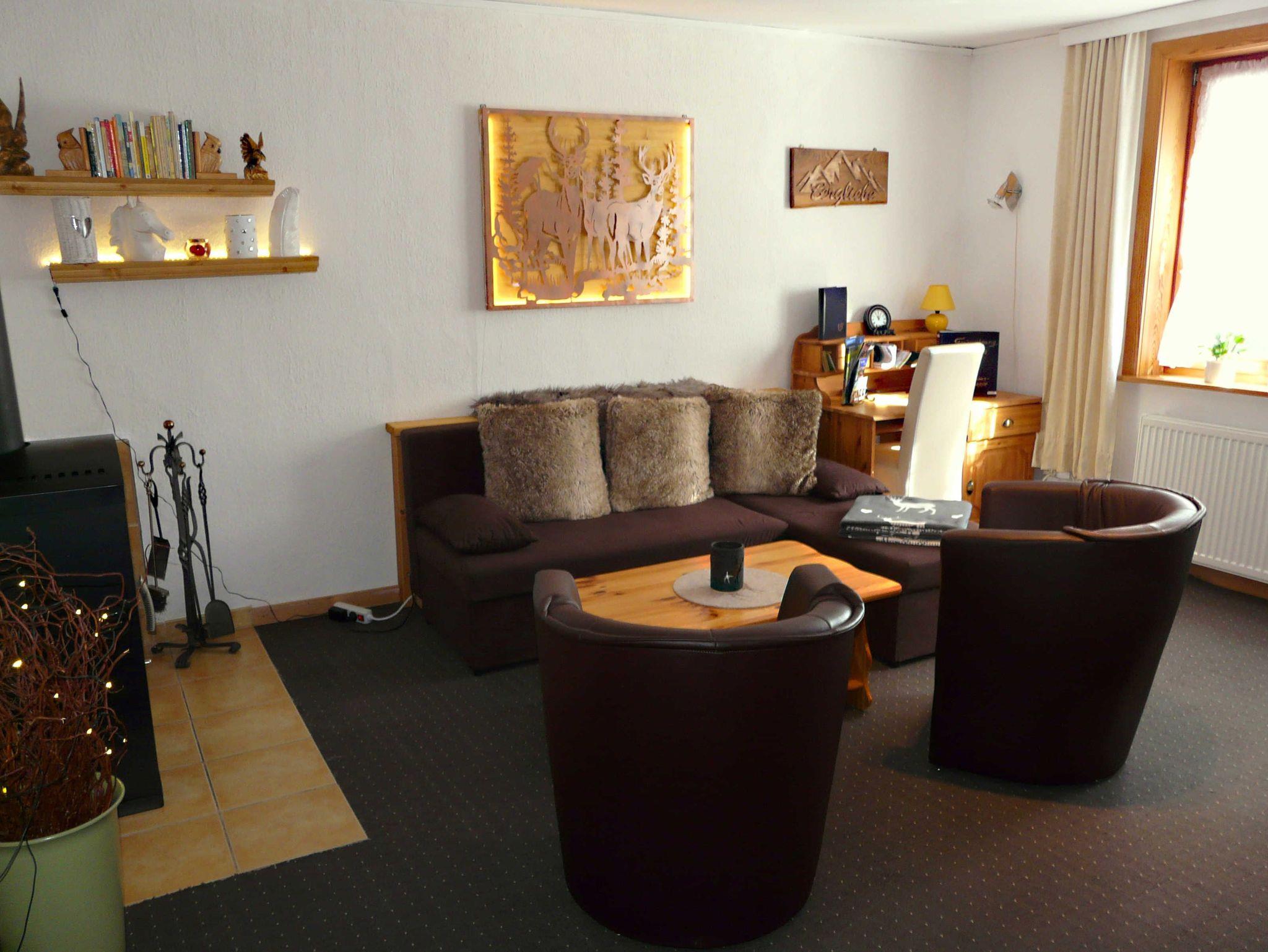 - 1 Wohnzimmer mit Kaminofen ,40LED-TV und Sofa für 2 Aufbettungen