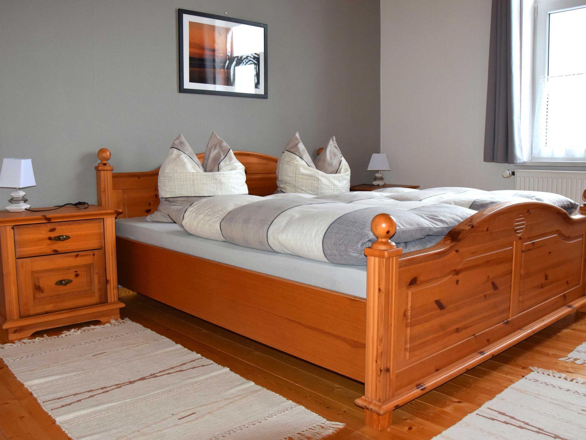 Über das Wohnzimmer gelangen Sie in das Schlafzimmer mit einem Doppelbett und einem Kleiderschrank.