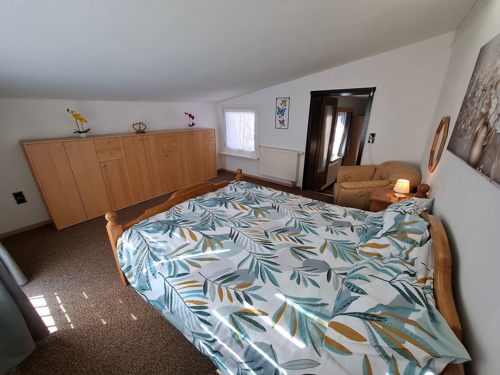 Das erste Schlafzimmer ist gemütlich mit einem Doppelbett eingerichtet. Es ist über das Durchgangsschlafzimmer erreichbar, das ein Einzelbett und einen großen Kleiderschrank bietet. Zwischen diesen beiden Zimmern gibt es zwei kleine Stufen. Gleich nebenan befindet sich ein weiteres Schlafzimmer mit einem Doppelbett, das ebenfalls sehr komfortabel ist. Das letzte Schlafzimmer, ideal für Familien mit kleinen Kindern, ist mit einem Doppelbett, einem Kleiderschrank und einem Kinder- oder Babybett ausgestattet. Wir freuen uns, Ihnen hier einen angenehmen Aufenthalt zu ermöglichen!