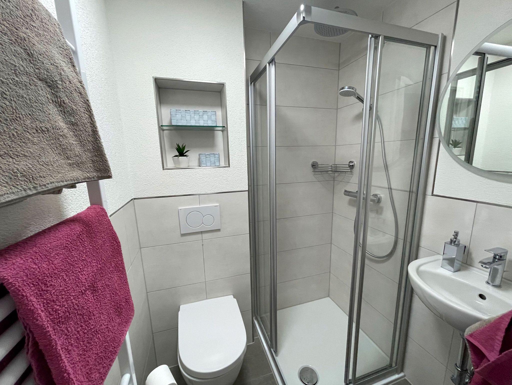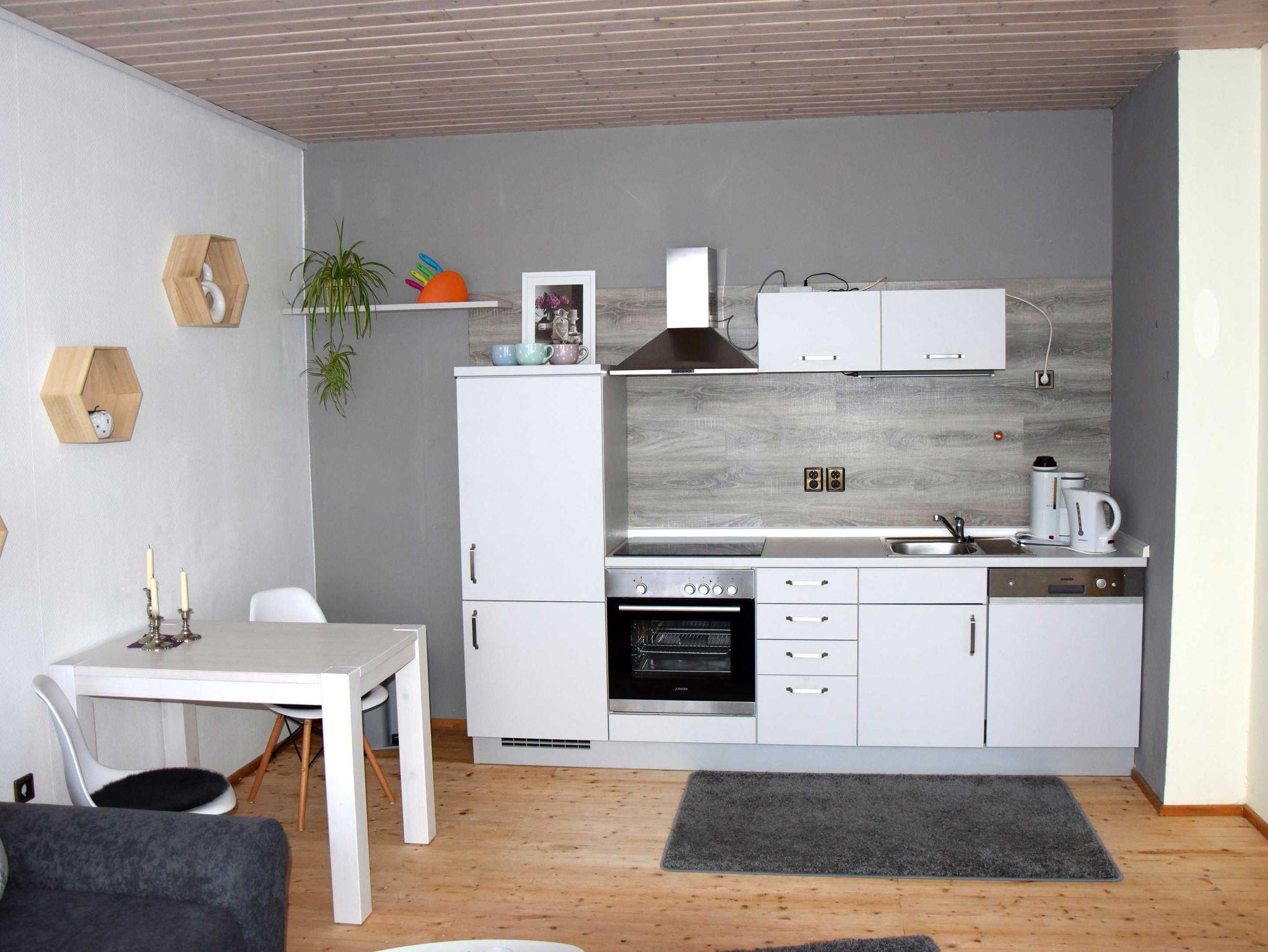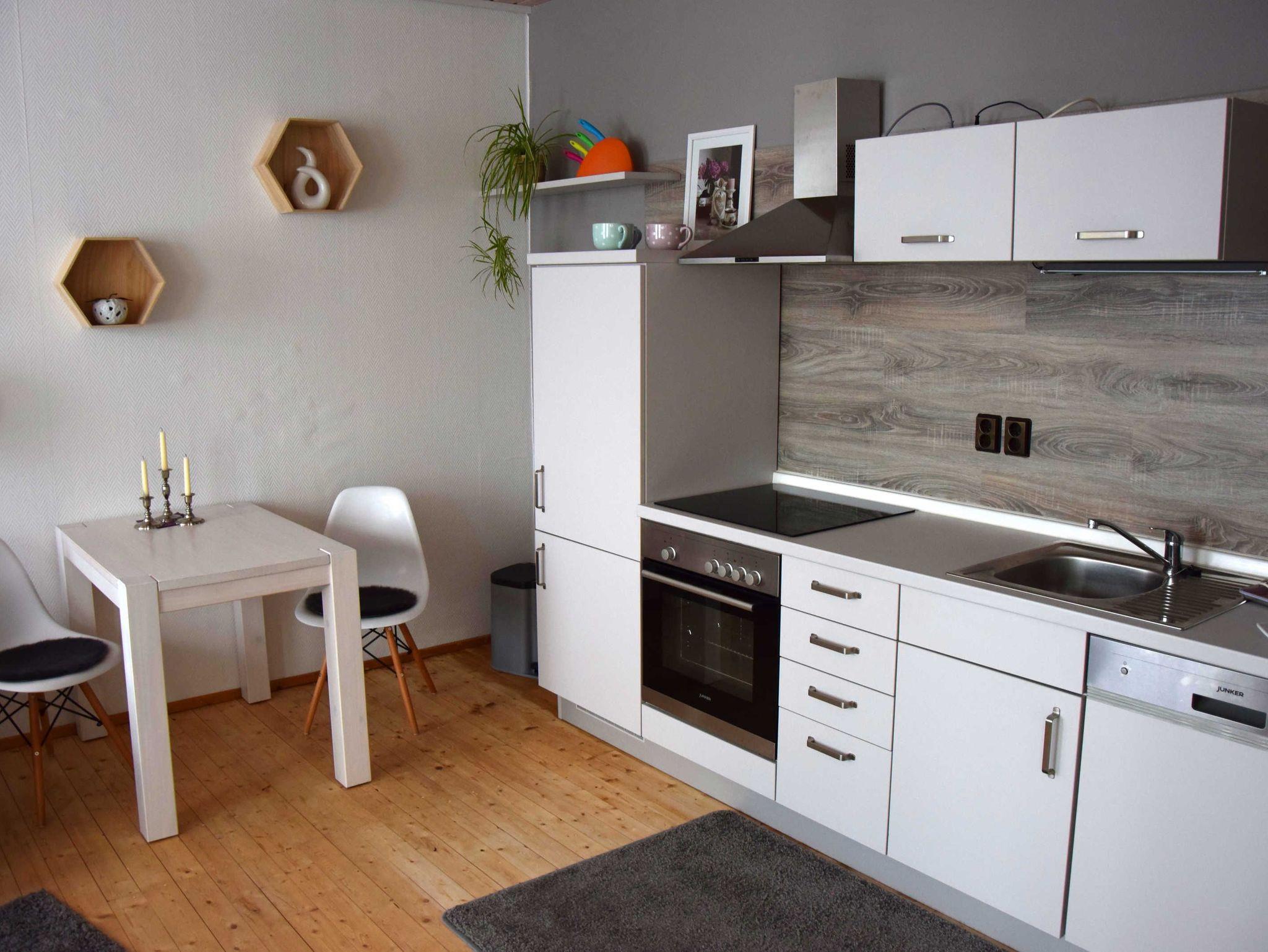 Die Ferienwohnung STILVOLL ist eine moderne, helle und großzügige Nichtraucherwohnung mit Balkon im Erdgeschoss. Sie hat eine Größe von 45 m² und bietet ein großes Wohnzimmer mit Couch, SAT-TV und offener Küche. Es erwartet sie eine Einbauküche mit Ceranfeld und Backofen, Kühlschrank mit Gefriermöglichkeit, Geschirrspüler und Esstisch. Zur Ferienwohnung gehört ein Schlafzimmer mit einem Boxspringbett und einem Kleiderschrank.
