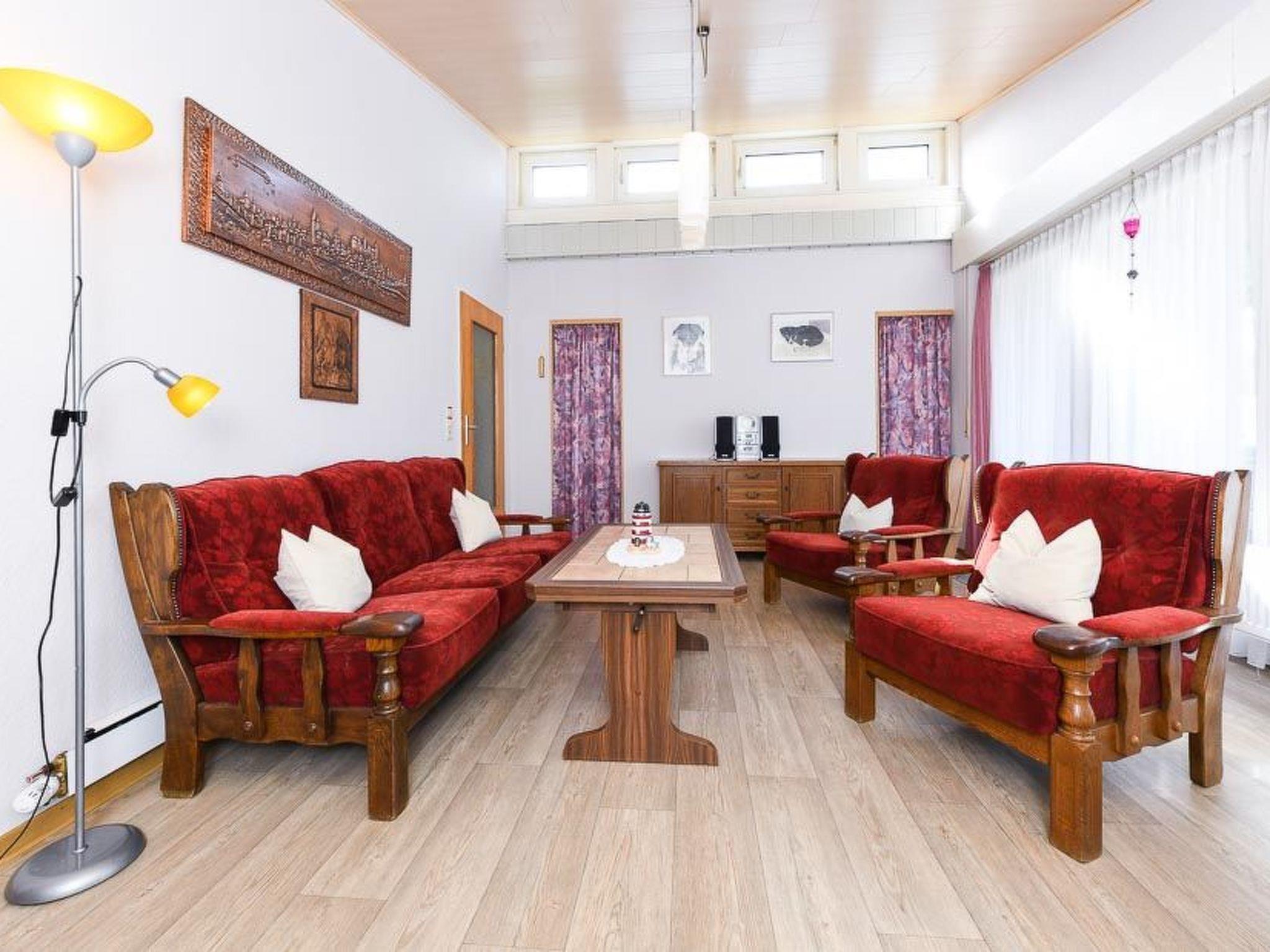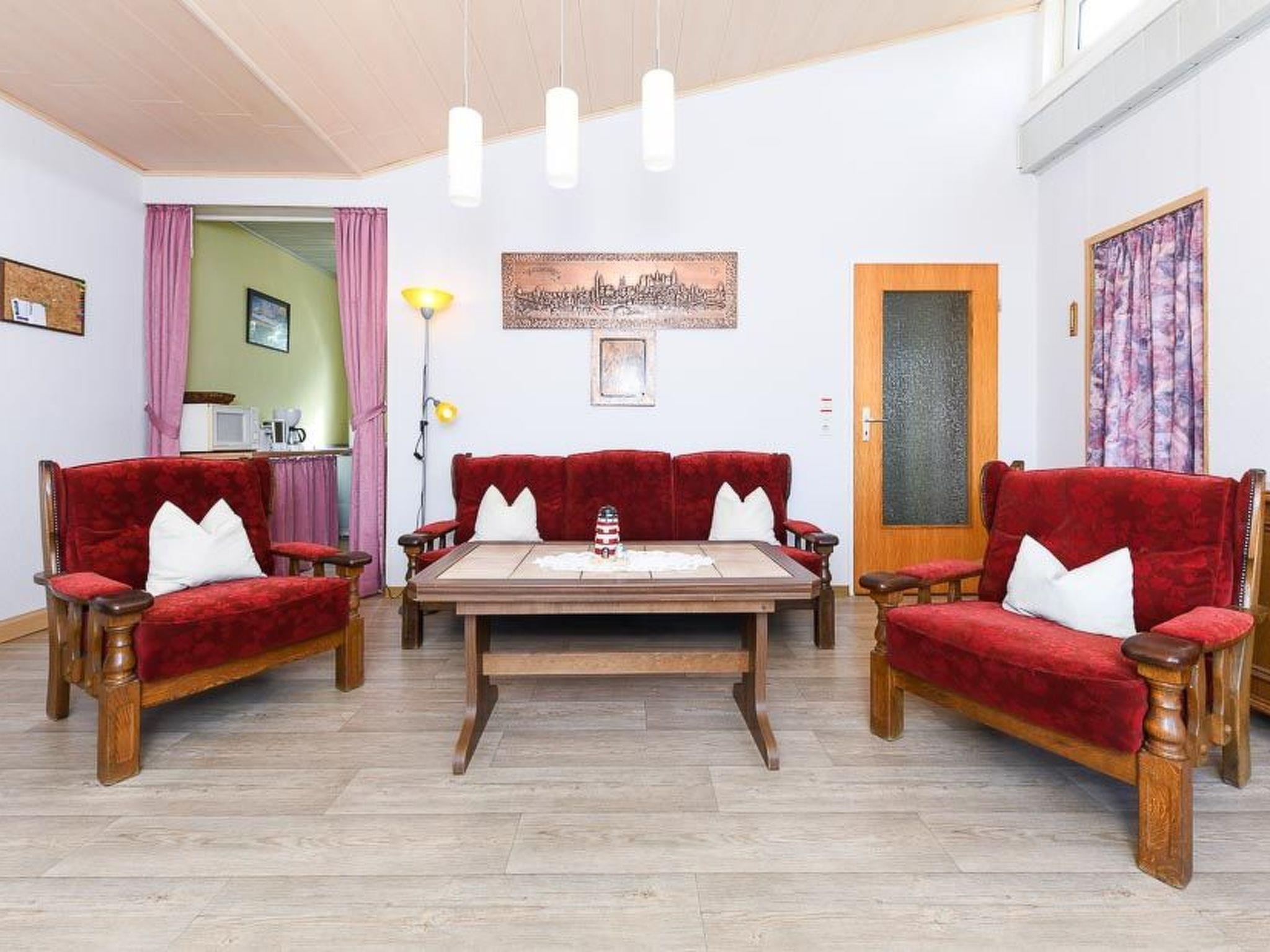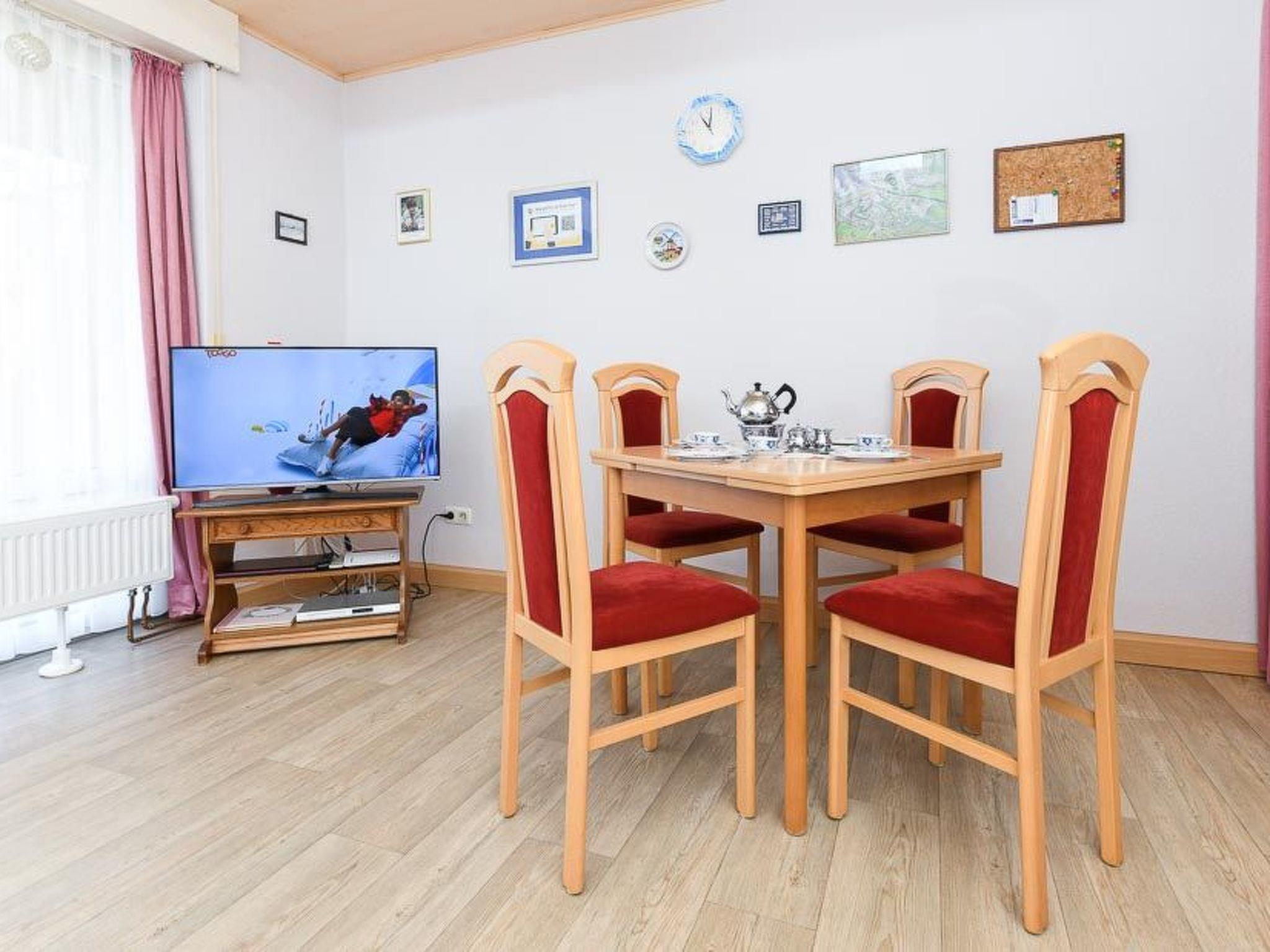 The 55 square metres of living space are divided into a living room, a bedroom with a double bed and another bedroom with bunk beds. A cot, high chair and changing table are available free of charge. In the fitted kitchen you will find the usual crockery (pots and pans, coffee and dinner service, cutlery, etc.) as well as a coffee machine, toaster and egg cooker. You can prepare your meals on a hob with ceramic hob and oven. A microwave and a separate kettle are also at your disposal. Television with satellite connection, DVD player and a stereo system are a matter of course. A selection of DVDs and our games collection will help you to make your holiday entertaining. Free W-Lan is also available. Bed linen, hand and bath towels are provided free of charge. In the bathroom you will find a toilet, a shower and a washing machine with tumble dryer.