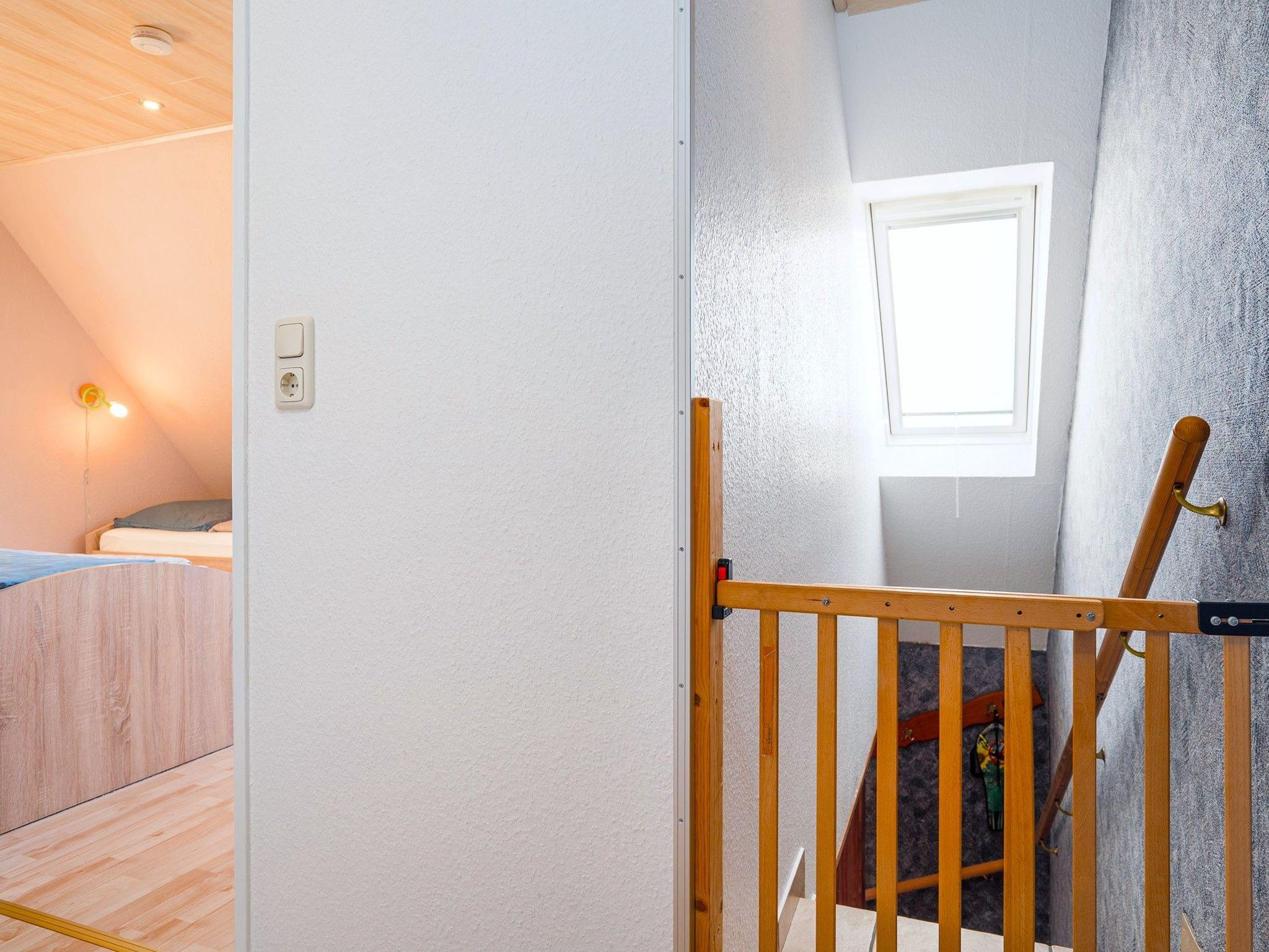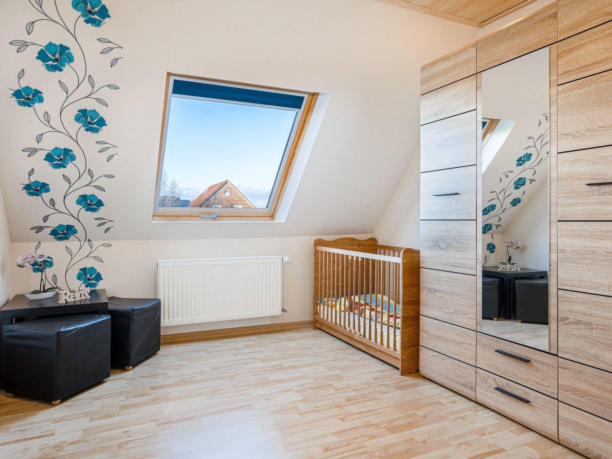 On the ground floor of each flat you will find a fully equipped kitchen-cum-living room with a cosy sofa corner, a kitchenette that leaves nothing to be desired and a bathroom with separate WC. On the upper floor there are three lovingly furnished bedrooms, which are completely darkened by skylight blinds: a master bedroom with a double bed and cot, a children's bedroom with two single beds and another single bedroom. Comfortable, adjustable slatted frames in all beds and an additional separate toilet ensure your comfort. In addition to everyday amenities such as crockery and electrical appliances, a dishwasher, washing machine, tumble dryer, satellite TV and a radio are also available to make your stay as pleasant as possible.