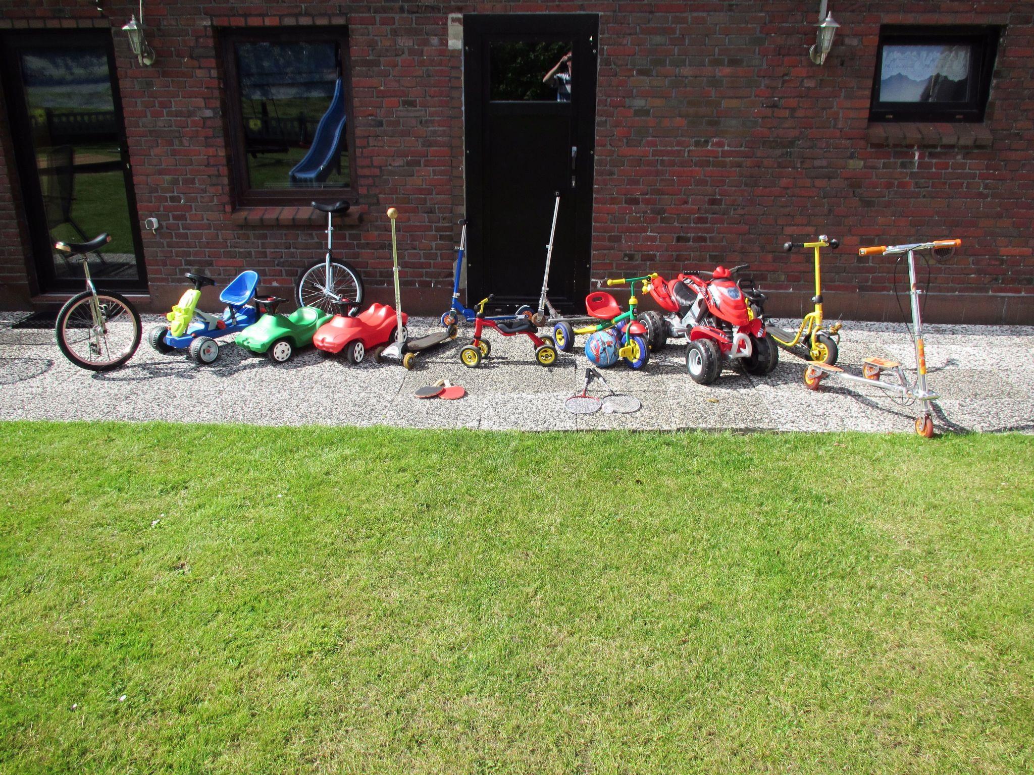 The spacious outdoor area invites you to linger and play with a large garden, play equipment, a sunbathing lawn and a children's vehicle park. Enjoy sunny days on the terrace, use the football goals, trampoline, swings, table tennis table, slide, climbing poles and sandpit or relax on the garden loungers in the open air. A barbecue, a fitness room with modern equipment and free bicycles offer plenty of opportunities for outdoor activities.