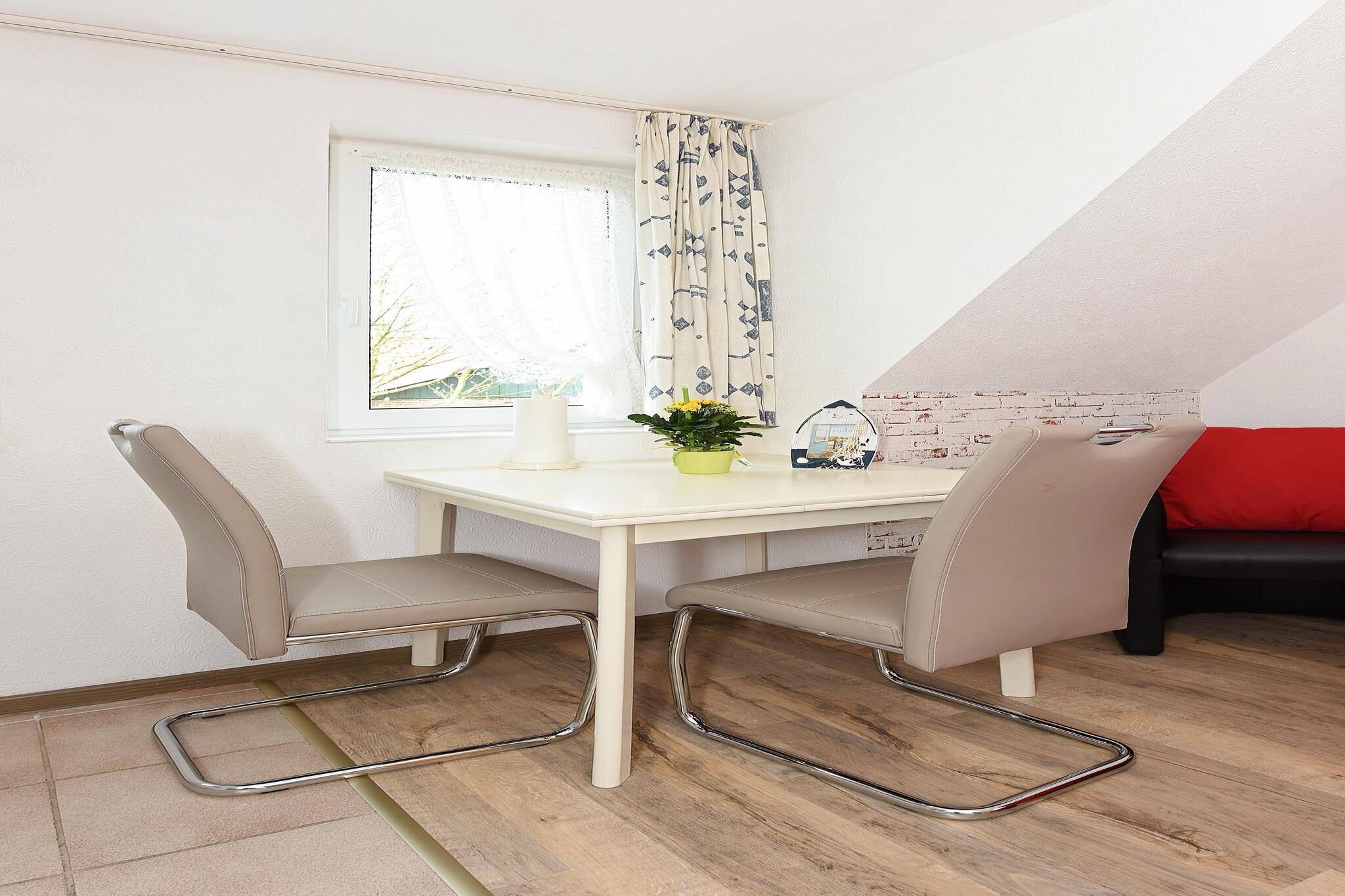 Den stilfuldt møblerede ferielejlighed ligger på øverste etage og blev fuldstændig renoveret og istandsat i foråret 2016. Lejlighedens velgennemtænkte planløsning tilbyder det ideelle tilflugtssted for to personer. Den åbne stue og spisestue med integreret køkken inviterer til at blive hængende. Det fuldt udstyrede køkken lader intet tilbage at ønske – med ovn, komfur, opvaskemaskine og kaffemaskine er det perfekt til en afslappet morgenmad eller en afslappende middag. Et fladskærms-tv med internetforbindelse, gratis Wi-Fi og en behagelig sofa sikrer afslappende timer efter en dag udendørs. Lejlighedens planløsning omfatter et soveværelse og et moderne badeværelse med bruser, håndvask og toilet. Udenfor inviterer lejlighedens terrasse med havemøbler dig til at nyde de rolige omgivelser. Højdepunkter: Wi-Fi, forbrugsbaserede energiomkostninger og en linnedpakke er inkluderet. Bemærkning om slutrengøring: Ved ophold på mindre end 5 nætter betales et gebyr på EURO80; ellers er slutrengøring inkluderet.