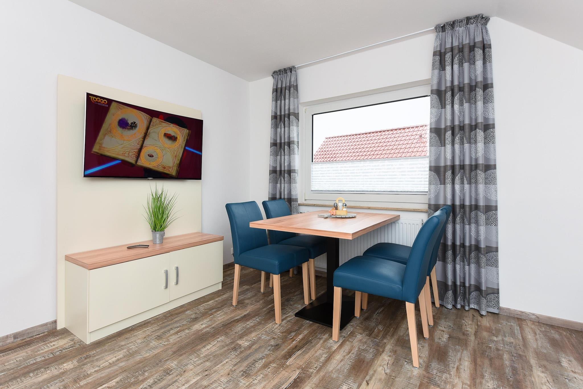 Disse moderne, 4-stjernede ferielejligheder i Bensersiel ligger blot få minutters gang fra havnen og Nordsøstranden og er ideelle for par, familier og dem, der søger afslapning. Indkvarteringen blev fuldstændig renoveret i 2017 og møbleret til en høj standard – perfekt til en afslappende ferie ved kysten. Ferielejligheden har plads til op til 4 personer og kan prale af en gennemtænkt planløsning: et soveværelse med fladskærms-tv, en komfortabel opholdsstue med en sovesofa og madras af høj kvalitet, et moderne køkken med alle nødvendige apparater og et stilfuldt badeværelse med bruser, håndvask og toilet. Udenfor inviterer en privat balkon med siddeområde dig til at slappe af. Der er også en velholdt grillplads bag huset – trækul eller gas stilles til rådighed gratis. Et særligt højdepunkt er den gratis brug af en opvarmet og overdækket swimmingpool, der ligger i en nærliggende partnerejendom – kun 3-4 minutters gang væk. Højdepunkter: Wi-Fi, forbrugsbaserede energiomkostninger og en vaskeripakke inkluderet. Bemærkning om slutrengøring: Ved ophold på mindre end 5 nætter betales et gebyr på EURO80; ellers er slutrengøring inkluderet.