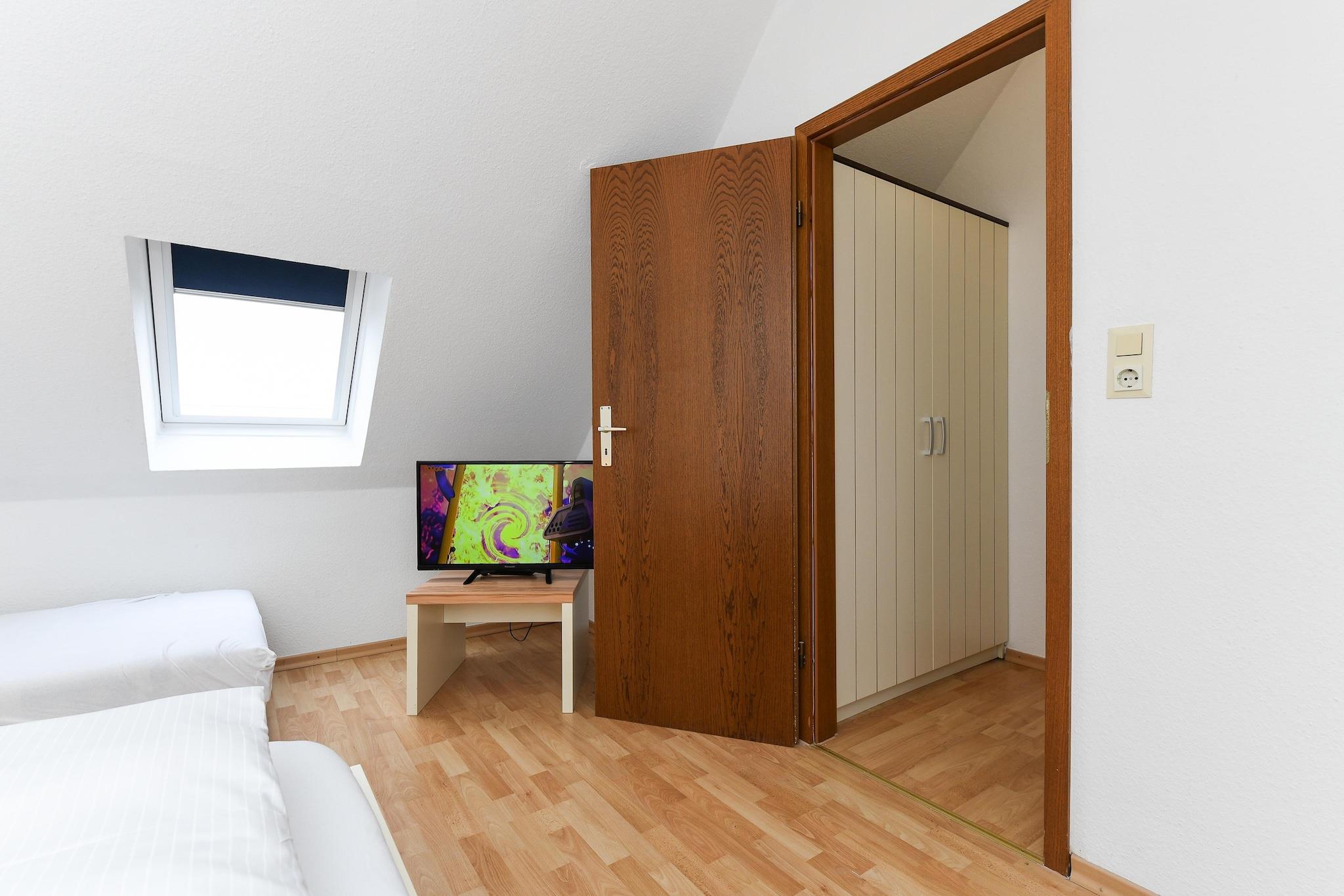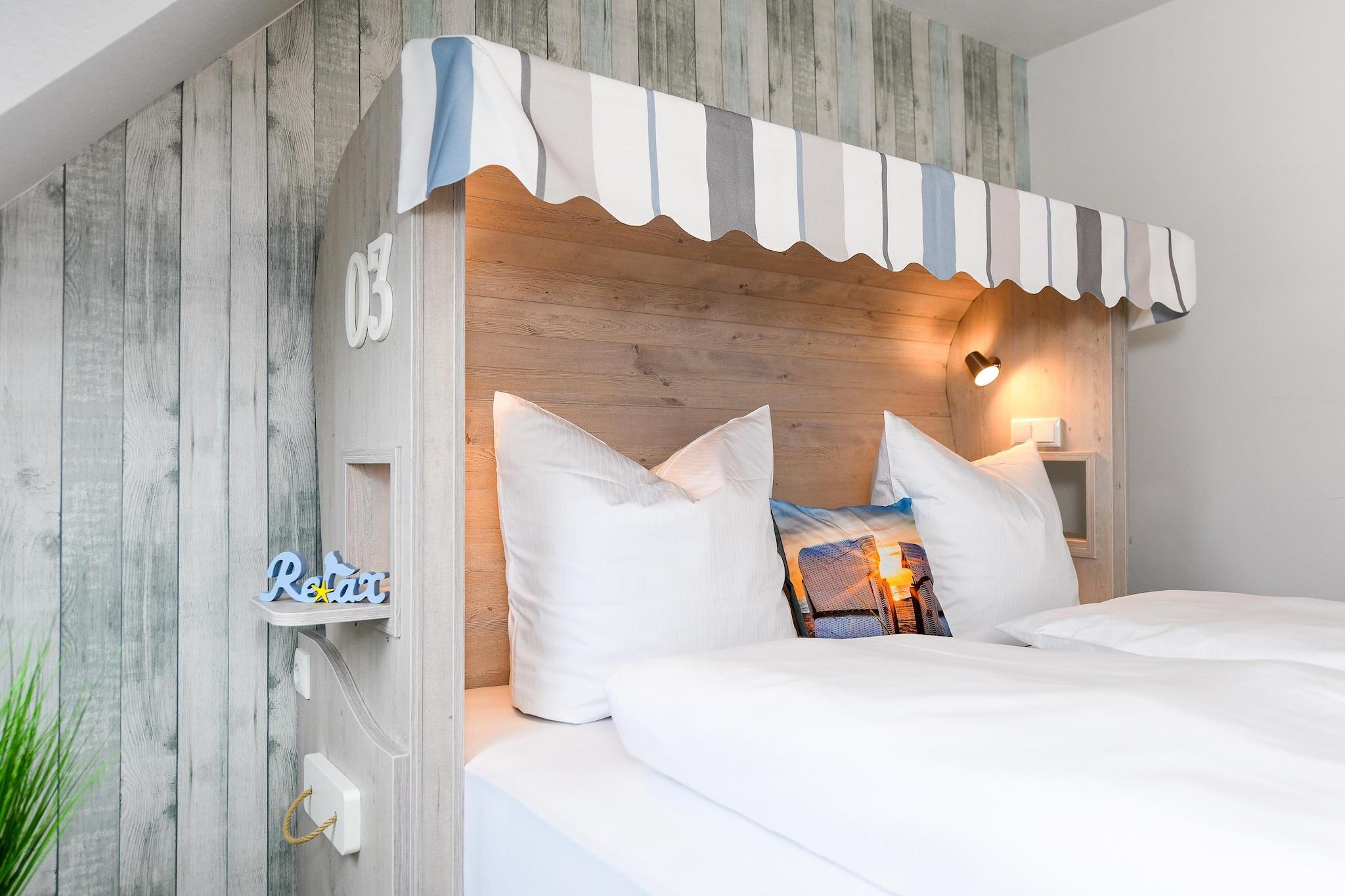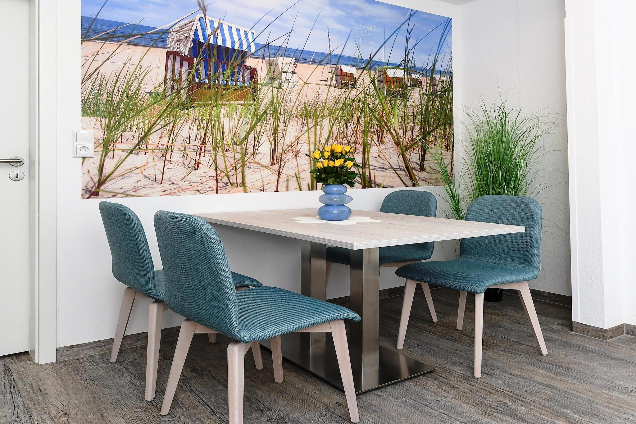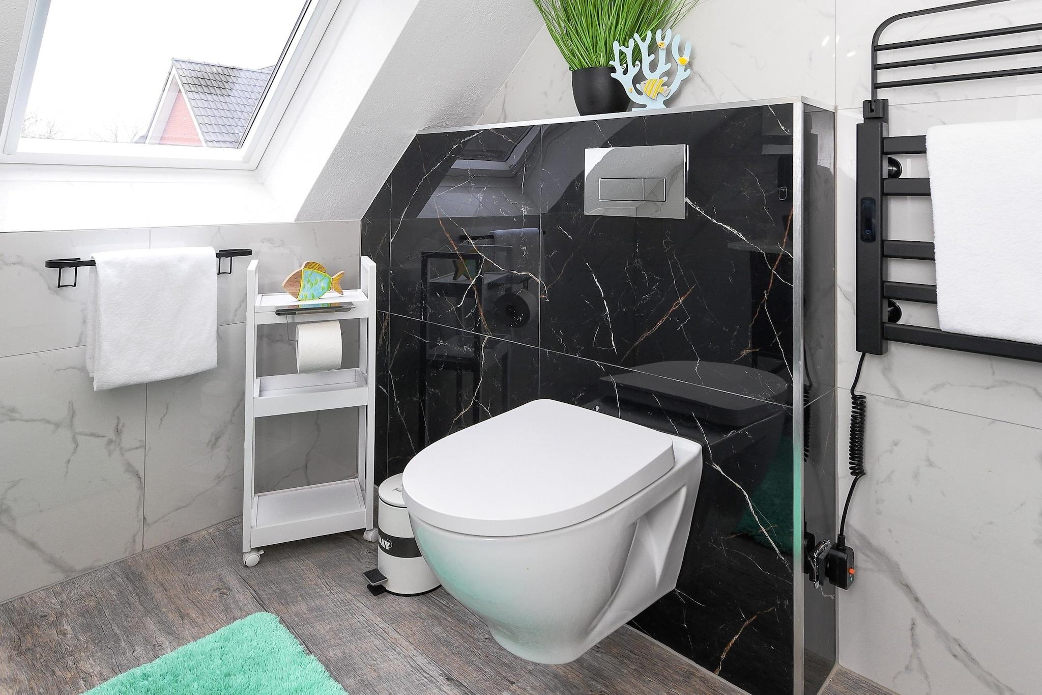 Denne hyggelige lejlighed i stueetagen på cirka 50 m² tilbyder alt, hvad familier og dem, der søger afslapning, har brug for til en afslappende ferie ved Nordsøen. Lejligheden er ideel til 1 til 4 personer plus et ekstra lille barn. Den har en lys opholdsstue med integreret køkken, et separat soveværelse, et børneværelse og et moderne badeværelse med bruser og toilet. Den private terrasse inviterer til at nyde solrige morgenmader eller afslappende aftener udendørs. Gratis Wi-Fi, moderne køkkenapparater, et fladskærms-tv og madrasser af høj kvalitet sikrer komforten i hjemmet. Særligt praktisk for familier: Der er vaskemaskine og tørretumbler i fællesområdet. Den velholdte have bag huset tilbyder rigelig plads til leg og afslapning. Takket være den rolige beliggenhed og nærheden til stranden, bymidten og fritidsaktiviteter er lejligheden ideel til par eller børnefamilier, der ønsker at nyde deres ferie ved Nordsøkysten. Højdepunkter: Wi-Fi, forbrugsbaserede energiomkostninger og en linnedpakke inkluderet. Bemærkning om slutrengøring: Ved ophold på mindre end 5 nætter betales et gebyr på EURO80; ellers er slutrengøring inkluderet.