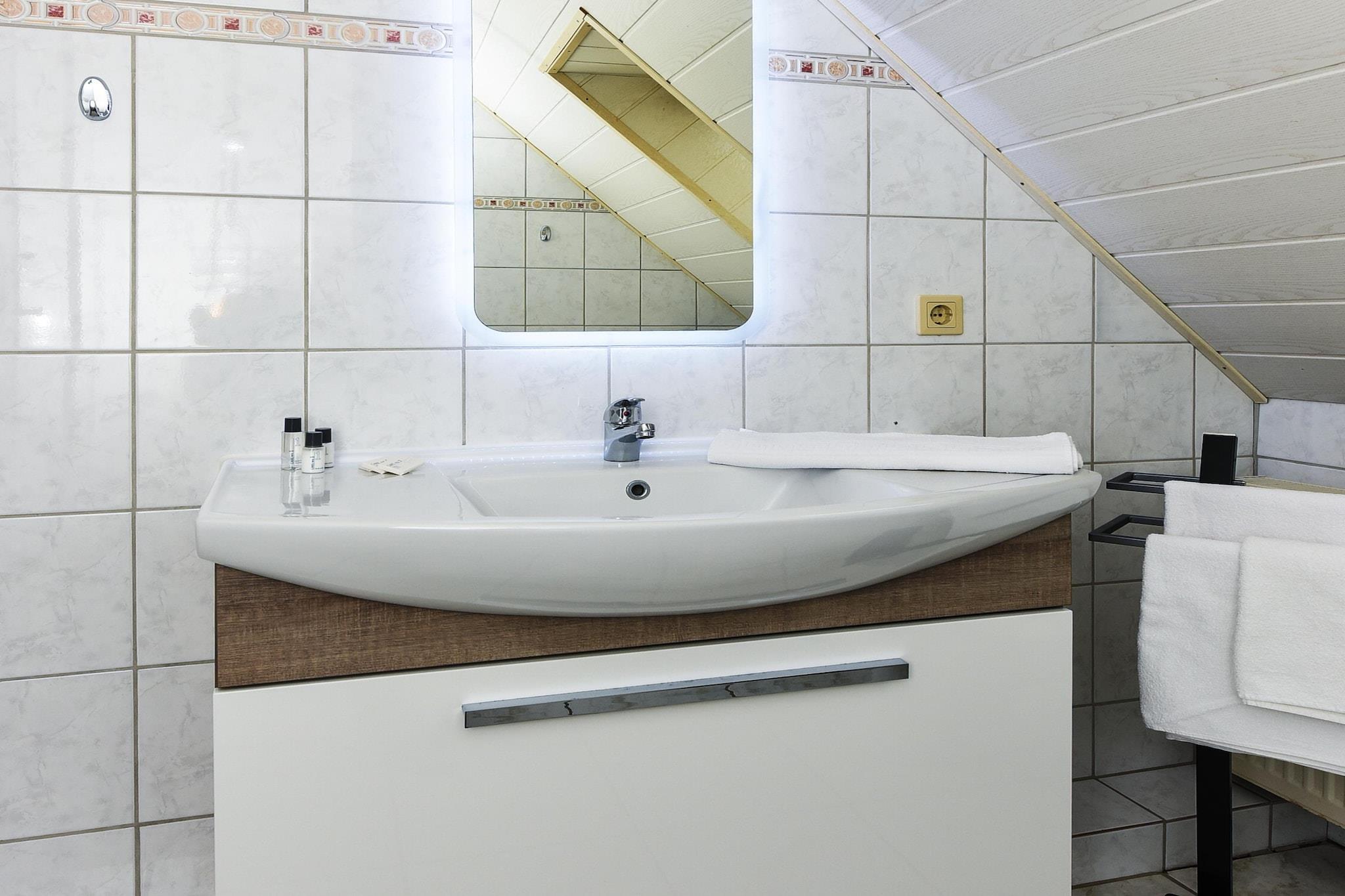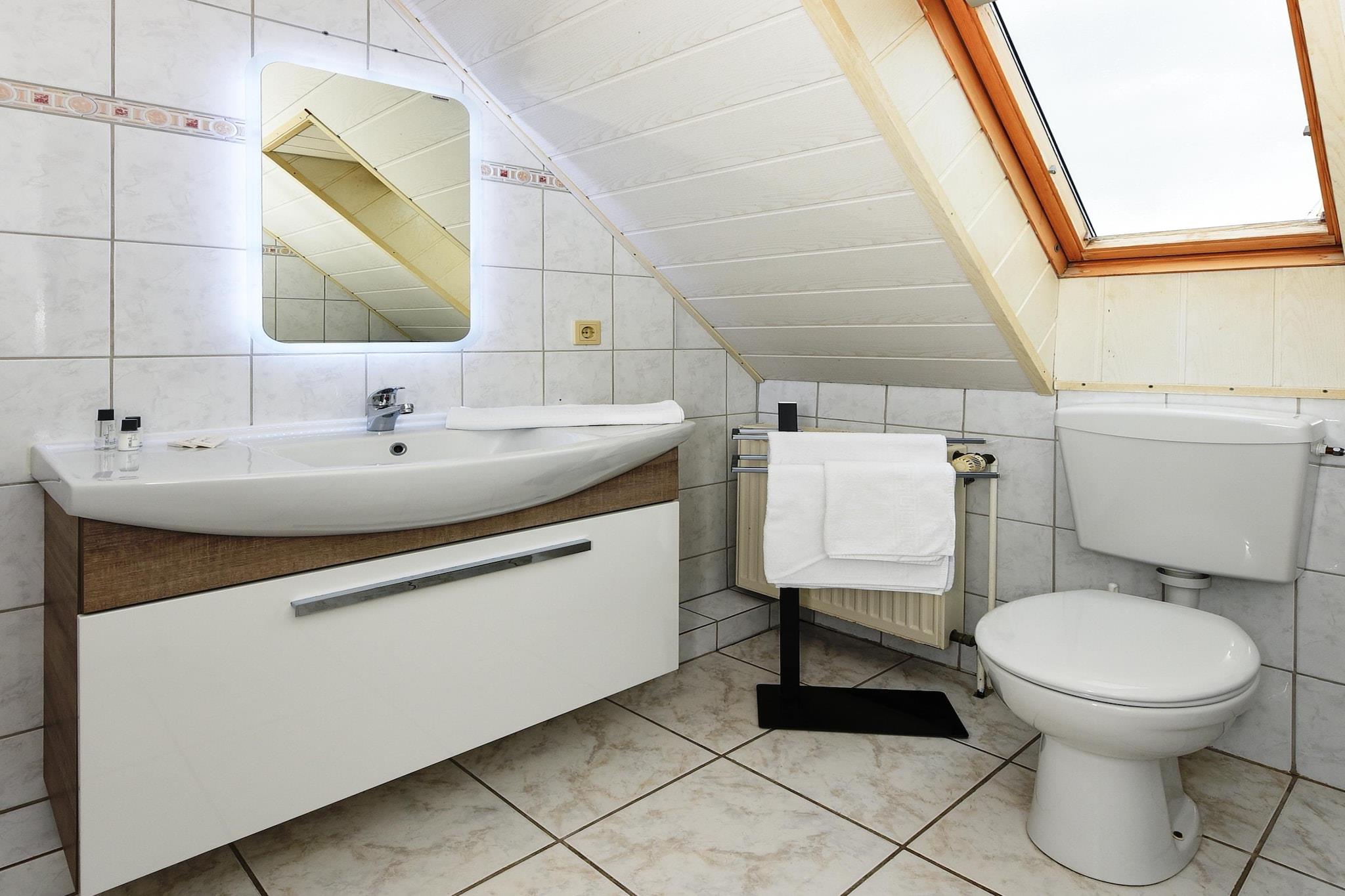 Denne hyggelige loftslejlighed kan prale af gennemtænkt indretning og en indbydende atmosfære – ideel til familier eller små grupper. Med to soveværelser (en dobbeltseng og to enkeltsenge) kan den rumme op til fire personer. Det fuldt udstyrede køkken inkluderer et komfur med fire blus, mikrobølgeovn, kaffemaskine, opvaskemaskine og køleskab – perfekt til selvhusholdning. Opholds- og spisestuen har et tv, spisebord og et komfortabelt siddeområde til afslappende aftener. Badeværelset er moderne udstyret med bruser, toilet, håndvask og hårtørrer. Højdepunkter: Wi-Fi, forbrugsbaserede energiomkostninger og en linnedpakke er inkluderet. Bemærkning om slutrengøring: Ved ophold på mindre end fem nætter opkræves et gebyr på 80 EURO; ellers er slutrengøring inkluderet.