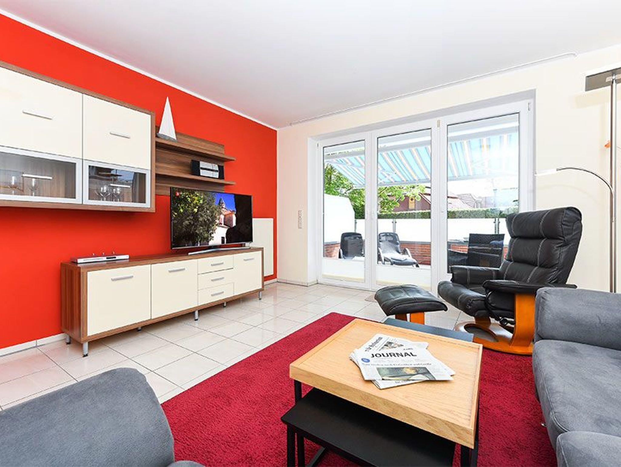 Größe ca. 50 Quadratmeter, Wohnzimmer, Küche, Schlafzimmer, Badezimmer mit Dusche, Waschtisch und WC, Erdgeschoss, Terrasse, optimal für 1 bis 2 Personen.