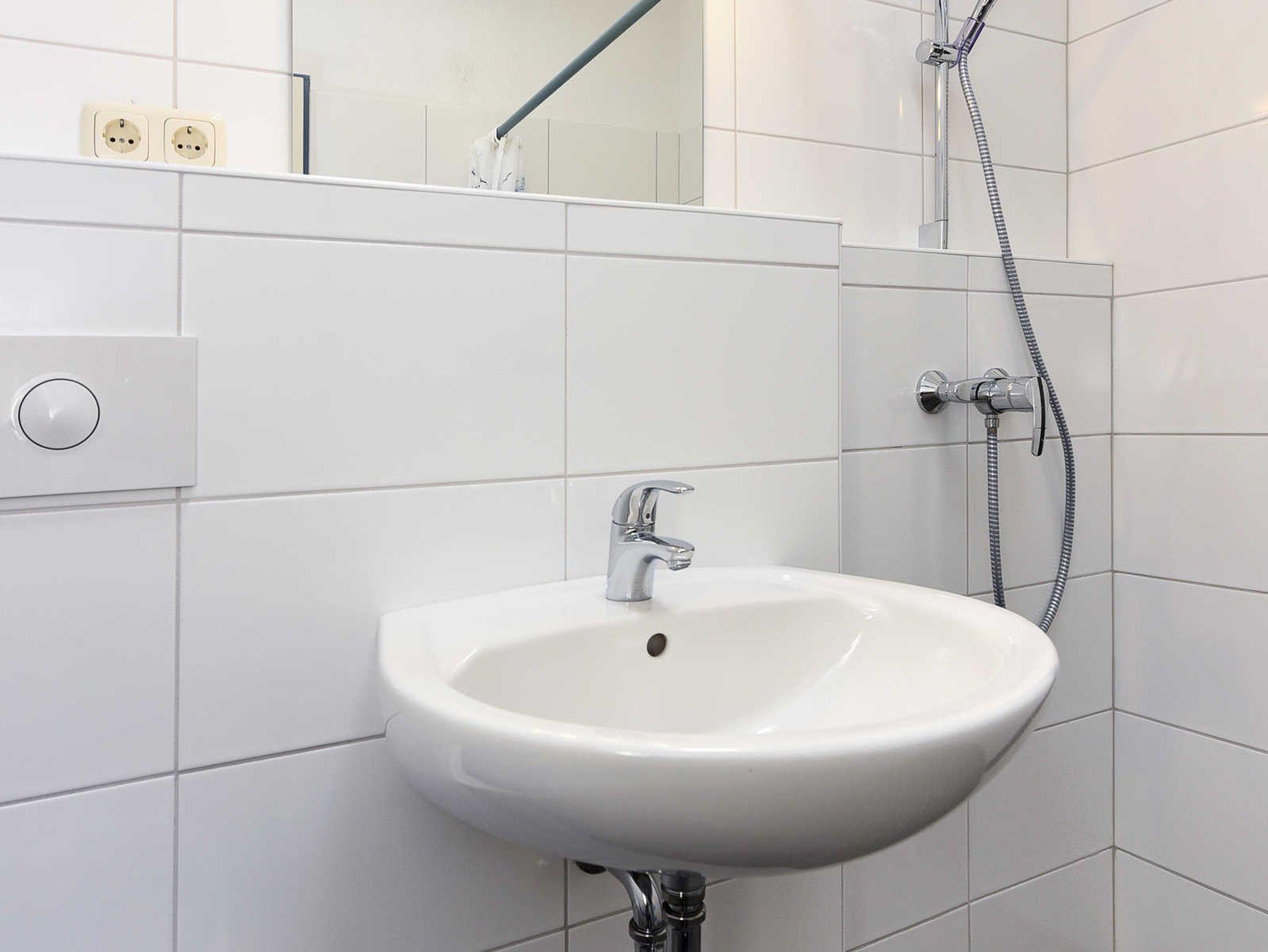 Badezimmer mit Dusche, Waschtisch und WC