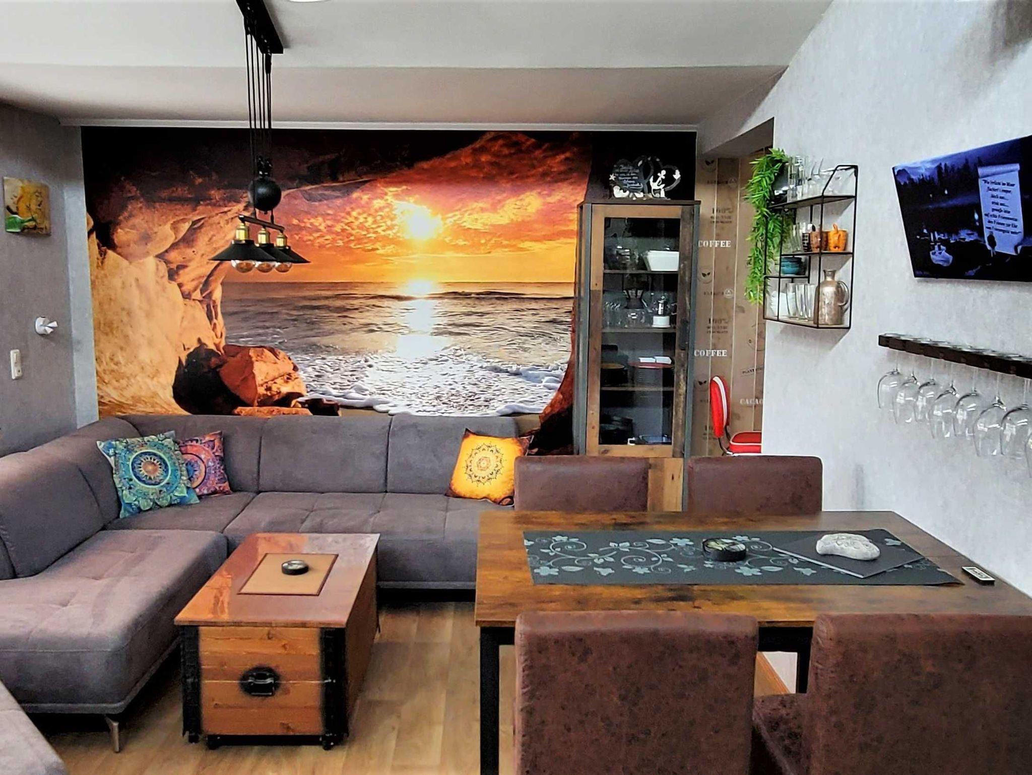 • Wohn-Essbereich, modern eingerichtet mit maritimen Flair. Das Oberlicht sorgt für besonders schönes Licht. Smart-TV, Internet-Radio