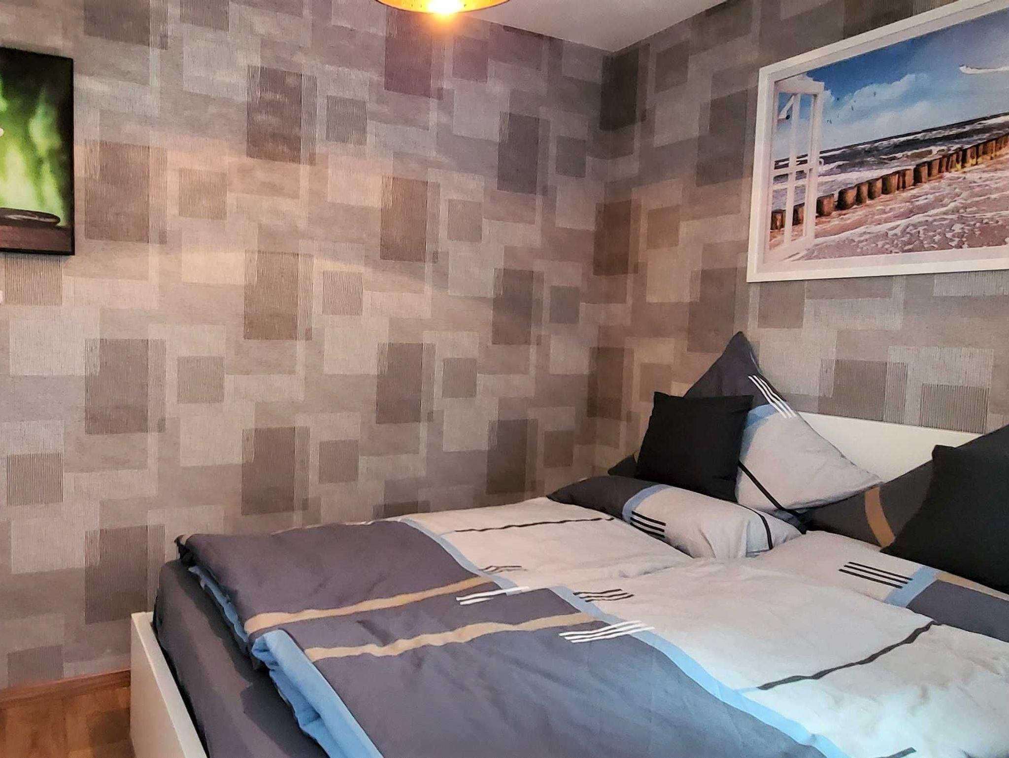 • Zweites Schlafzimmer mit 2 feststehenden Boxspringbetten (je 90x200 cm). Kleiderschrank und Steckdosen.