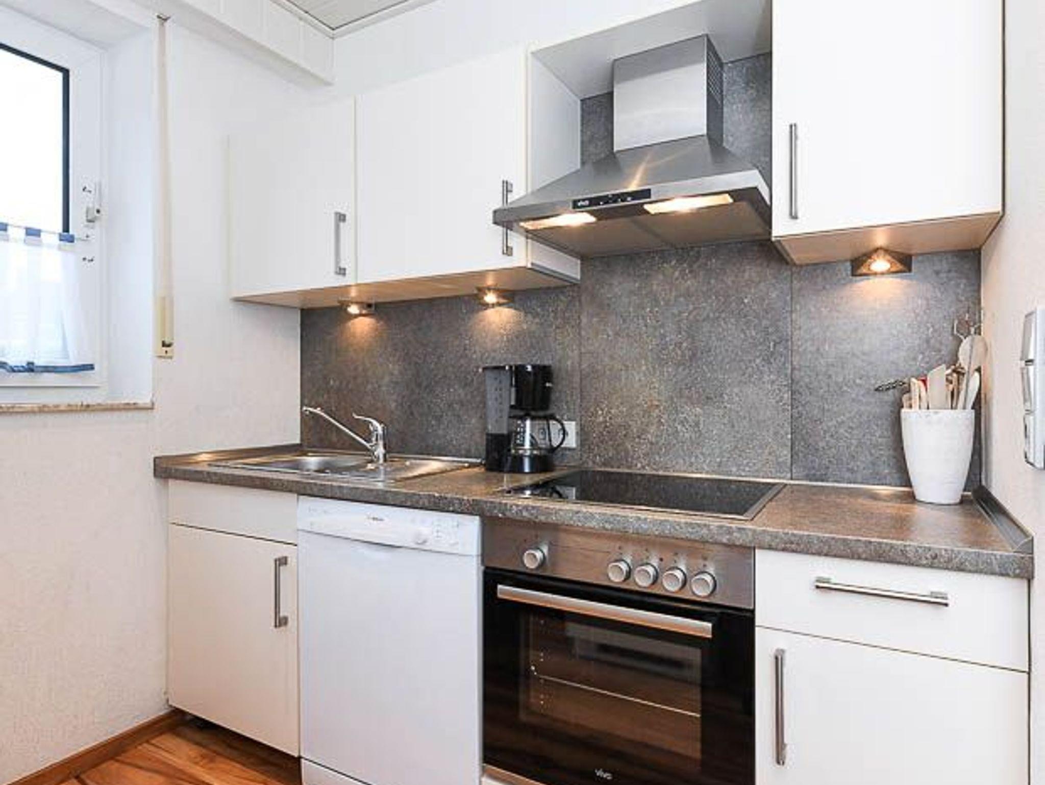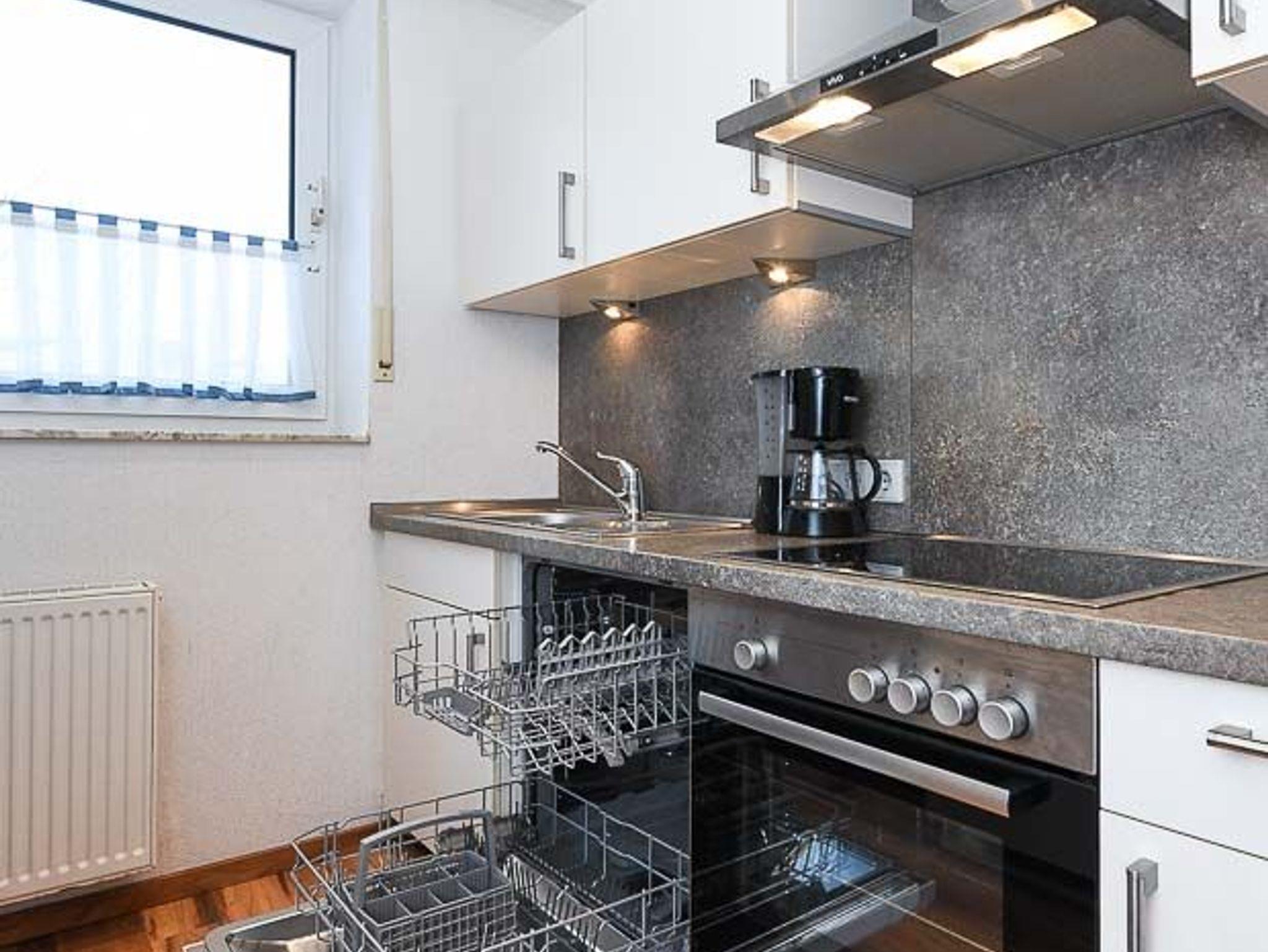 Küche mit Geschirrspülmaschine und Mikrowelle