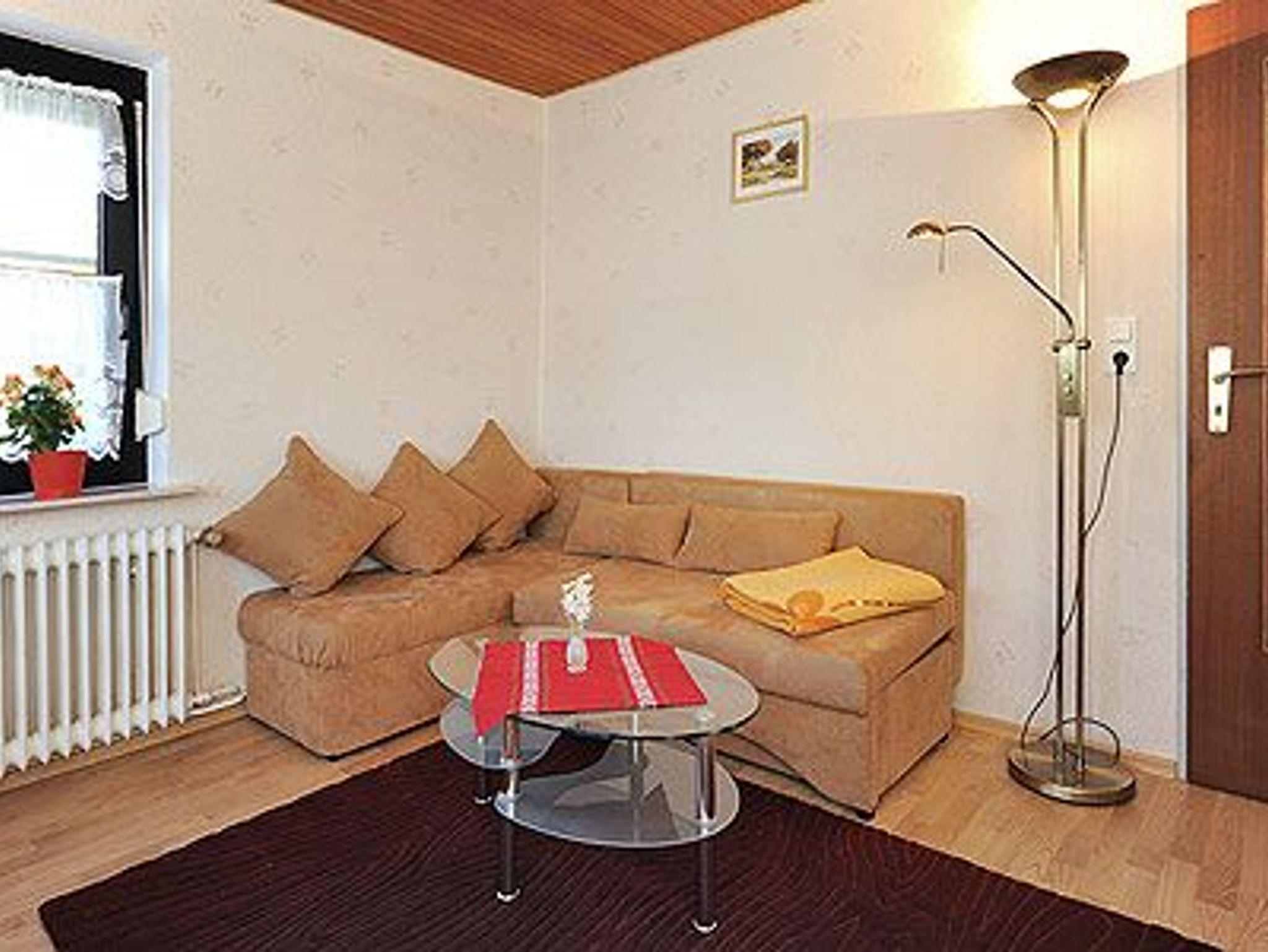 Im Wohnzimmer befindet sich ein zusätzliches Schlafsofa der Größe 130 (Breite) x 190 cm (Länge).