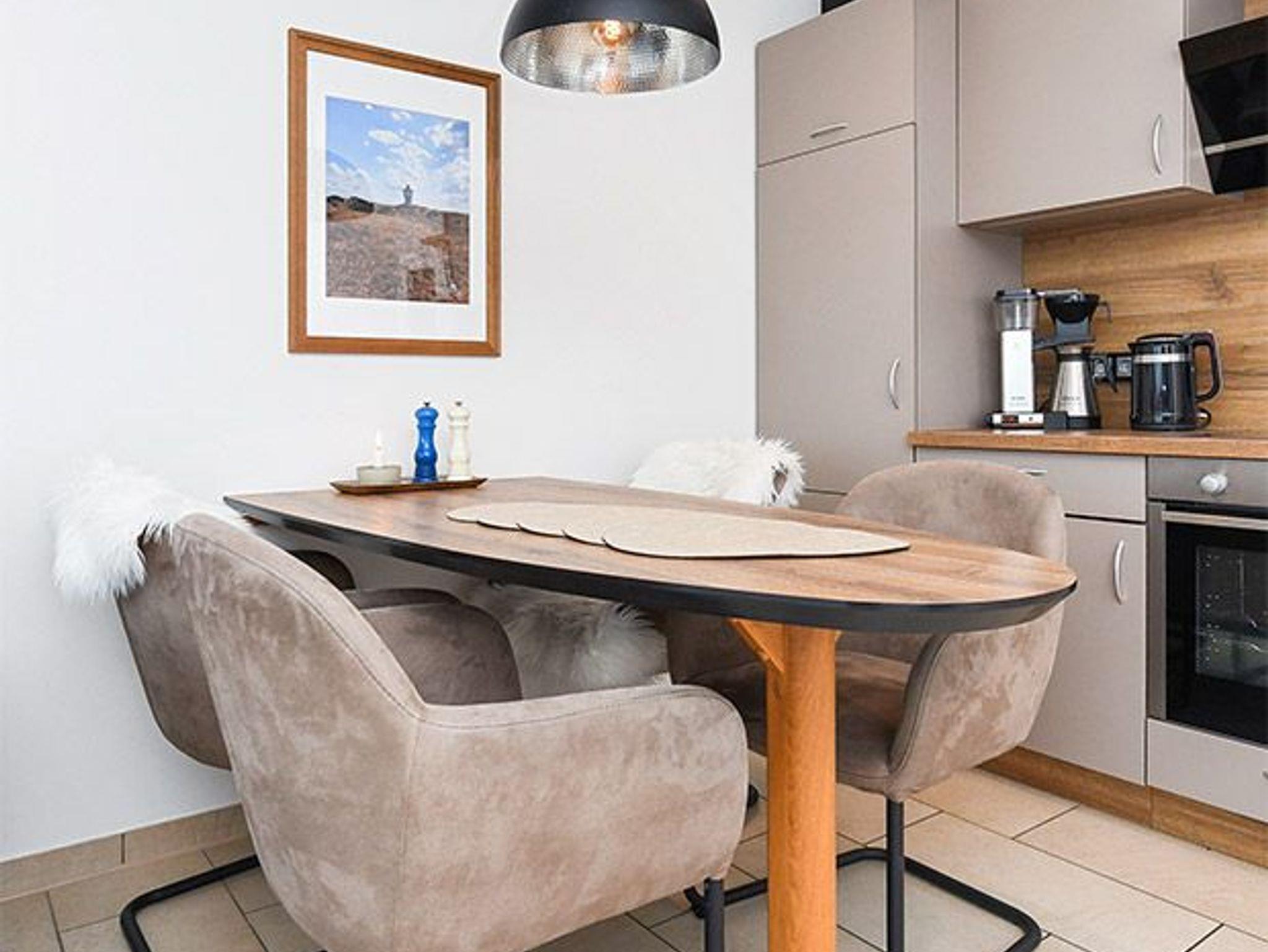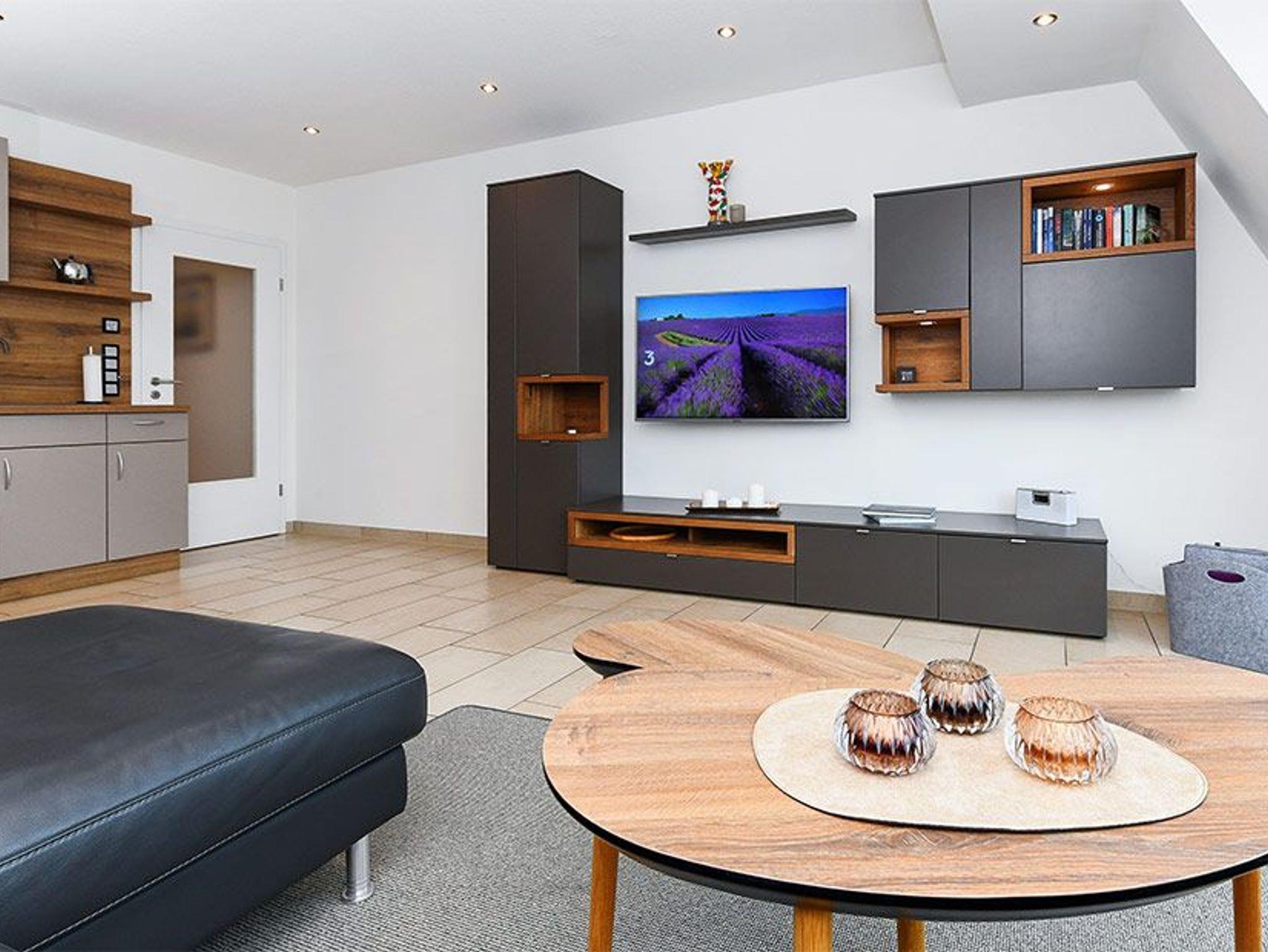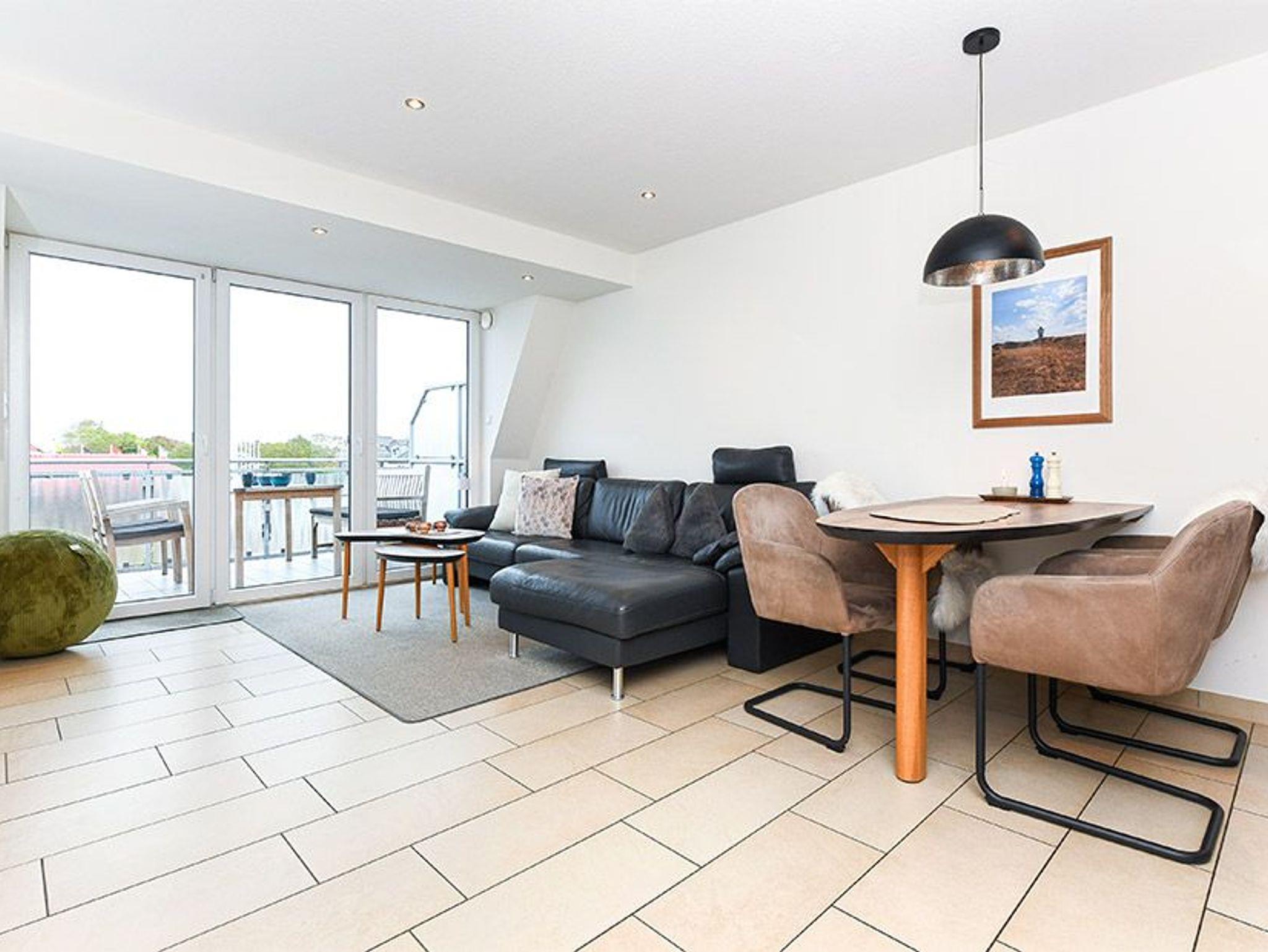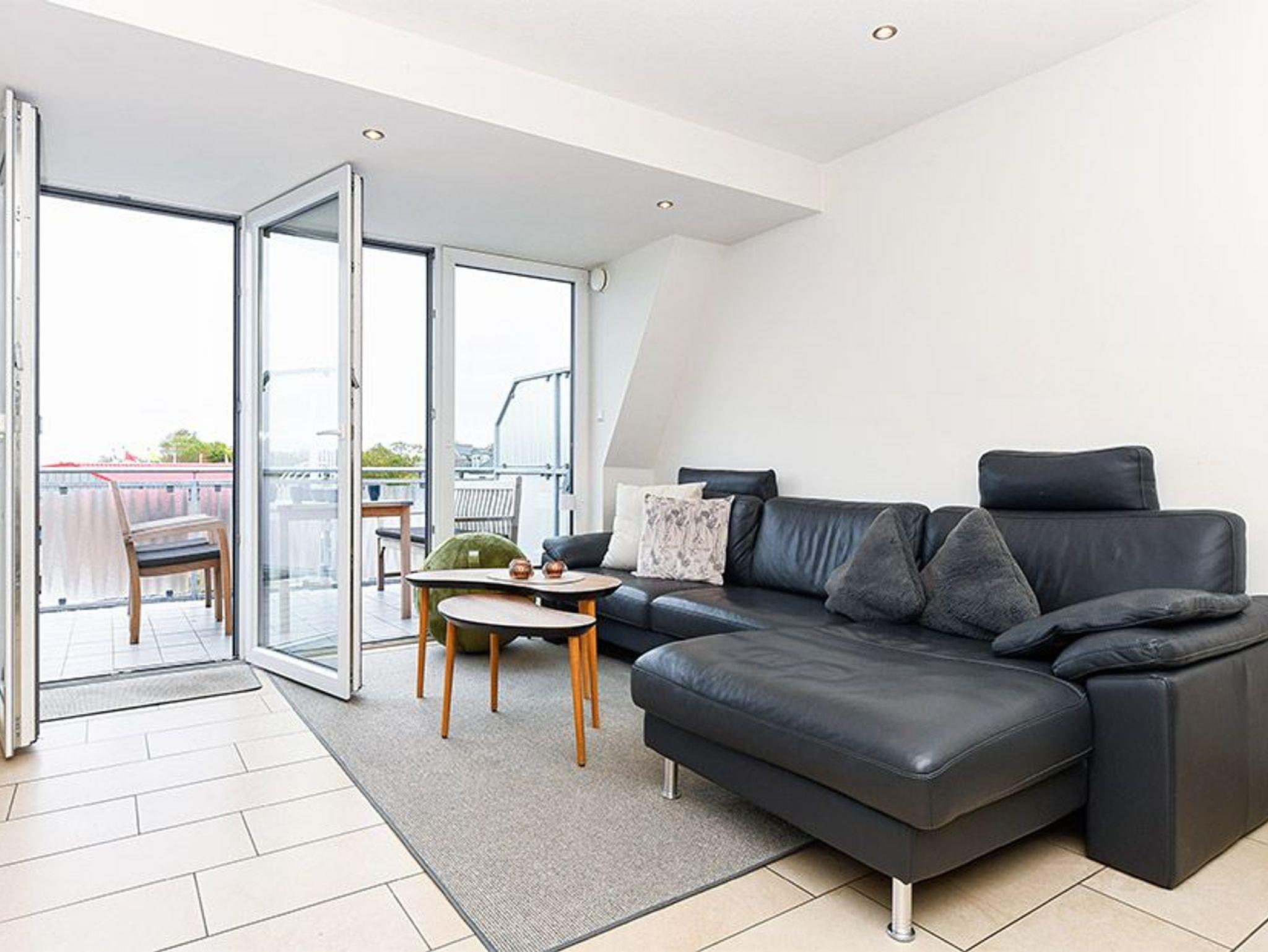 Die großzügige und ungefähr 63 Quadratmeter große „Meerblick-Ferienwohnung Black Pearl“ in der „Residenz am Hafen“ für eine bis vier Personen ist auf Top-Niveau eingerichtet und gemütlich-modern, sehr komfortabel und freundlich gestaltet sowie technisch hervorragend ausgerüstet.