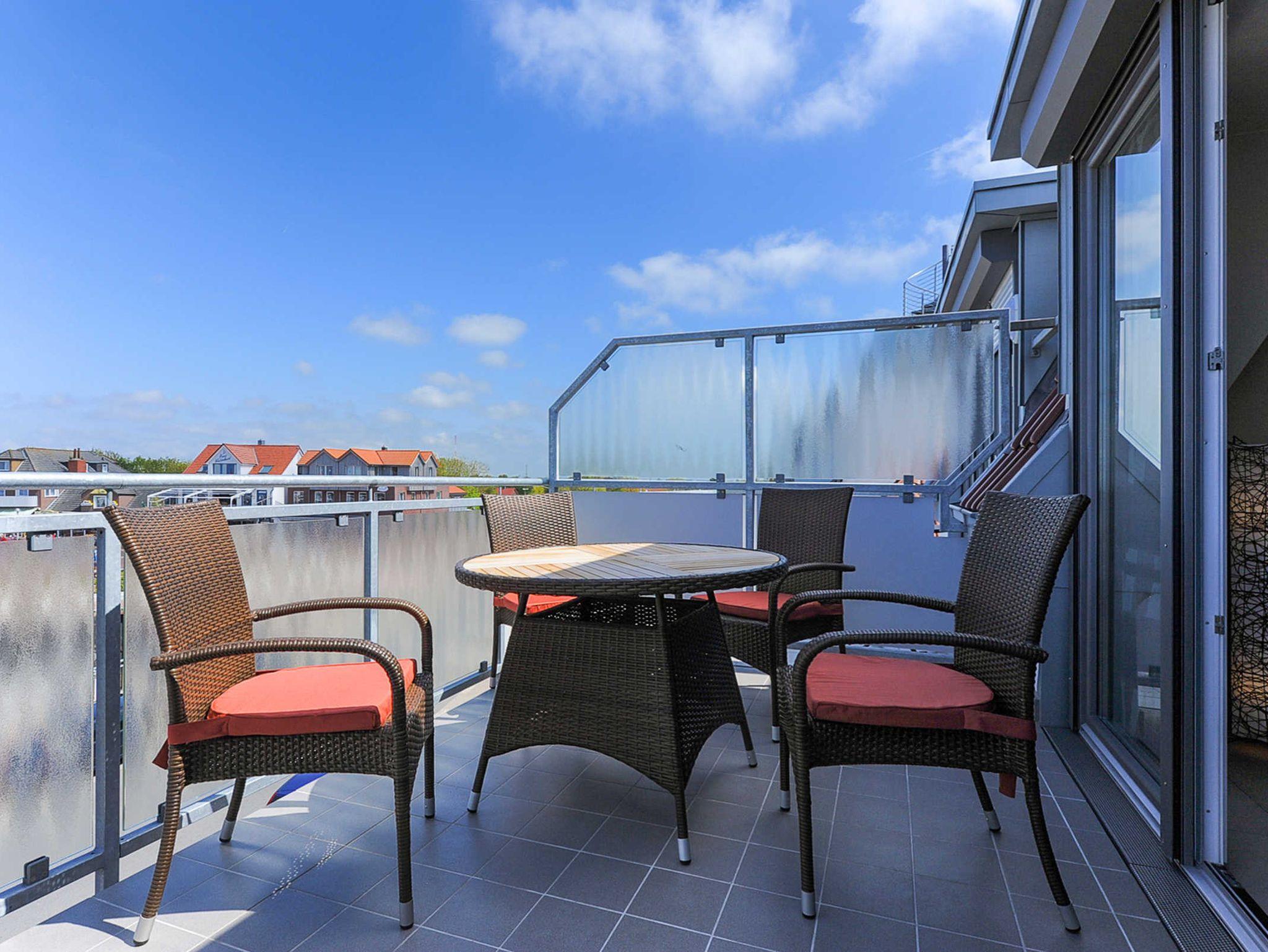 Vom Balkon aus haben Sie einen herrlichen Blick über den Deich hinweg auf den Bensersieler Hafen, auf die Nordsee und auf mehrere Ostfriesischen Inseln! Ihre Ferienwohnung ist von der Tiefgarage und allen anderen Eingängen des Hauses aus mit Fahrstühlen und völlig ohne Treppen erreichbar.