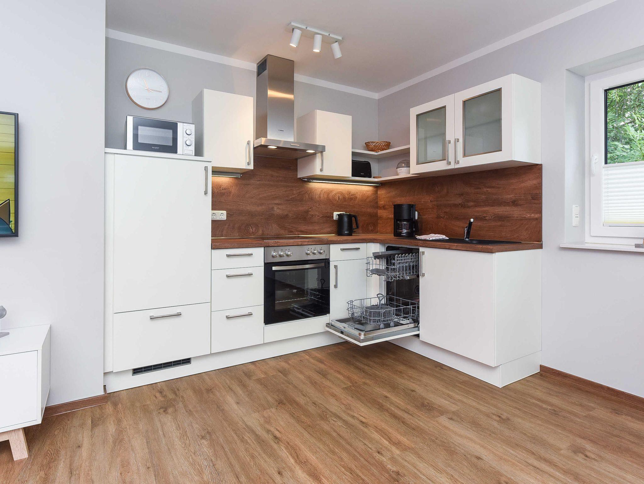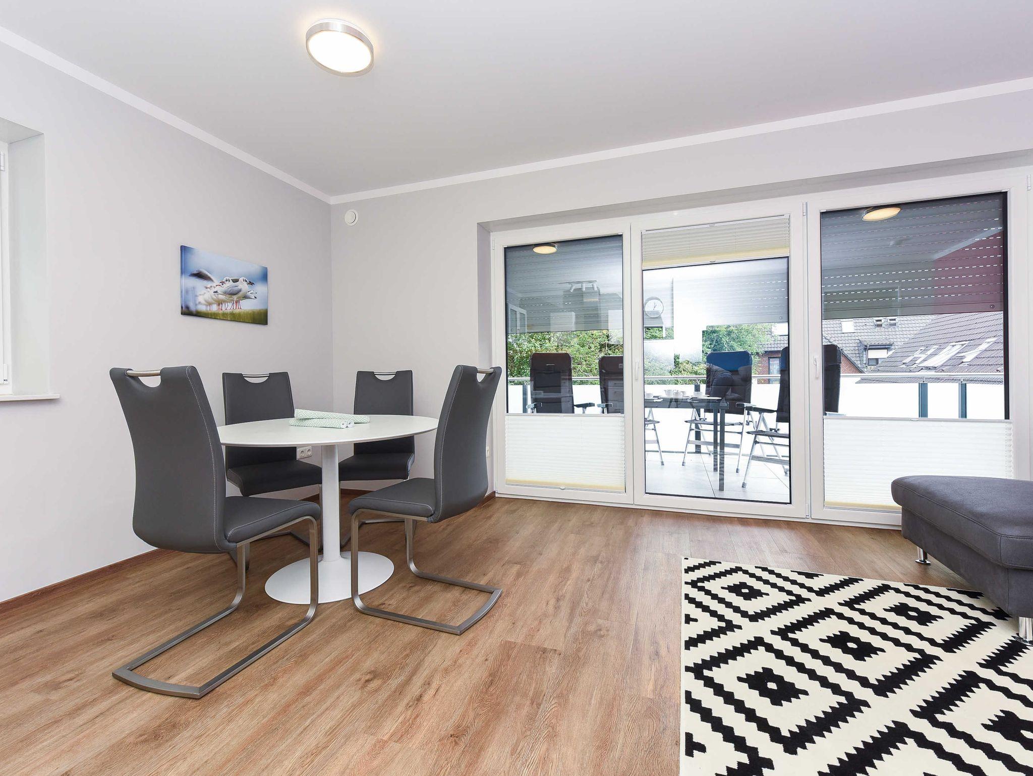Die Ferienwohnungen im „Haus Seeperle“ sind ungefähr 80 bis ungefähr 60 Quadratmeter groß und für bis zu vier Personen ausgelegt. Sie sind sehr freundlich, hell-gemütlich, modern und sehr komfortabel gestaltet sowie hervorragend ausgerüstet. So verfügen fünf der sechs Ferienwohnungen zum Beispiel über eine eigene möblierte Terrasse oder einen eigenen möblierten Balkon. In allen Wohnungen gibt es modernen Küchen, voll ausgestattet mit allem, was Sie im Urlaub benötigen werden und im Haus stehen Ihnen Waschmaschine und Wäschetrockner zur Verfügung.