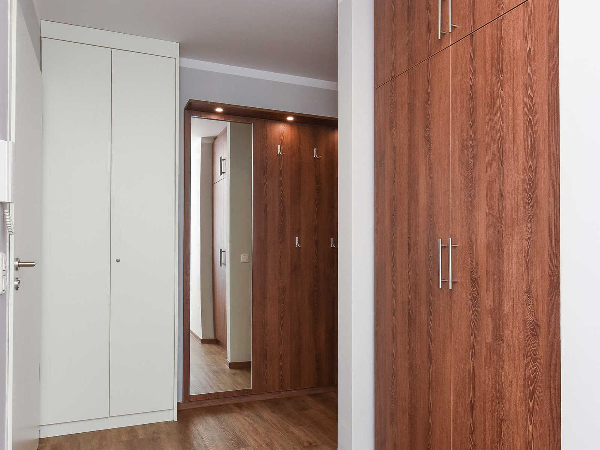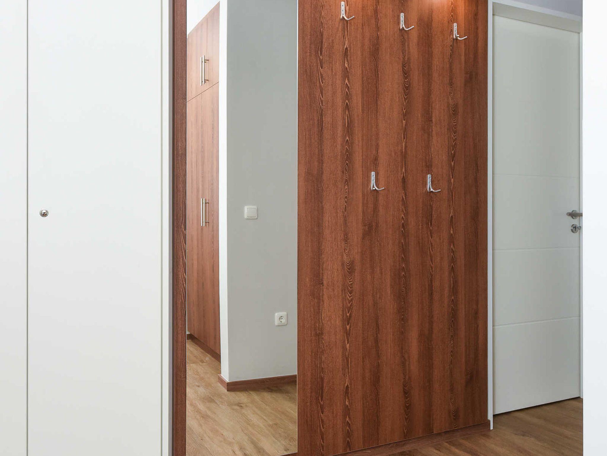 Größe ca. 80 Quadratmeter, Wohnraum mit integrierter Küche, Schlafzimmer, zweites separates Schlafzimmer/Kinderzimmer, Badezimmer mit Dusche, Waschtisch und WC, Obergeschoss, Balkon, behindertengeeignet, optimal für 2 bis 4 Personen.
