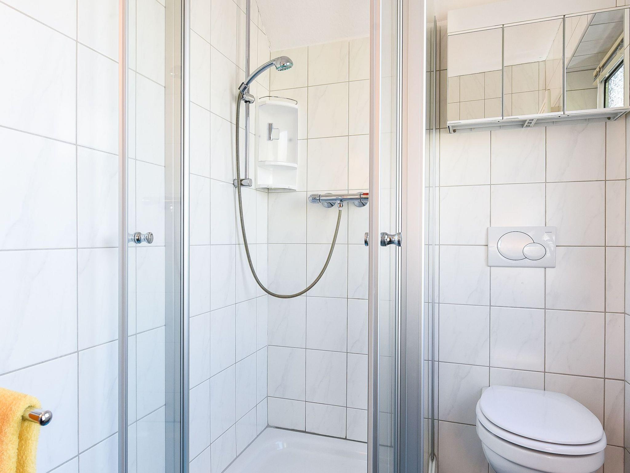 Größe ca. 45 Quadratmeter, Wohnraum mit integrierter Küche, Schlafzimmer, Kinderzimmer, Badezimmer mit Dusche, Waschtisch und WC, Obergeschoss, Terrasse (überdacht), Terrasse (Sitzgruppe im Garten), Parkplatz (reserviert), Koffer-/Abstellraum, optimal für 2 bis 4 Personen.