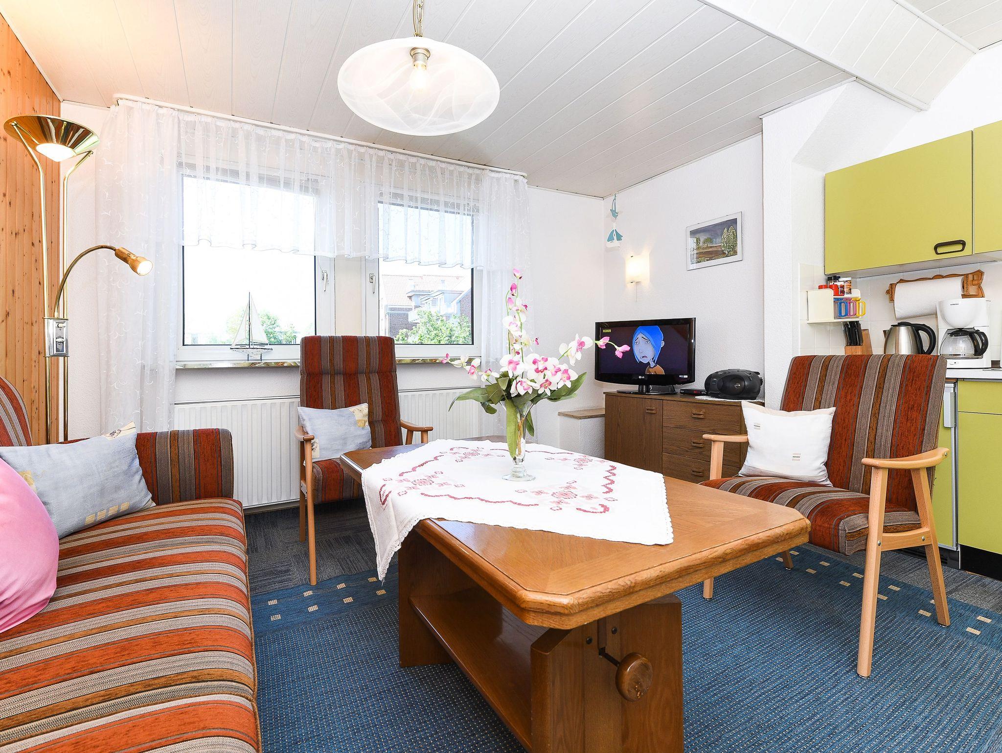 Die Ferienwohnungen, Backbord und Steuerbord genannt, sind komfortabel eingerichtet und ausgestattet sowie gemütlich gestaltet. Die Wohnungen sind jeweils 45 qm groß und am besten für bis zu 4 Personen zuzüglich eines Kleinkindes geeignet. Es gibt einen Wohnraum mit integrierter und voll ausgestatteter Küchenzeile (Kühlschrank mit Gefrierfach, Mikrowelle, 4-Platten-Herd etc.), ein Schlafzimmer (mit Wickelkommode in Wohnung Backbord), ein kleines Kinderzimmer sowie ein Badezimmer mit Dusche, Waschtisch und WC.