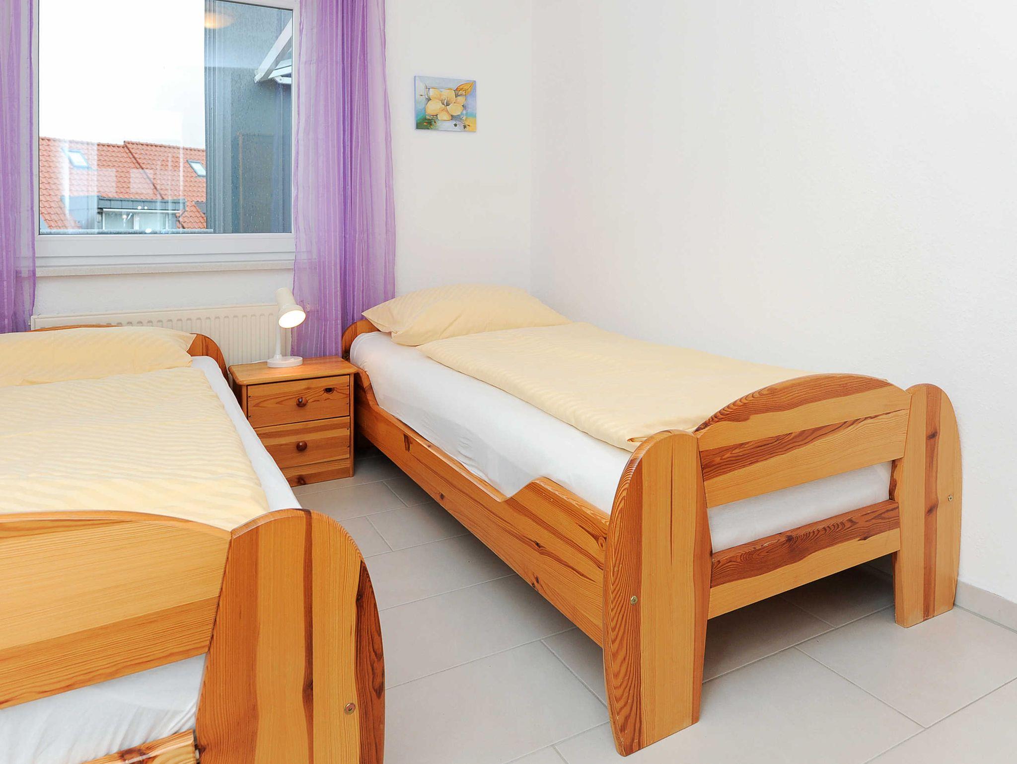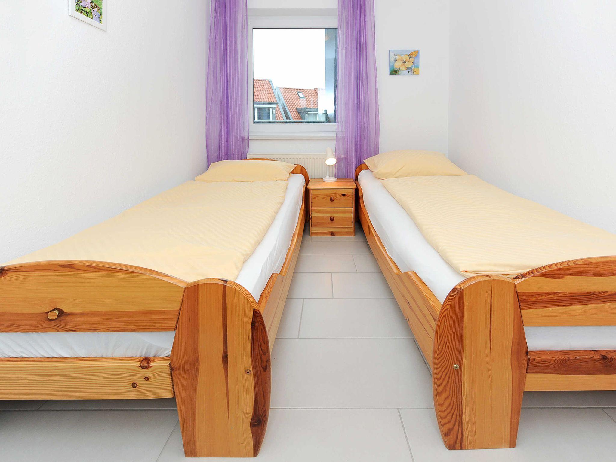 In die Wohnung „Pastoor“ führt eine Treppe zum dritten Schlafzimmer. Das erste und das zweite Schlafzimmer sind ohne Treppe zu erreichen. Im ersten Schlafzimmer befindet sich ein 140 cm breites Bett.