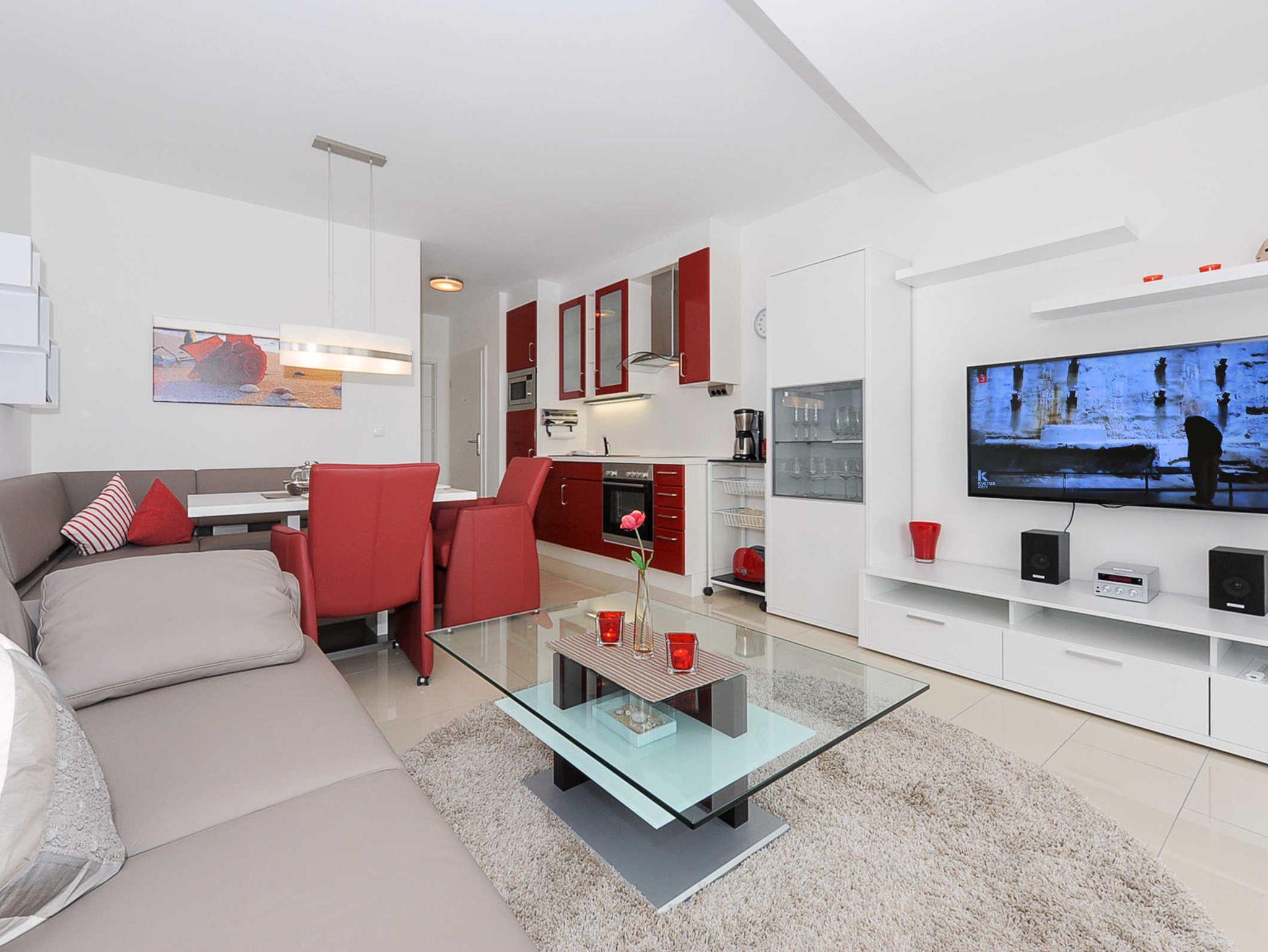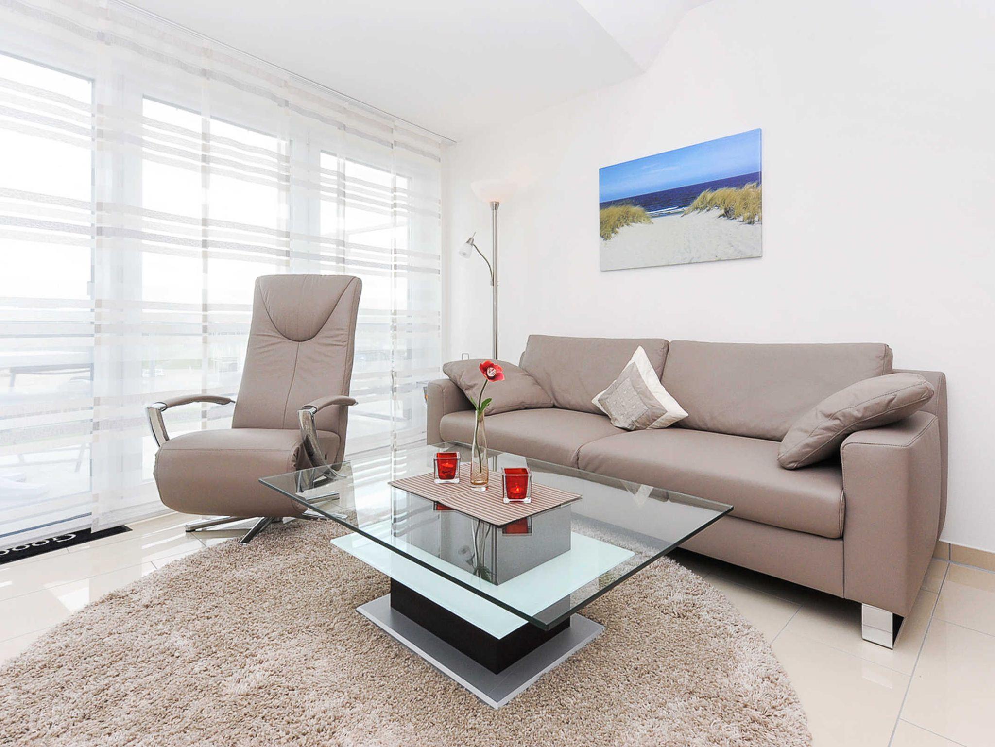 Die großzügigen und ungefähr 45 bis 64 Quadratmeter großen Ferienwohnungen in der „Residenz Hafenidyll“ für eine bis zwei Personen oder für eine bis vier Personen sind auf sehr hohem Standard, gemütlich-modern, sehr komfortabel und freundlich eingerichtet und gestaltet sowie technisch auf hervorragendem Stand ausgerüstet.
