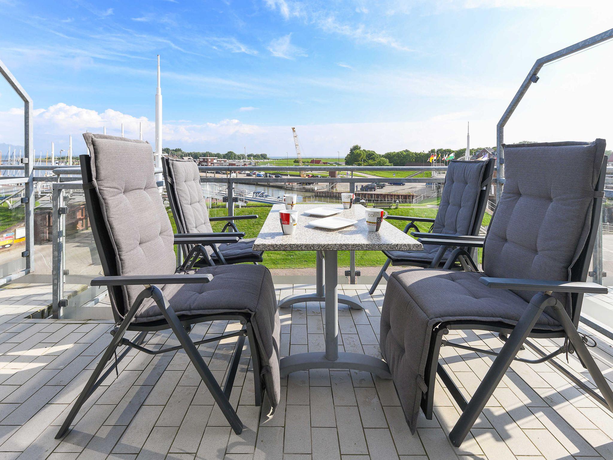 Vom Balkon aus haben Sie einen herrlichen Blick auf die Nordsee, Inseln, Strand und Hafen.