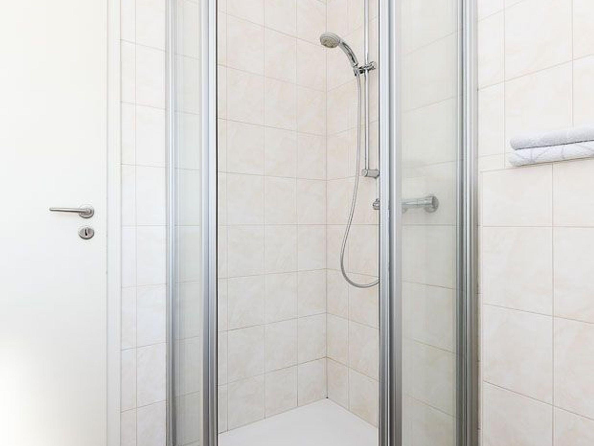 Badezimmer mit Dusche, Waschtisch und WC