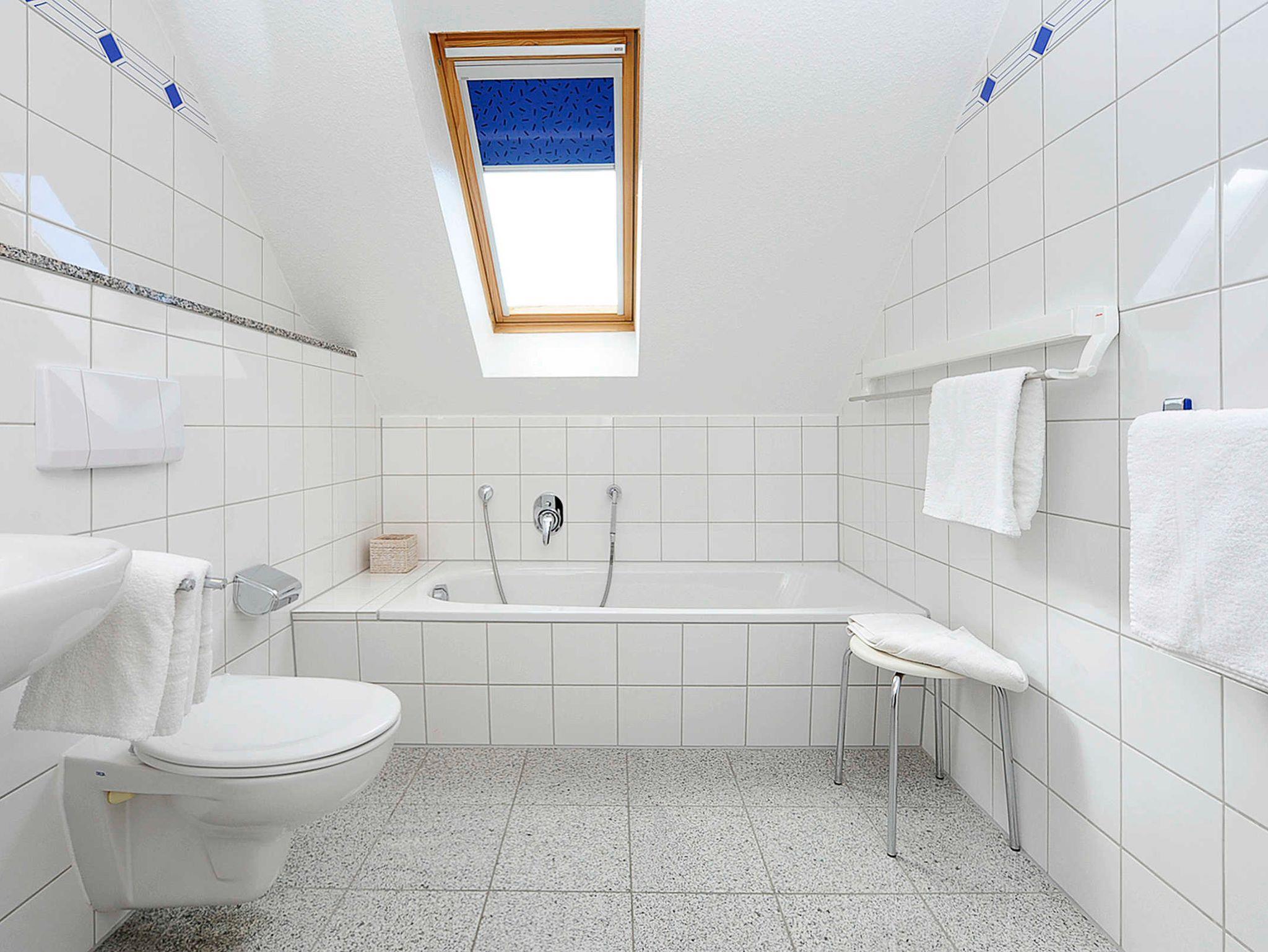 Badezimmer mit Badewanne, Dusche und WC
