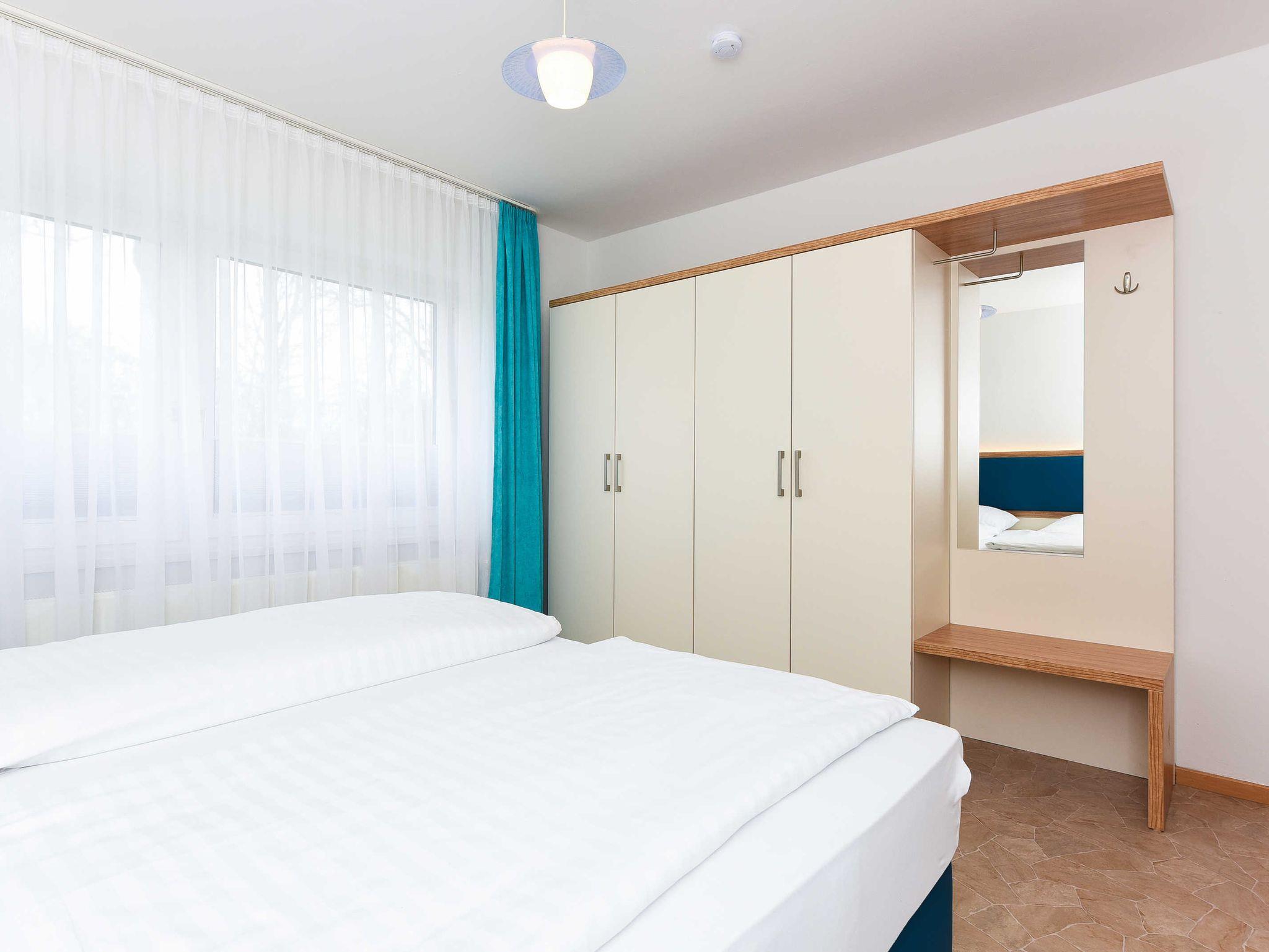 Größe ca. 63 Quadratmeter, Wohnzimmer, Küche, Schlafzimmer, zweites separates Schlafzimmer/Kinderzimmer, Badezimmer mit Dusche, Waschtisch und WC, Erdgeschoss, Terrasse, Internetzugang über WLAN möglich, optimal für 2 bis 3 Personen und zusätzlich ein Kleinkind