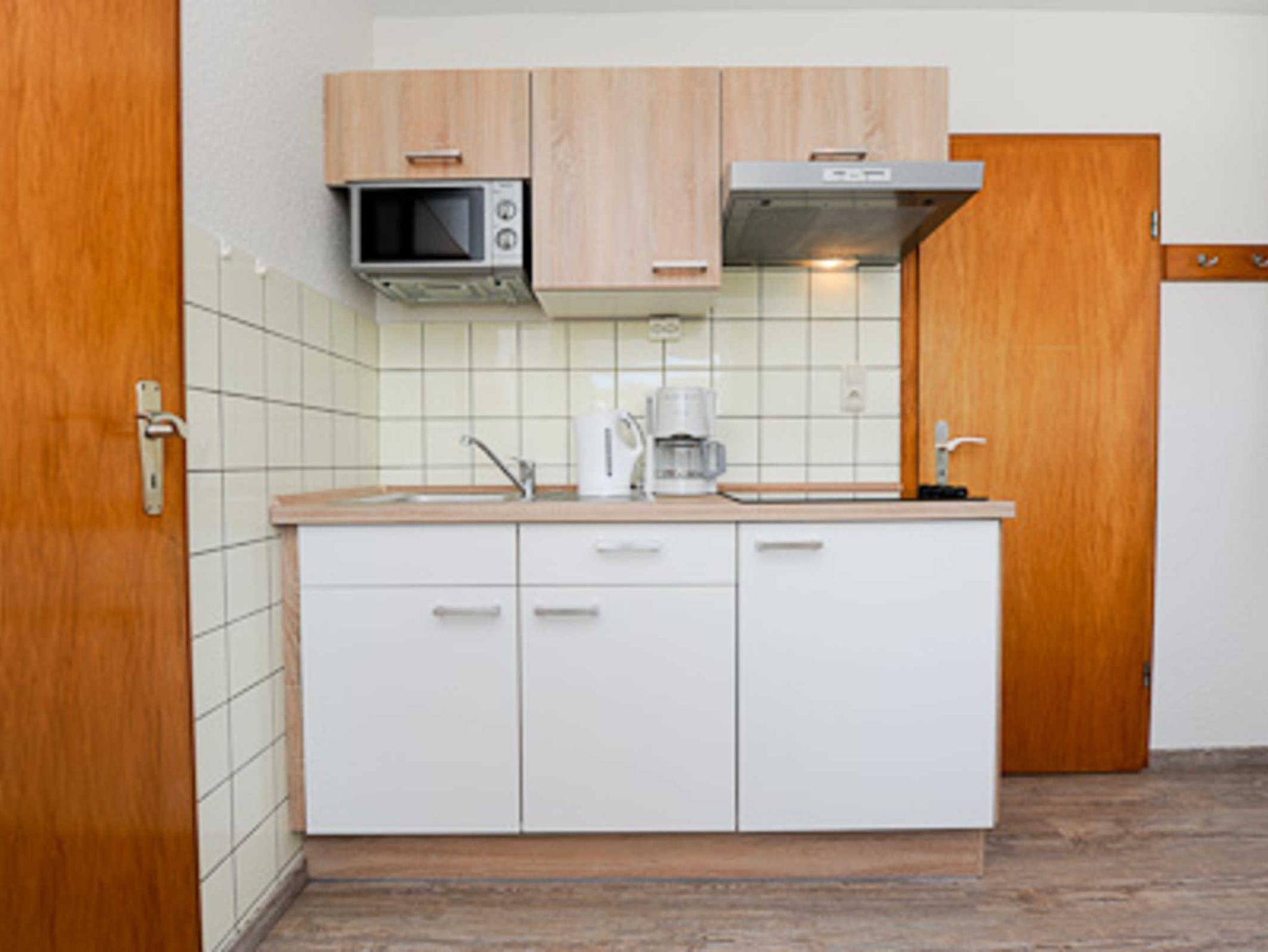 Größe ca. 29 Quadratmeter, Wohnraum mit integrierter Küche, Schlafzimmer/Kinderzimmer, Badezimmer mit Dusche, Waschtisch und WC, Erdgeschoss, Terrasse, optimal für 2 bis 3 Personen.