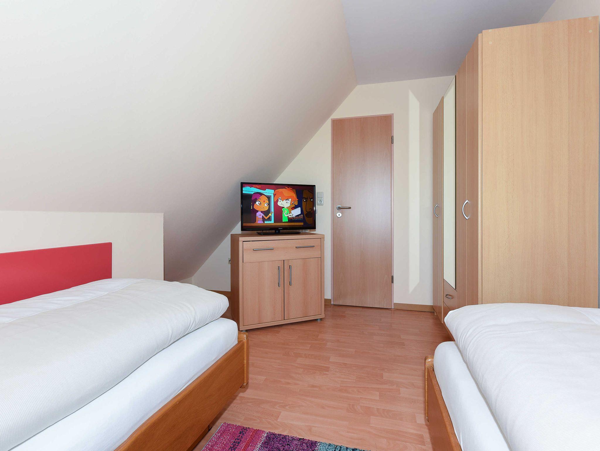 Größe ca. 70 Quadratmeter, Wohnzimmer, Küche, Schlafzimmer, zweites separates Schlafzimmer/Kinderzimmer, Badezimmer mit Dusche, Waschtisch und WC, Obergeschoss, Balkon, optimal für 1 bis 4 Personen und zusätzlich ein Kleinkind.