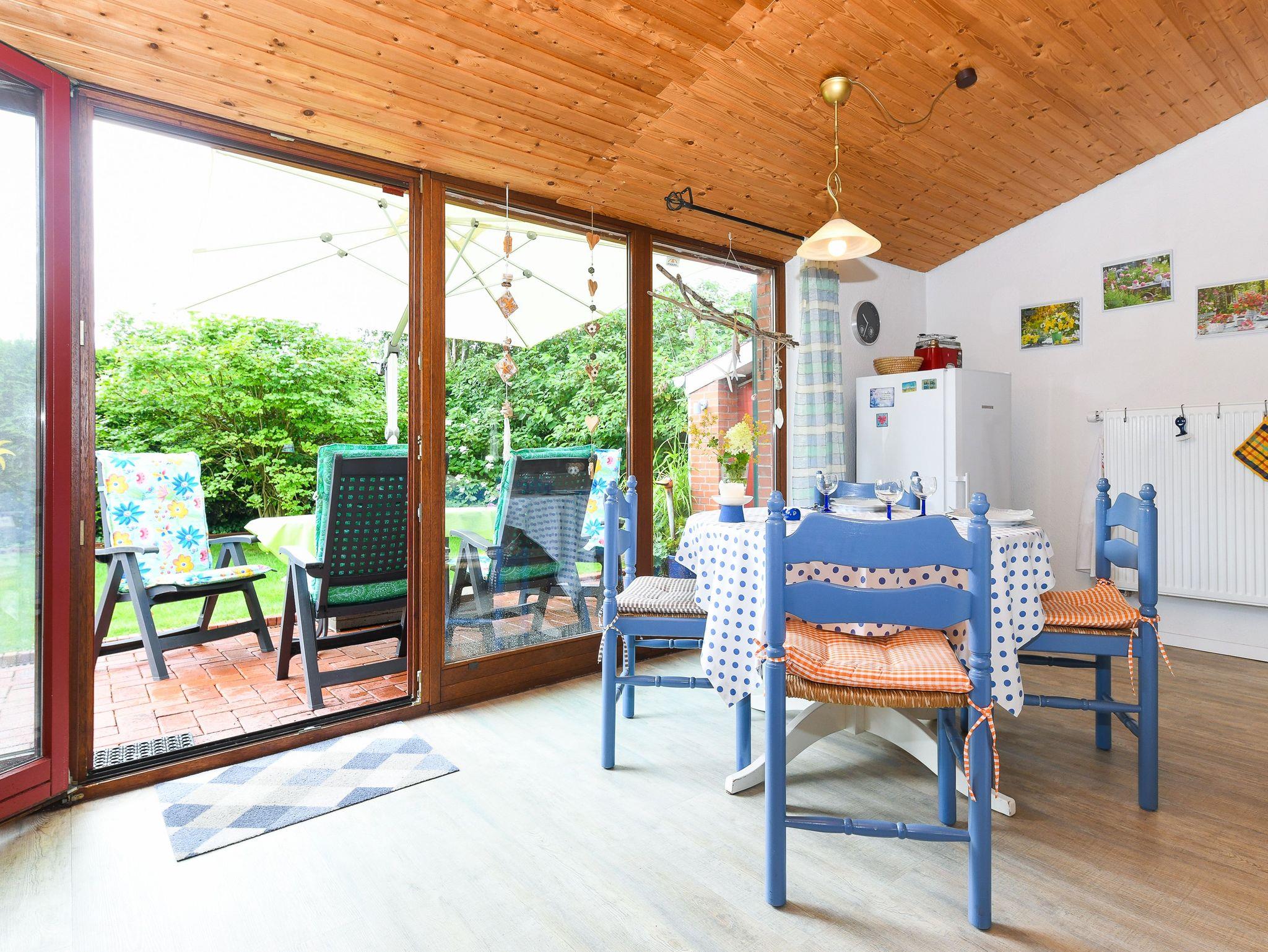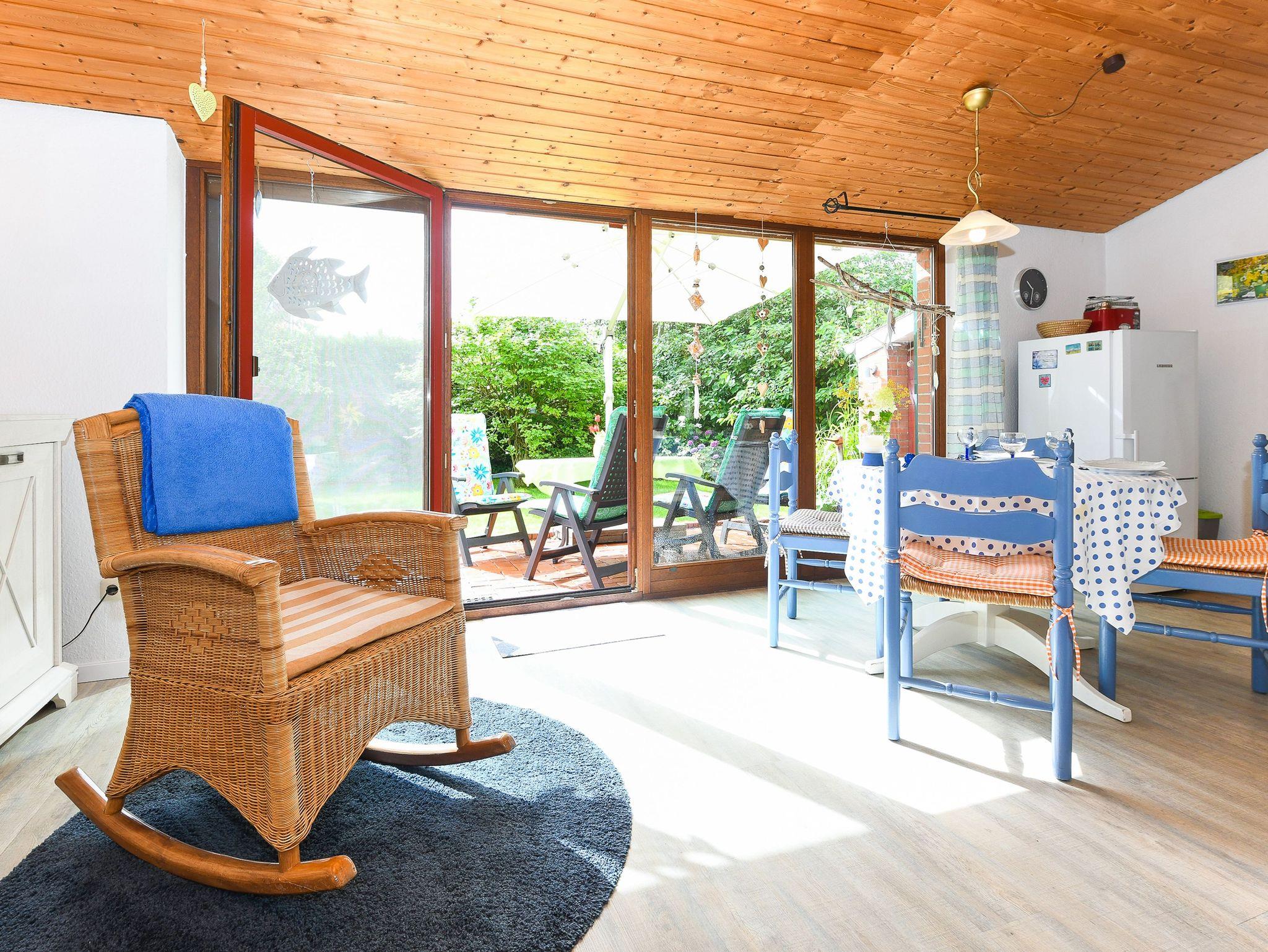 Wir nennen unser Ferienhaus „Nordseeschnecke“ liebevoll auch unser „Schneckenhäuschen“. Es ist hell und freundlich-gemütlich gestaltet, komfortabel eingerichtet sowie sehr gut ausgestattet. Es verfügt zum Beispiel über eine große Terrasse mit Sonnenschutz-Markise sowie einen schönen Garten. Im großen Wohnraum gibt es eine moderne Einbauküche, z. B. mit einer Geschirrspülmaschine.