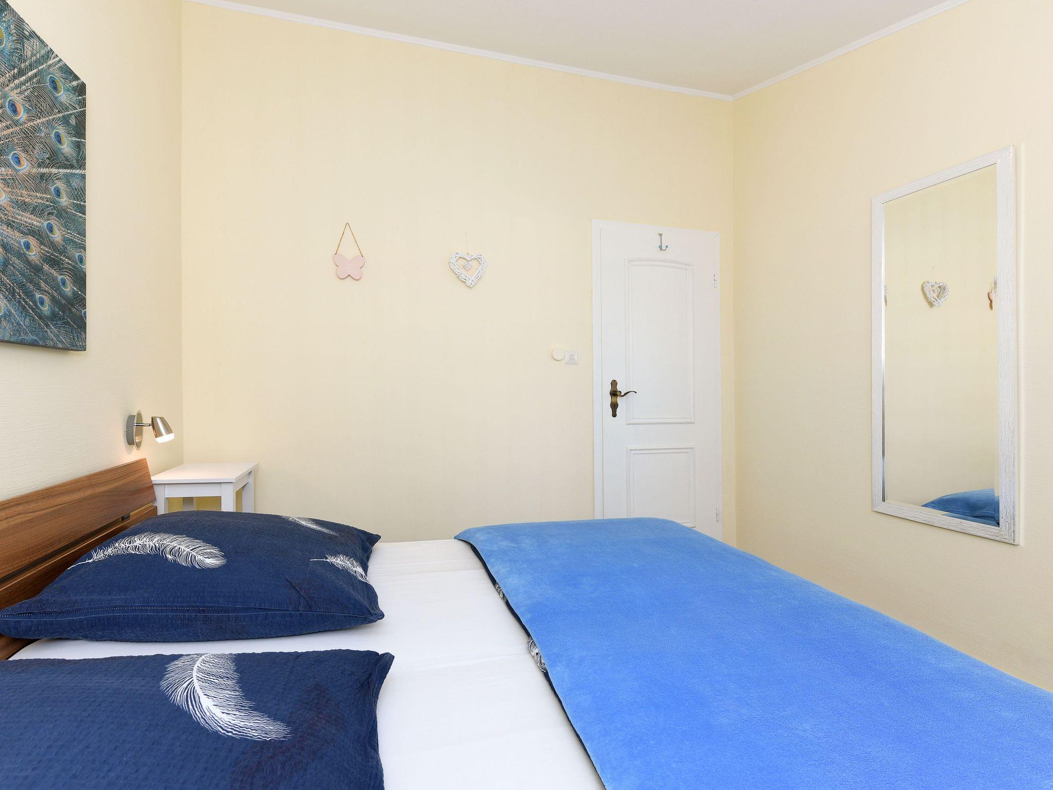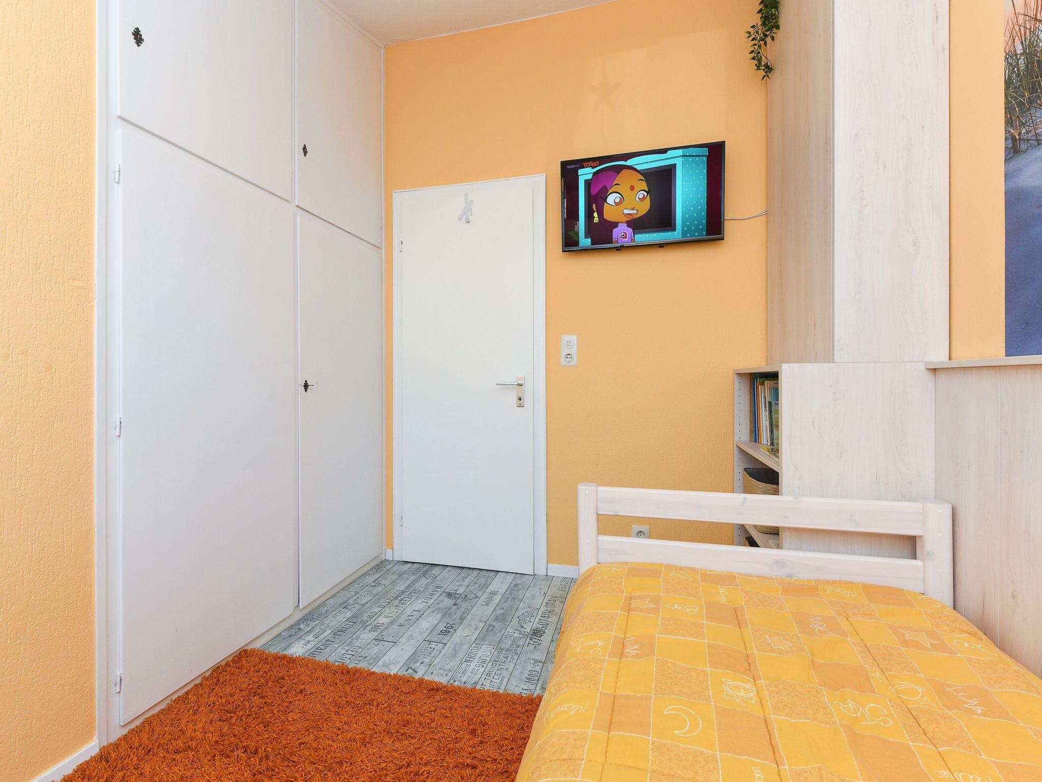 Wohnfläche ca. 80 Quadratmeter, Wohnraum mit integrierter Küche, Schlafzimmer, zweites separates, Schlafzimmer/Kinderzimmer mit Fernseher, Badezimmer mit Dusche, Waschtisch und WC, Erdgeschoss, Terrasse, Garage, Koffer-/Abstellraum, optimal für 2 bis 4 Personen.