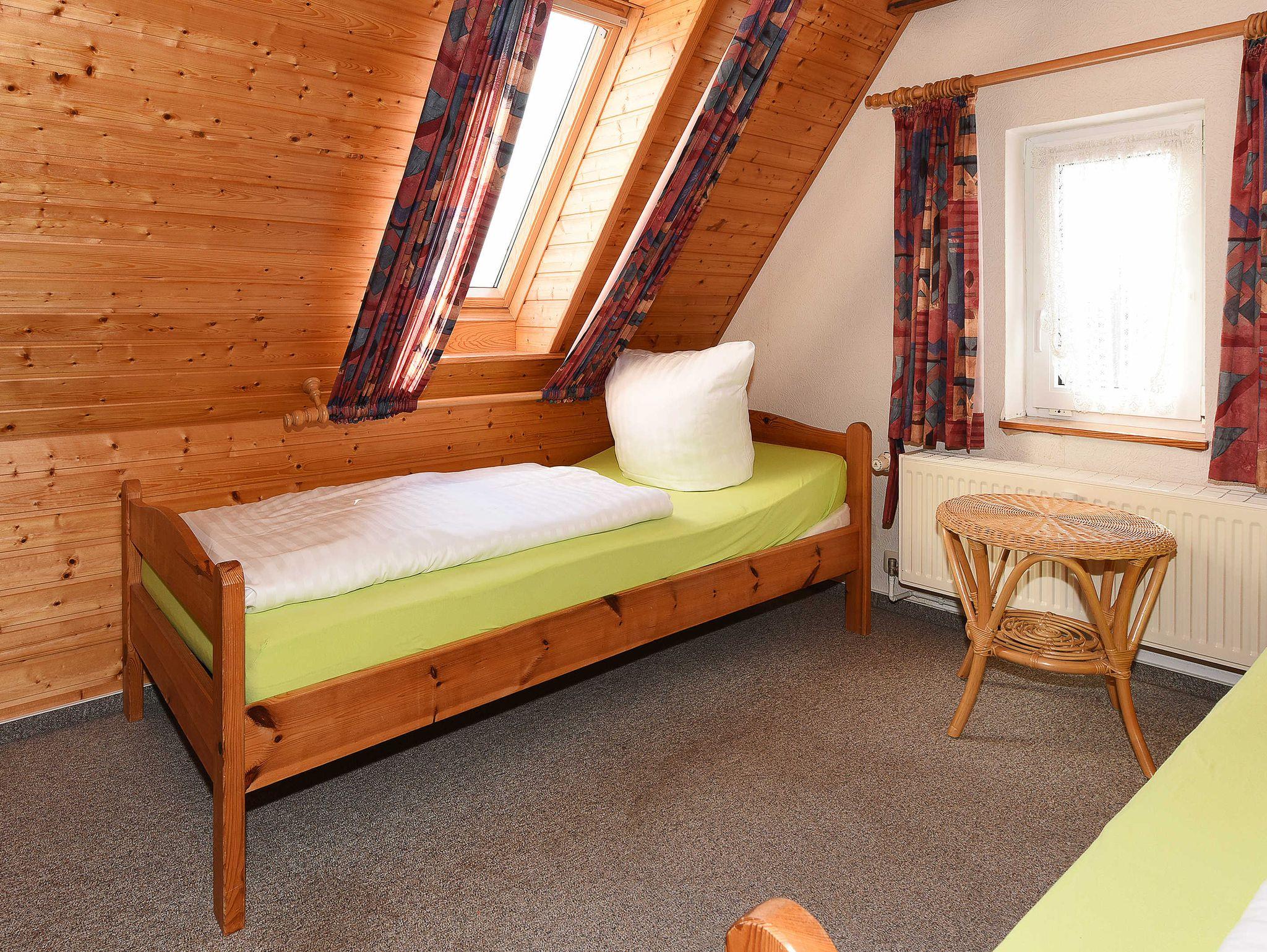 Größe ca. 48 Quadratmeter, Wohnraum mit integrierter Küche, Schlafzimmer, zweites separates, Schlafzimmer/Kinderzimmer, Badezimmer mit Dusche, Waschtisch und WC, Obergeschoss, Terrasse (Sitzgruppe im Garten), optimal für 2 bis 4 Personen und zusätzlich ein Kleinkind.