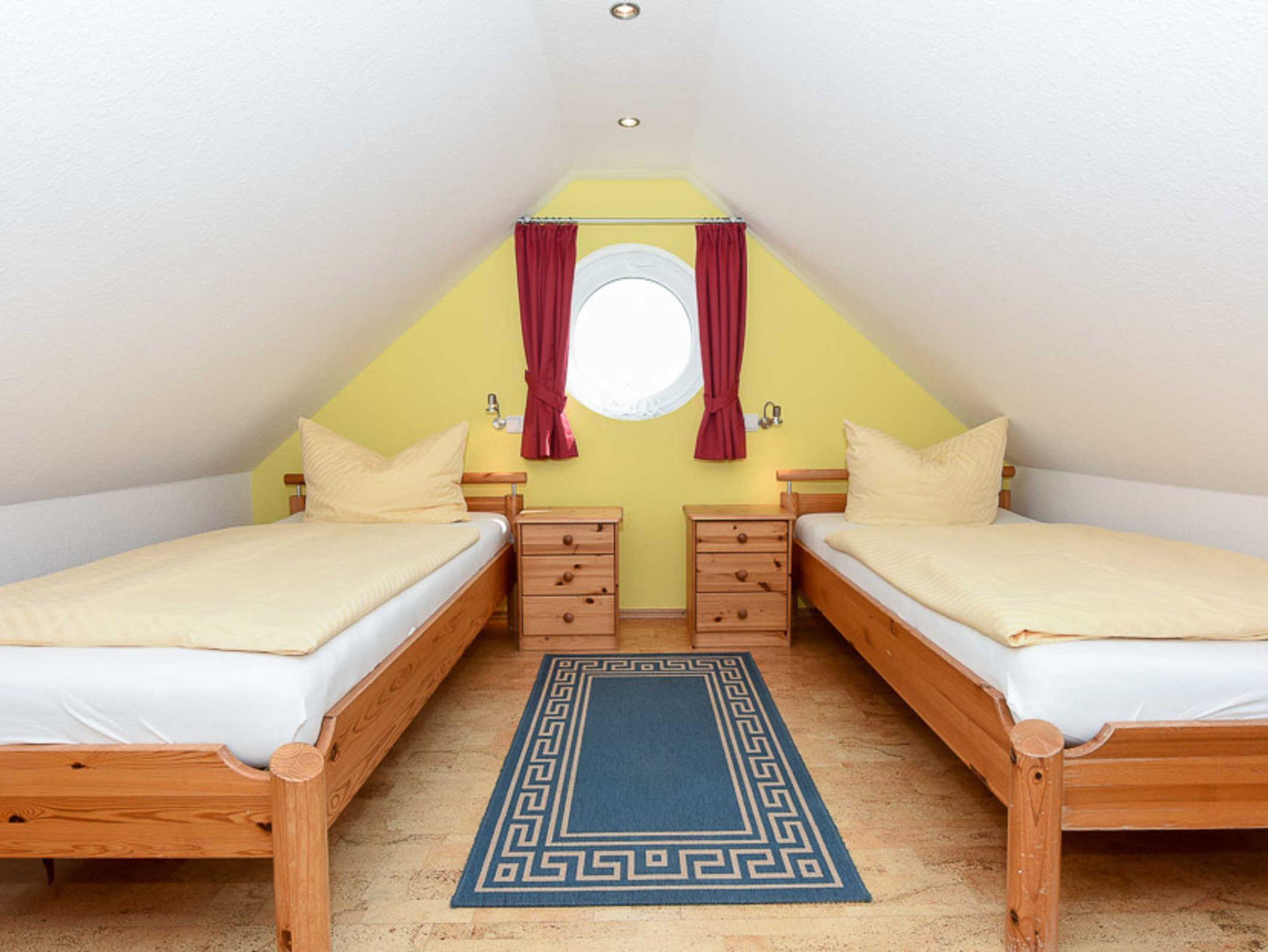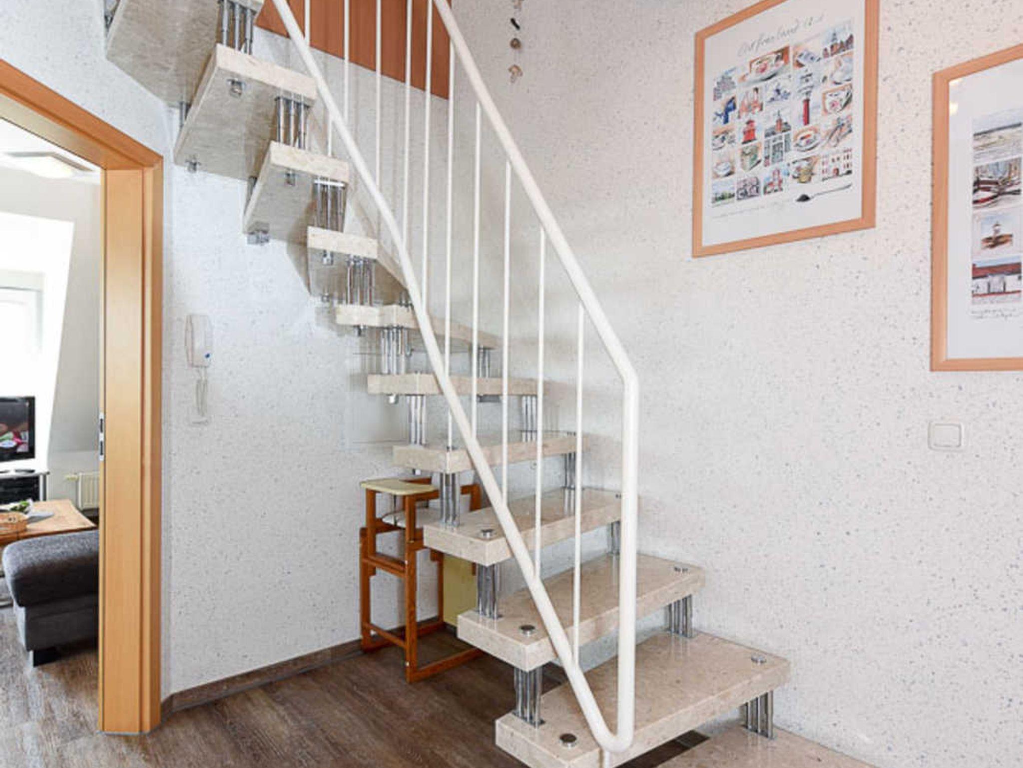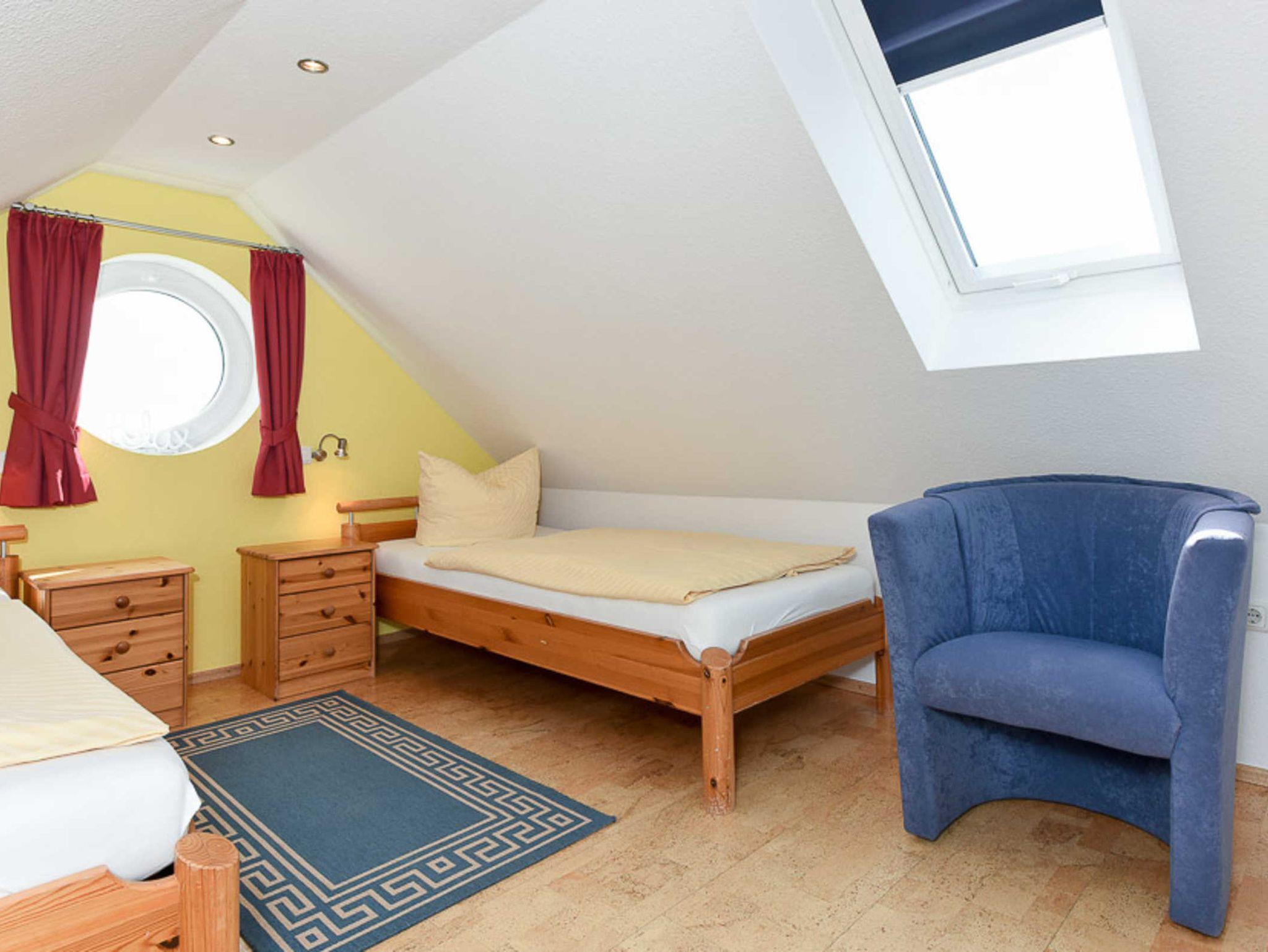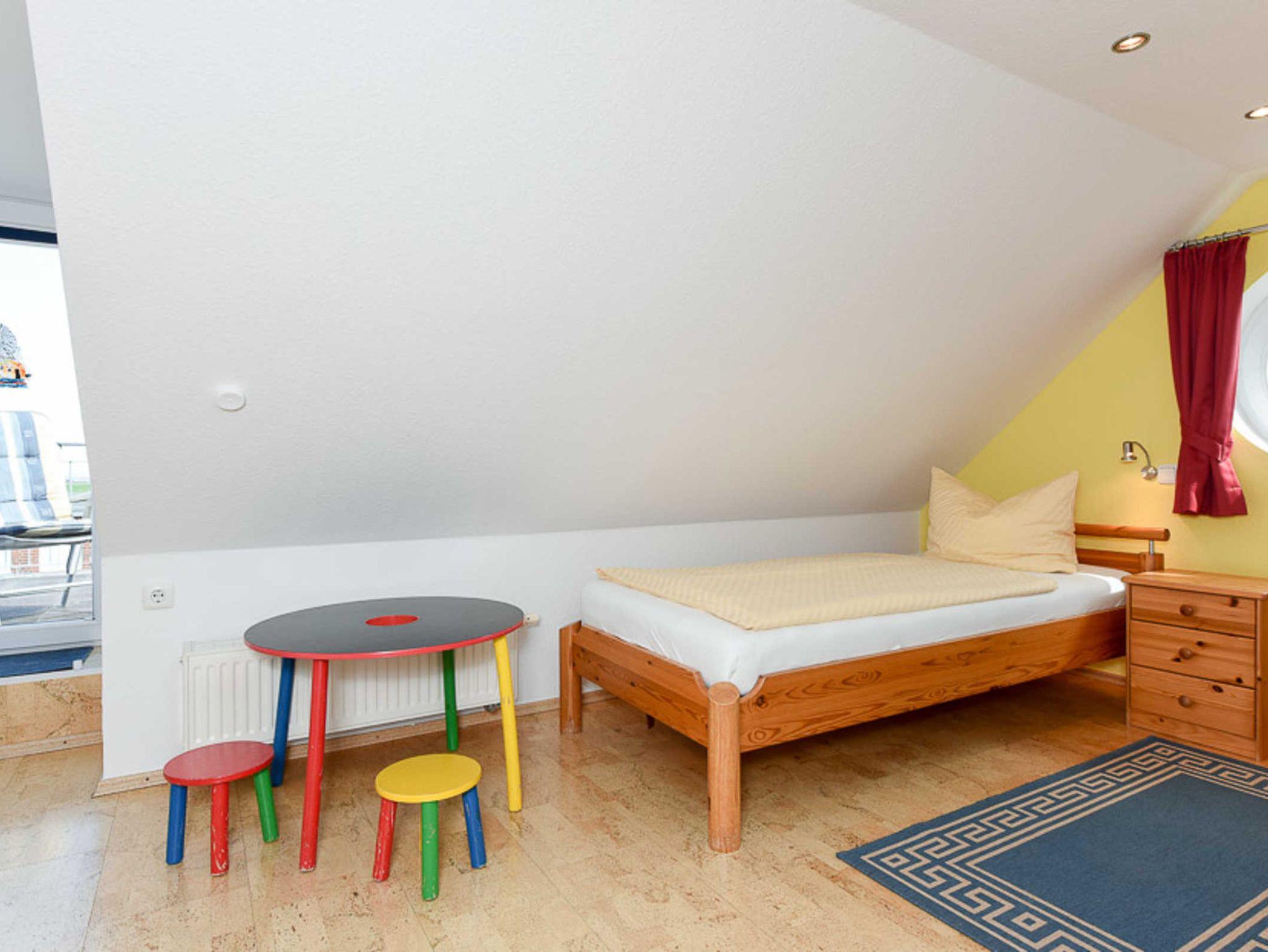 Das erste Schlafzimmer und der Balkon sind ohne Treppe erreichbar. Vom Balkon aus schauen Sie in Richtung Festland. Das zweite Schlafzimmer und die Dachterrasse sind über eine Treppe zu erreichen. Von der Dachterrasse aus haben Sie einen herrlichen Blick auf die Nordsee, den Hafen und die ostfriesischen Inseln.