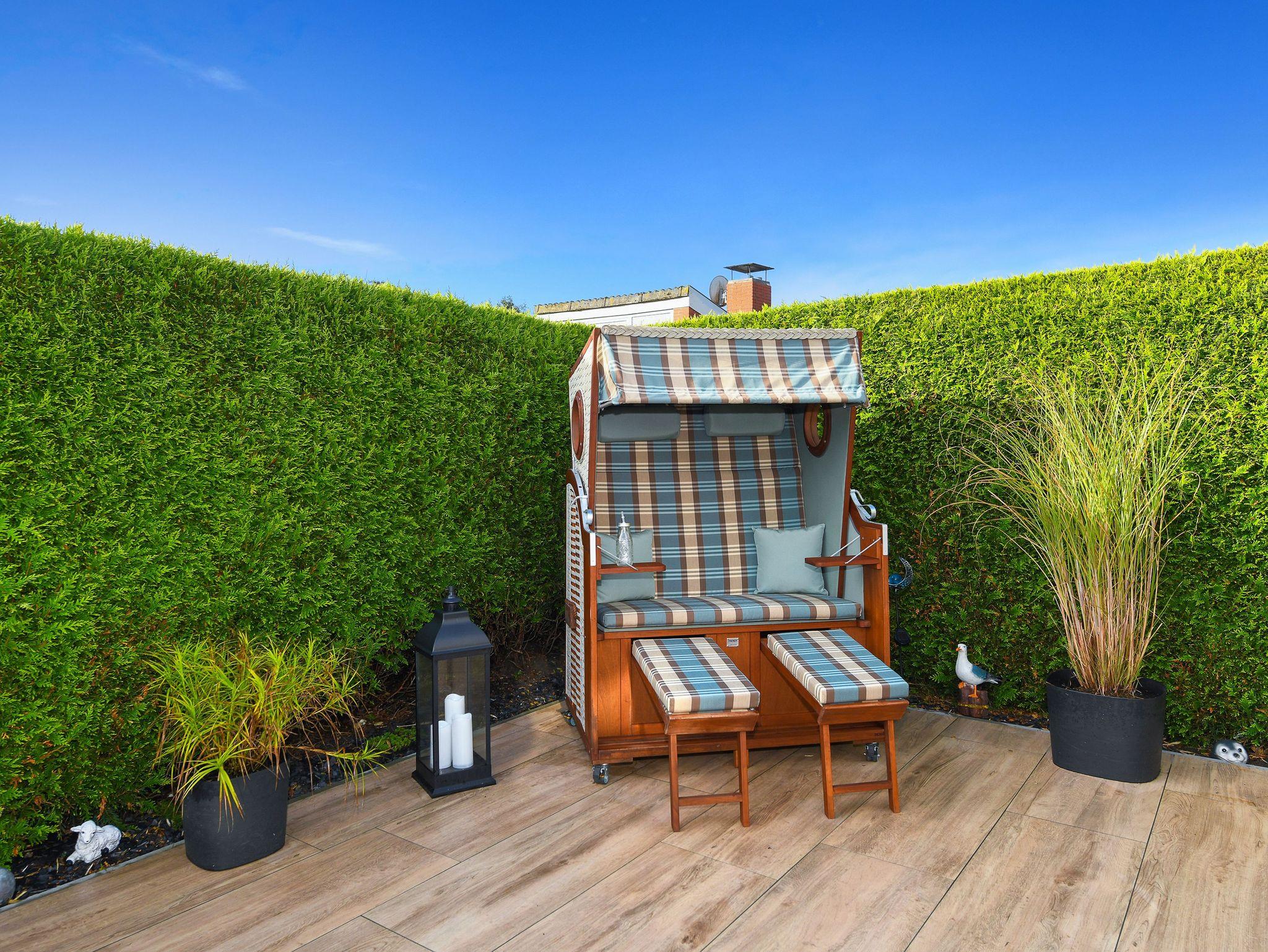 Das Ferienhaus Kleine Möwe ist gemütlich-modern und freundlich gestaltet, sehr komfortabel eingerichtet sowie hervorragend ausgestattet. Es gibt zum Beispiel mit eine richtig tolle moderne Küche, eine sehr schöne möblierte Terrasse mit einer ausfahrbaren Marquise sowie eine Loggia (überdachter Balkon) am Schlafzimmer.