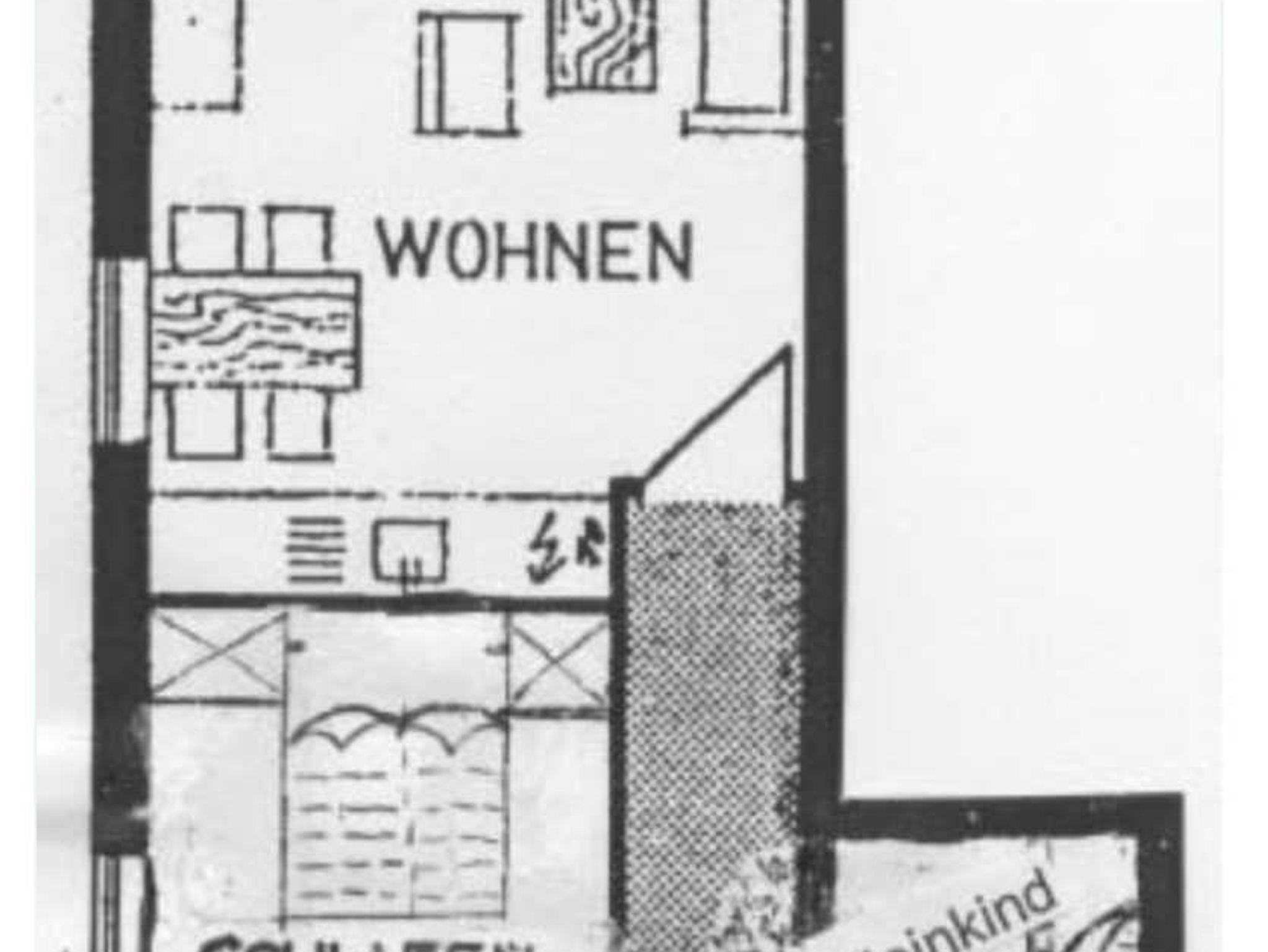und einem Etagenbett 0,90m x 2,00m, einem Wohnzimmer mit Küchenzeile,
