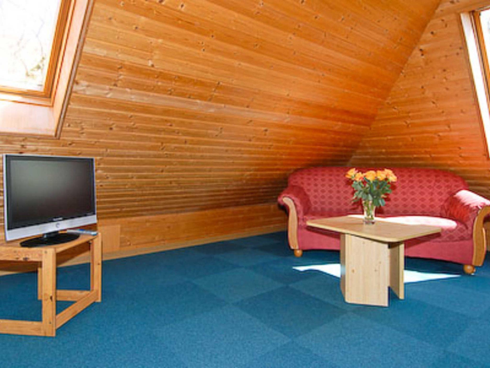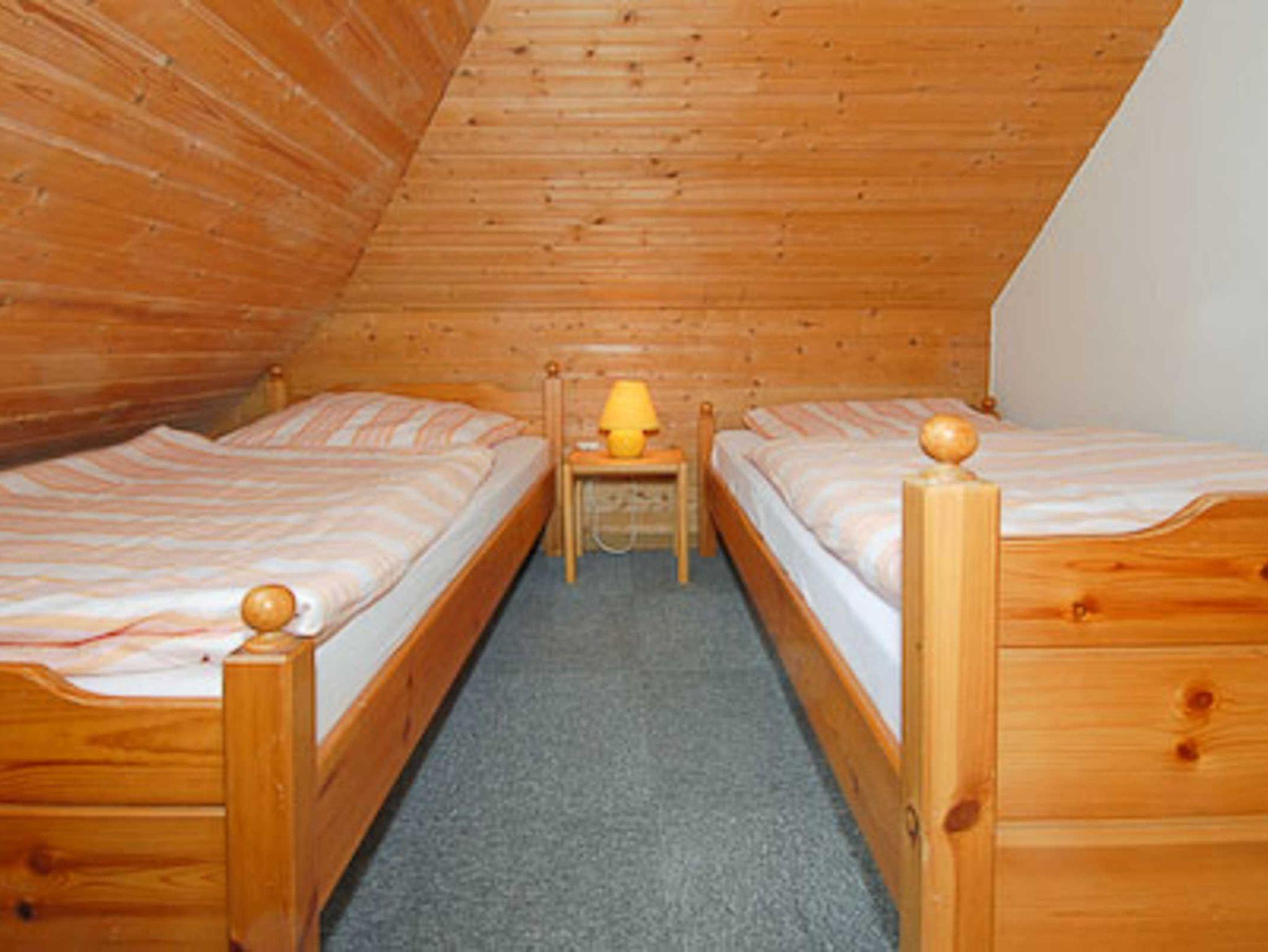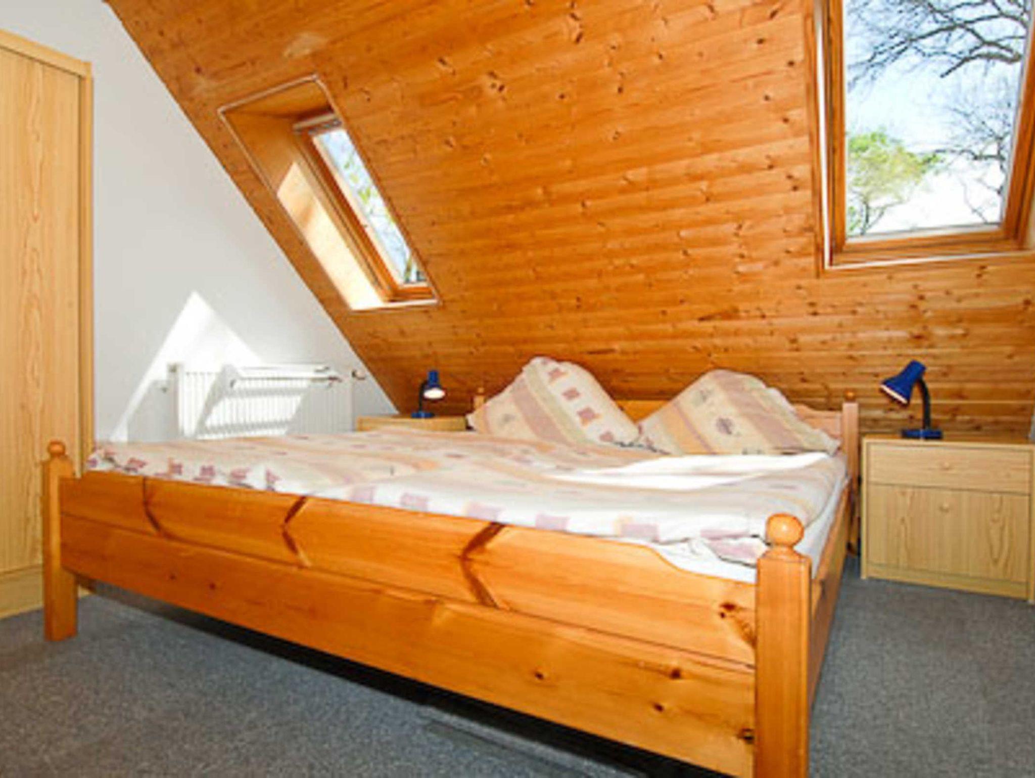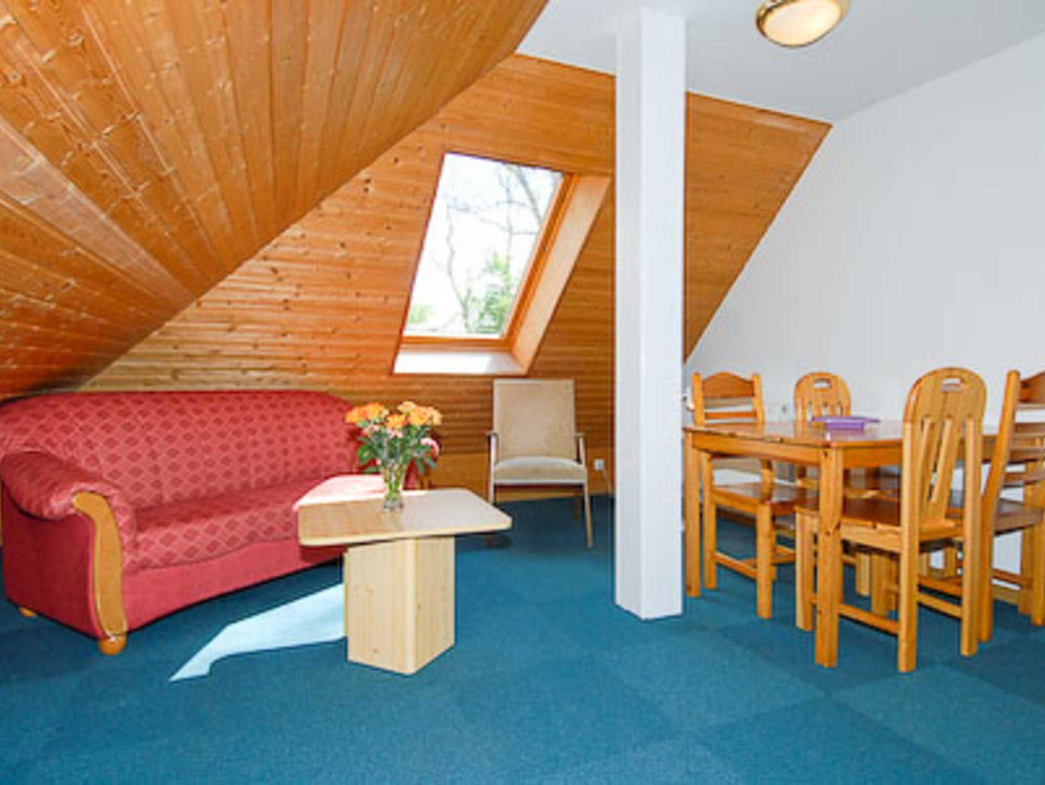 Wohnzimmer, Küche, Schlafzimmer, zweites separates Schlafzimmer/Kinderzimmer, Badezimmer mit Dusche, Waschtisch und WC, Obergeschoss, optimal für 2 bis 4 Personen.