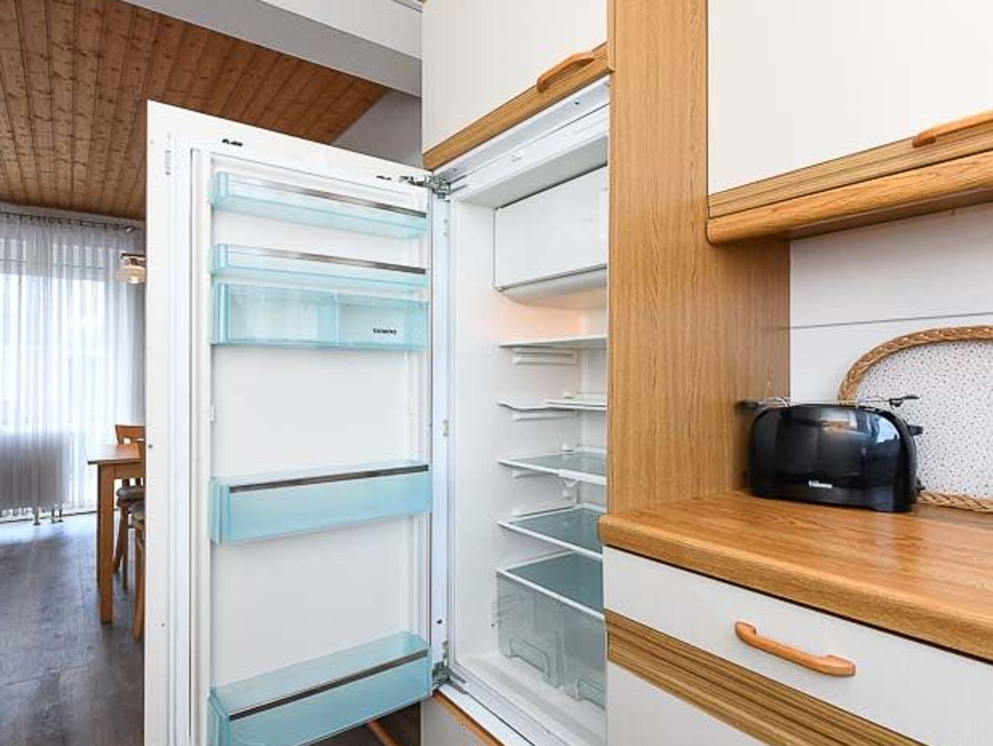 Wohnzimmer mit räumlich abgeteiltem Küchenbereich