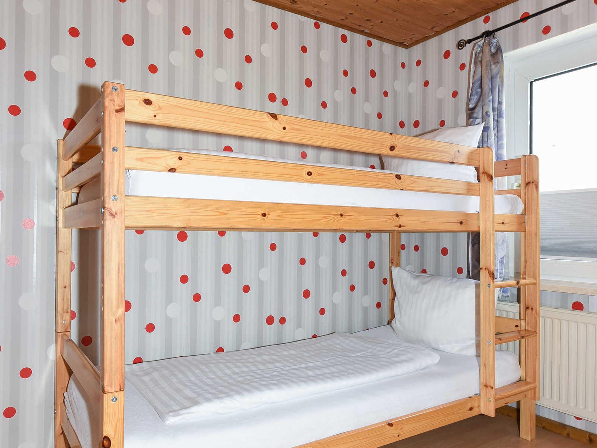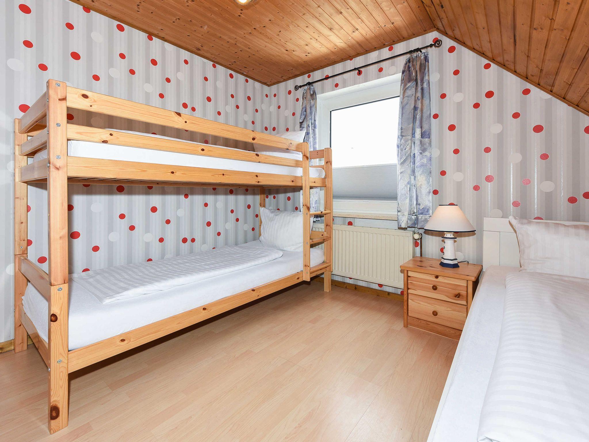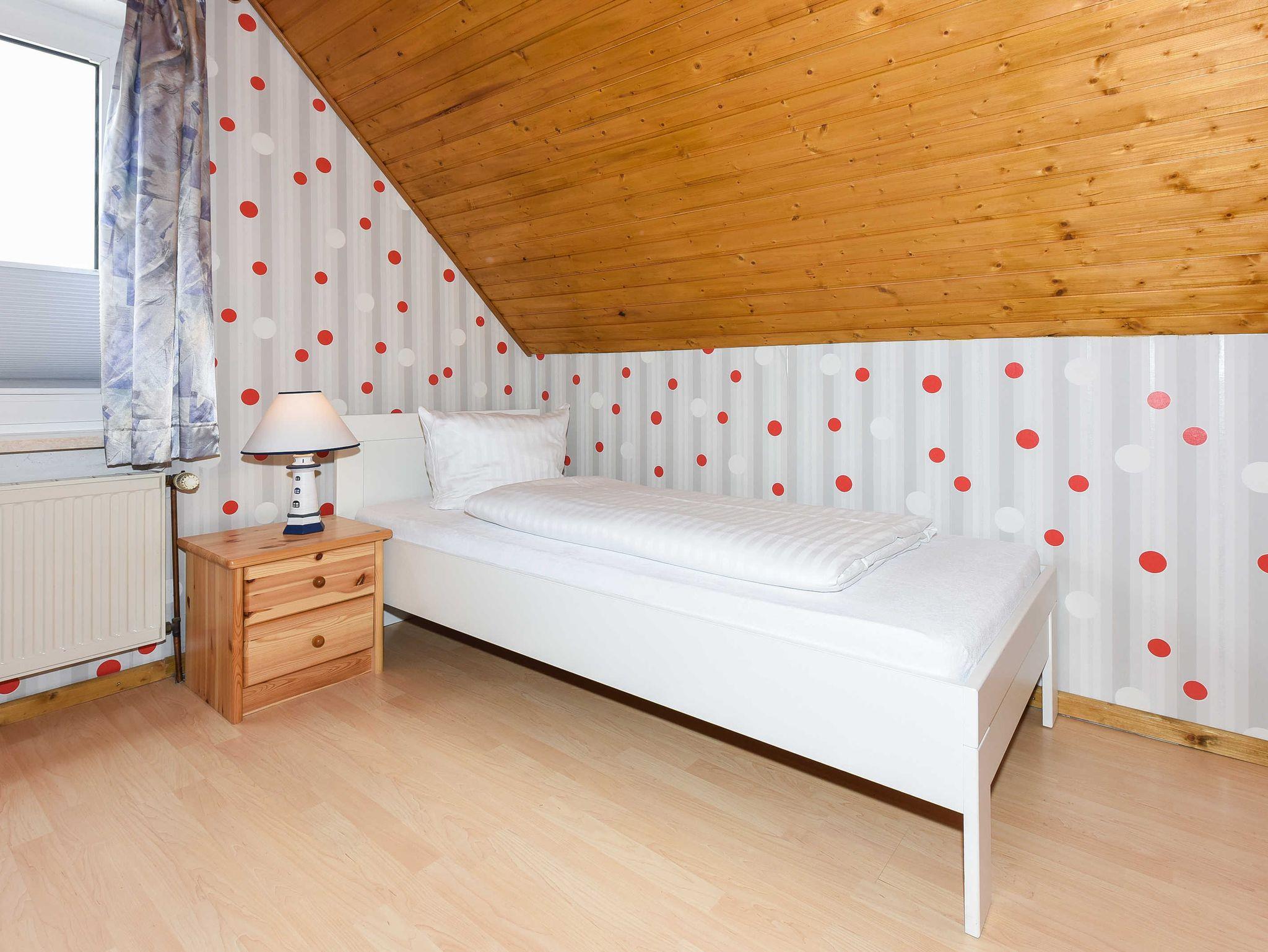 Größe ca. 74 Quadratmeter, Wohnzimmer, Küche, Schlafzimmer, zweites separates Schlafzimmer, drittes separates Schlafzimmer/Kinderzimmer, Badezimmer mit Dusche, Waschtisch und WC, Obergeschoss, Terrasse (Sitzgruppe im Garten), Internetzugang über WLAN möglich, optimal für 2 bis 7 Personen.