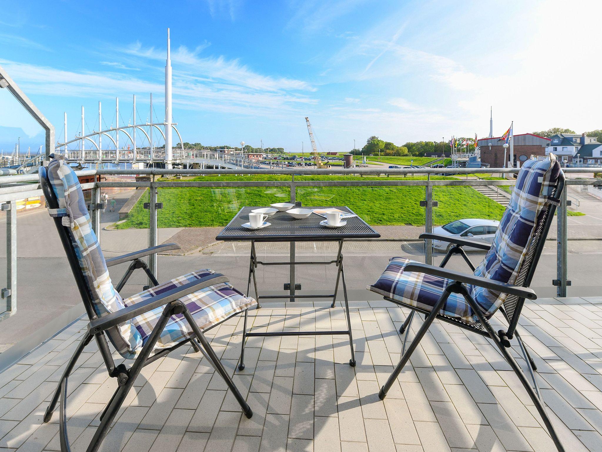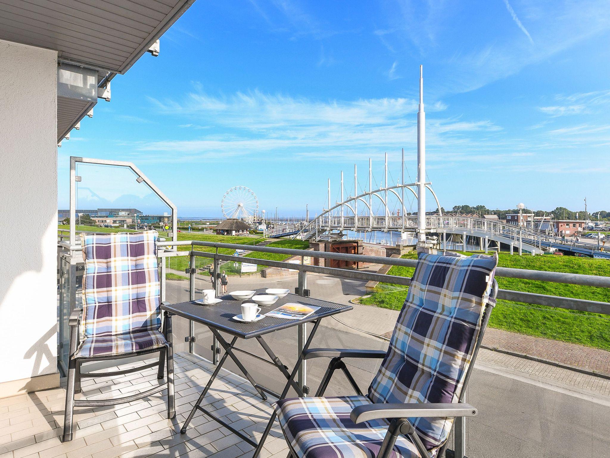Vom Balkon aus haben Sie einen herrlichen Blick auf die Nordsee, Inseln, Strand und Hafen.