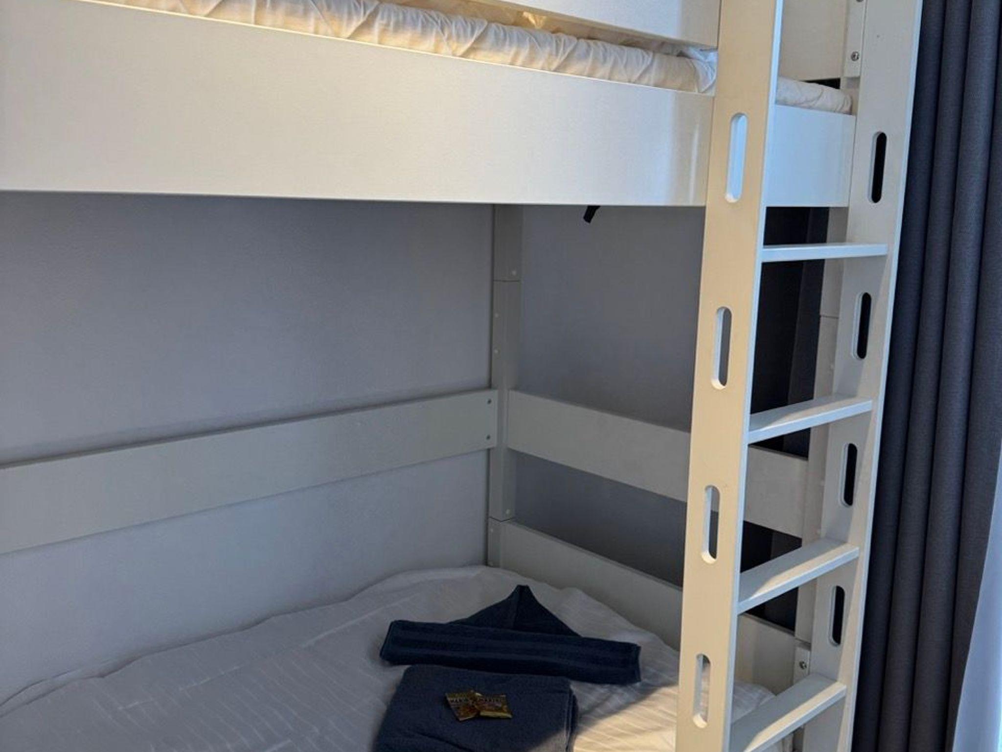Schlafzimmer & weitere Schlafgelegenheit Erholsamer Schlaf für bis zu vier PersonenDas separate Schlafzimmer ist mit einem komfortablen Doppelbett ausgestattet. Verdunkelungsmöglichkeiten sorgen für ungestörten Schlaf, auch an hellen Tagen. Ein großer Kleiderschrank bietet ausreichend Stauraum für Kleidung, Koffer und Gepäck.